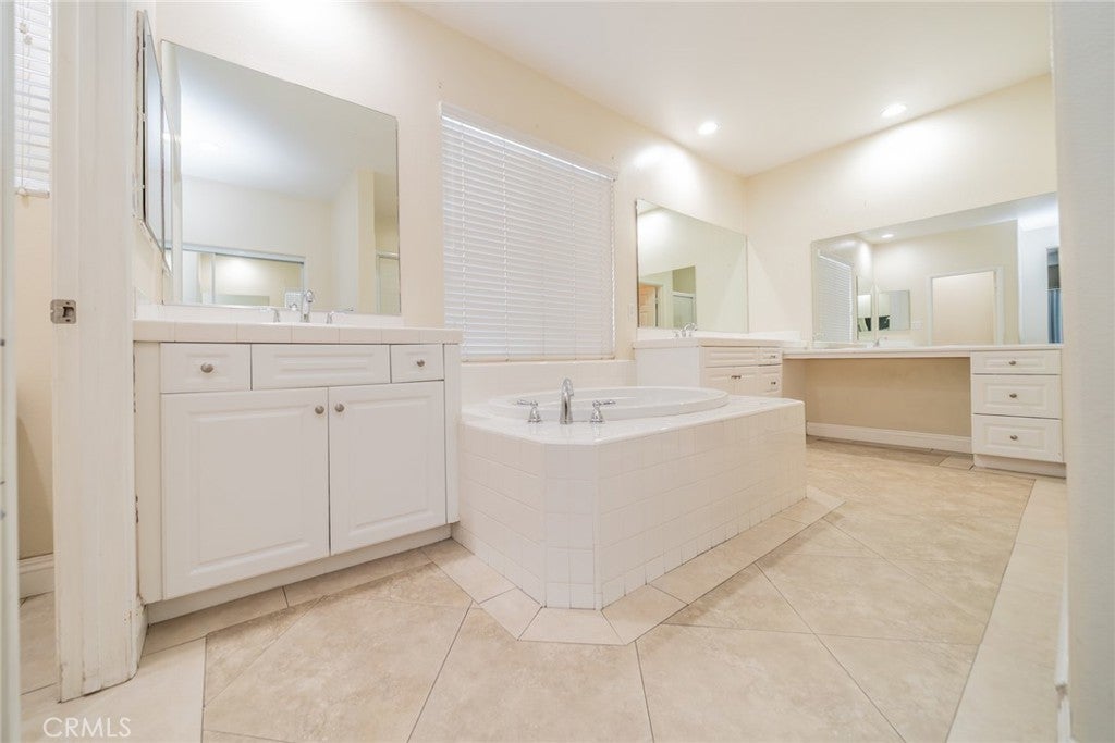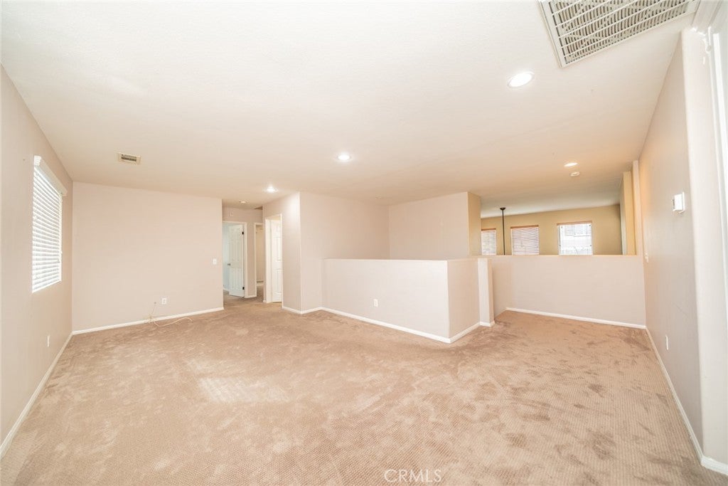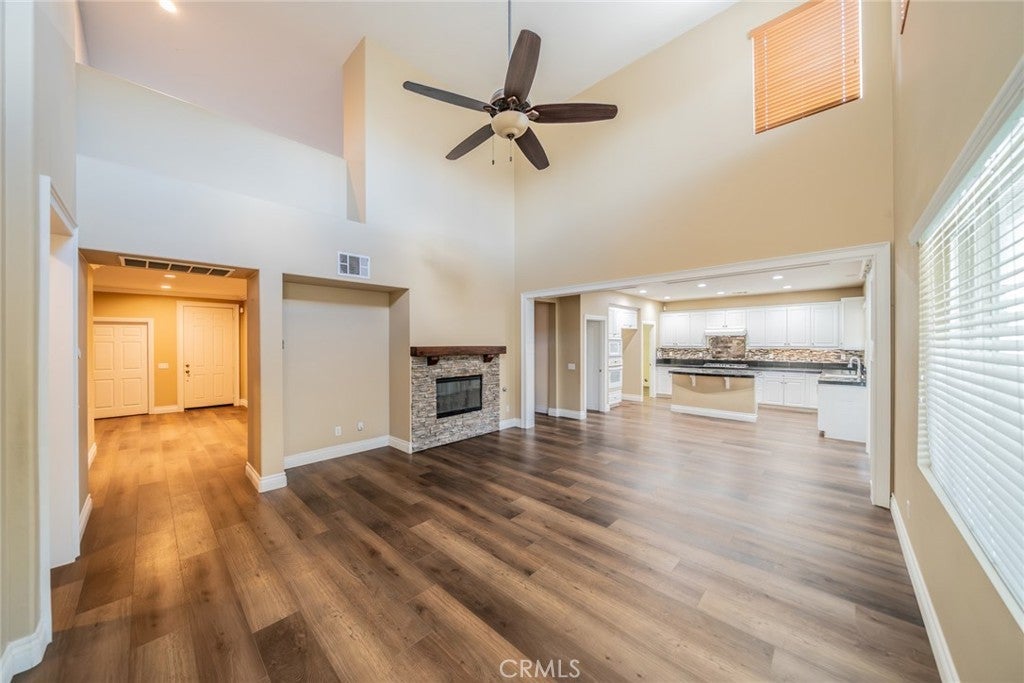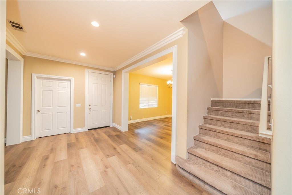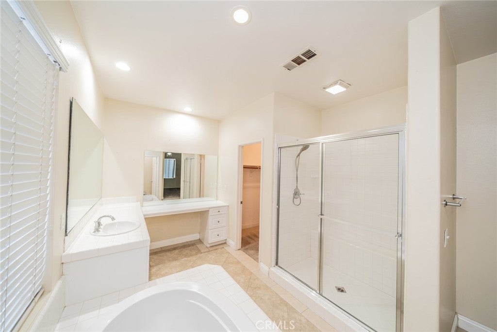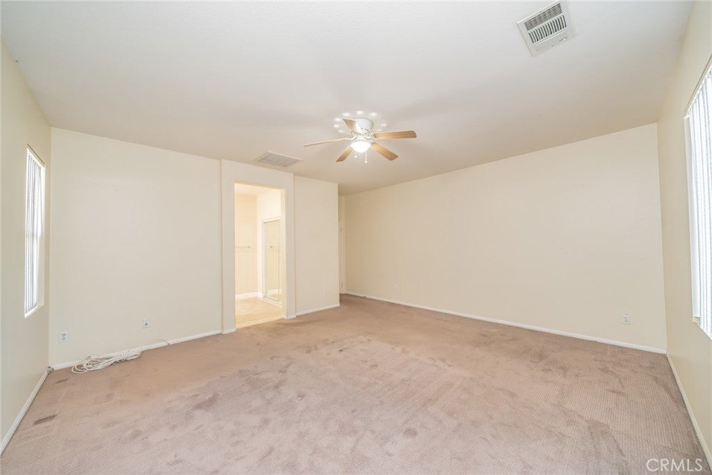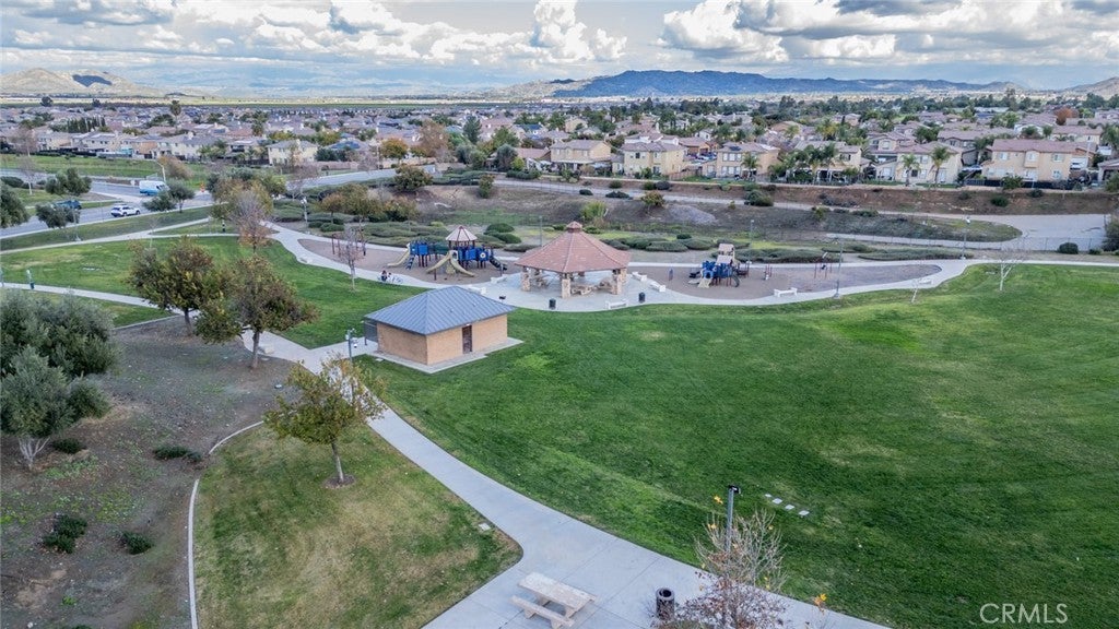 Gorgeous 4-bedroom, 2.5-bath residence with a 4-car garage with courtyard entrance, located in a quiet and highly desirable Perris neighborhood at the end of the Cul-De-Sac, right next to Monument Ranch Park and very close to Granite Hills Elementary School. NEW 2 BRAND-NEW AIR CONDITIONERS & SYSTEM!!! NEW LARGE WATER HEATER!! This beautifully designed home offers a spacious open floor plan with a HUGE primary suite on the FIRST LEVEL!!! complete with a spa-like bathroom, separate shower, oval bathtub, and walk-in closet, along with an additional spacious bedroom downstairs. Upon entering the family room, enjoy soaring two-story ceilings, a refined ceiling fan, and abundant natural light. Thoughtfully designed for comfort and entertaining, the main level features separate, generous living and dining rooms, a customized built-in desk with fine cabinetry ideal for a home office, elegant laminated waterproof flooring, upgraded baseboards and crown molding, an enhanced fireplace, and stylish ceiling fans throughout. The gourmet kitchen with beautifully designed granite countertops boasts a large center island, a walk-in pantry!! perfect for gatherings. Downstairs, a large Laundry room with shelves!! Upstairs, a spacious loft with built-in storage overlooks the family room and is accompanied by two generously sized bedrooms and a large bathroom. The expansive 4-car garage offers ample space for parking and additional storage. The beautifully landscaped backyard features new turf, a decorative fountain, an upgraded covered patio with recessed lighting and ceiling fan throughout, and a storage shed—ideal for relaxing or entertaining. Additional upgrades include a freshly painted exterior. This move-in-ready home offers modern comfort, style, and exceptional functionality throughout. NO HOA!!!