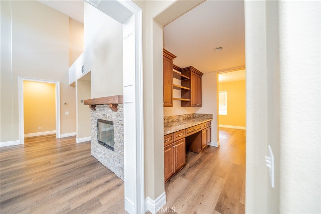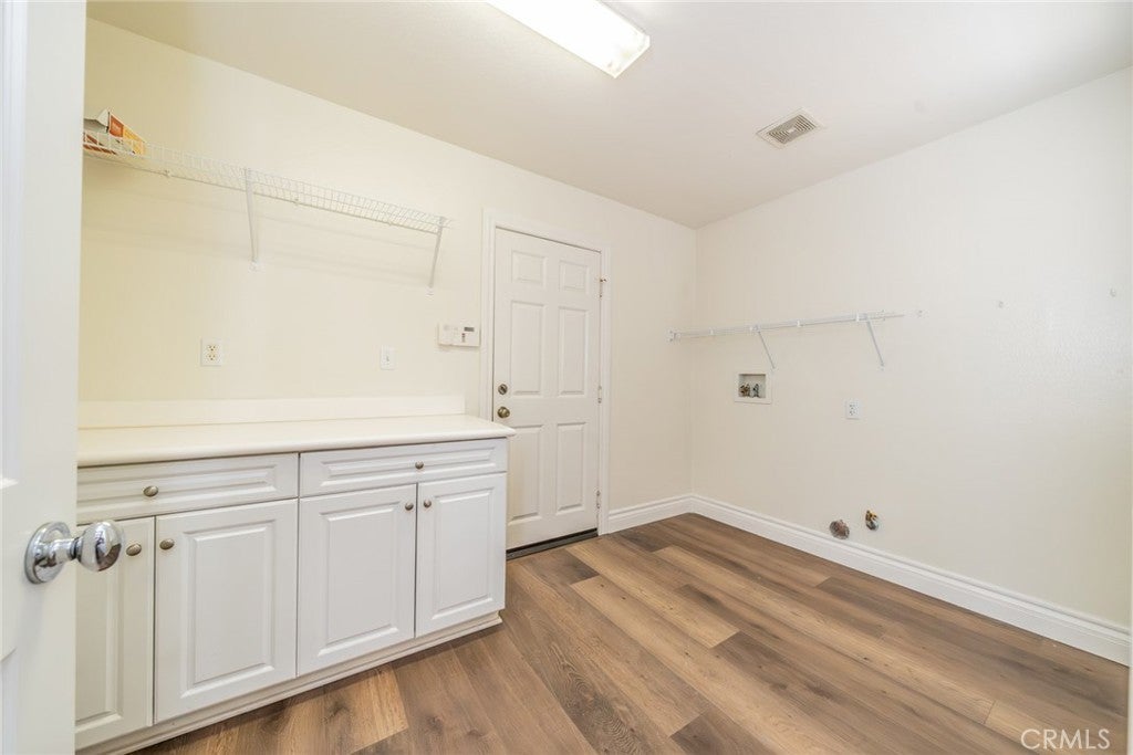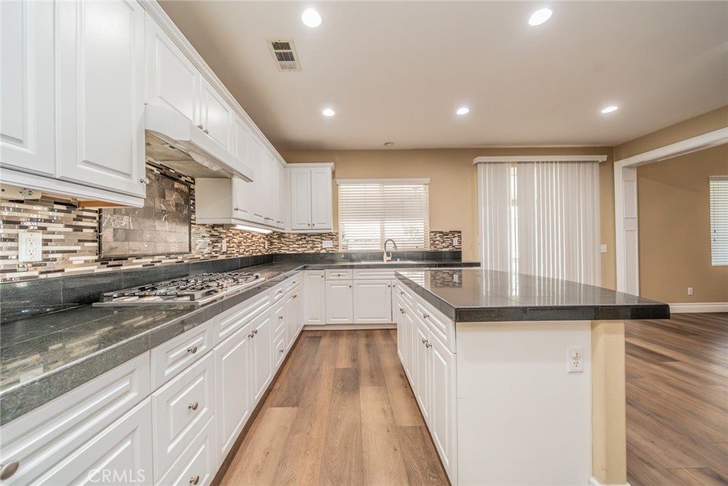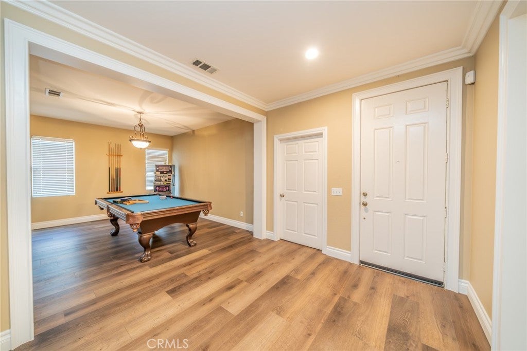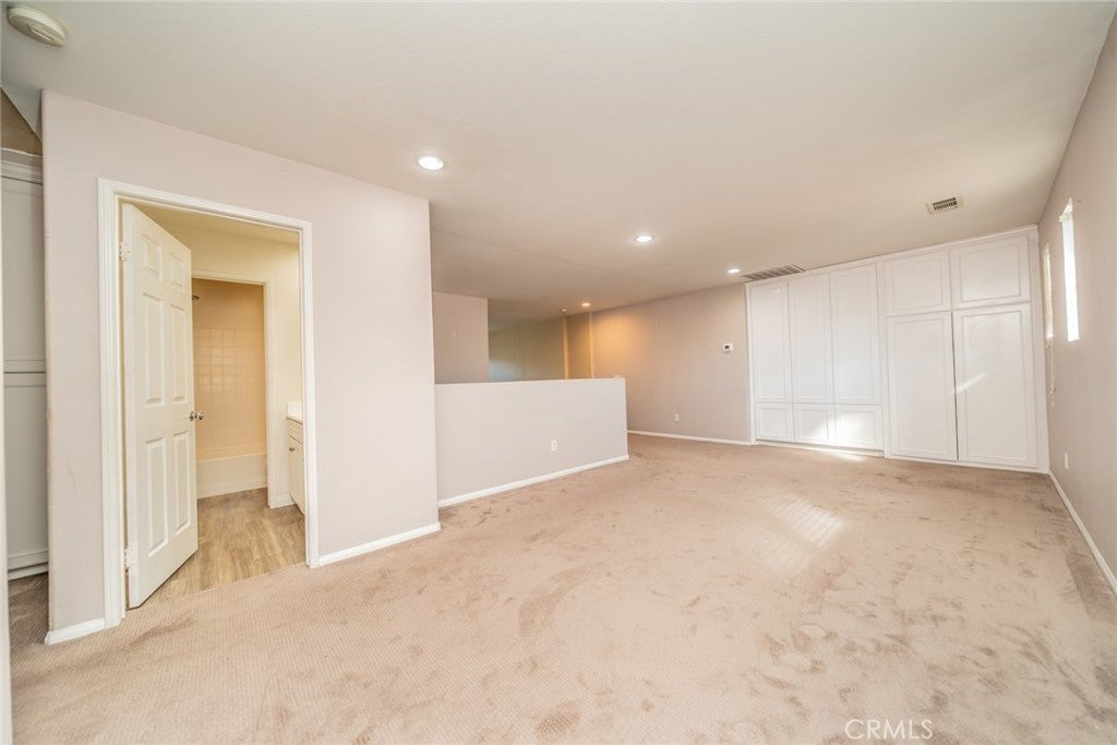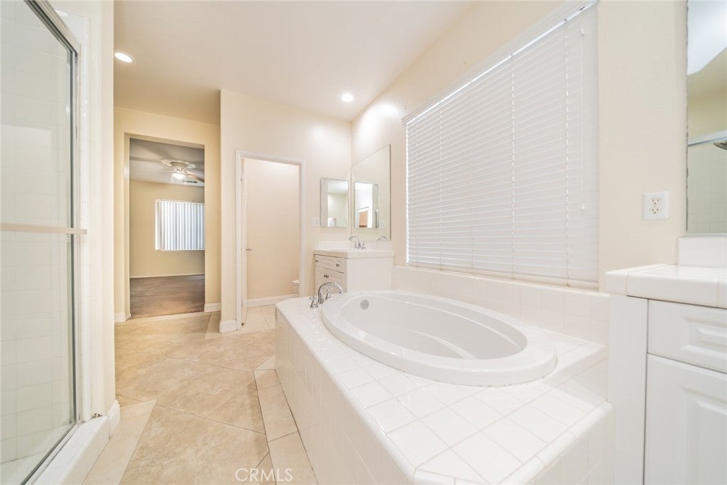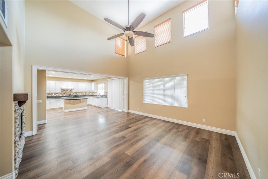 Gorgeous 4-bedroom, 2.5-bath residence with a 4-car garage with courtyard entrance, located in a quiet and highly desirable Perris neighborhood at the end of the Cul-De-Sac, right next to Monument Ranch Park and very close to Granite Hills Elementary School. NEW 2 BRAND-NEW AIR CONDITIONERS & SYSTEM!!! NEW LARGE WATER HEATER!! This beautifully designed home offers a spacious open floor plan with a HUGE primary suite on the FIRST LEVEL!!! complete with a spa-like bathroom, separate shower, oval bathtub, and walk-in closet, along with an additional spacious bedroom downstairs. Upon entering the family room, enjoy soaring two-story ceilings, a refined ceiling fan, and abundant natural light. Thoughtfully designed for comfort and entertaining, the main level features separate, generous living and dining rooms, a customized built-in desk with fine cabinetry ideal for a home office, elegant laminated waterproof flooring, upgraded baseboards and crown molding, an enhanced fireplace, and stylish ceiling fans throughout. The gourmet kitchen with beautifully designed granite countertops boasts a large center island, a walk-in pantry!! perfect for gatherings. Downstairs, a large Laundry room with shelves!! Upstairs, a spacious loft with built-in storage overlooks the family room and is accompanied by two generously sized bedrooms and a large bathroom. The expansive 4-car garage offers ample space for parking and additional storage. The beautifully landscaped backyard features new turf, a decorative fountain, an upgraded covered patio with recessed lighting and ceiling fan throughout, and a storage shed—ideal for relaxing or entertaining. Additional upgrades include a freshly painted exterior. This move-in-ready home offers modern comfort, style, and exceptional functionality throughout. NO HOA!!!