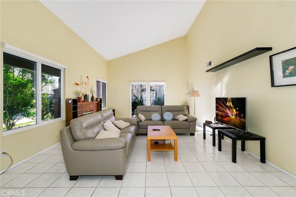 Beautiful One-Story Townhouse located in the quiet, lush-landscaped Park Glen townhouse community. Centrally located to both OC/LA areas, this accessible home features a spacious living room with soaring high ceilings and a cozy fireplace, creating a bright and comfortable space ideal for both relaxing and entertaining. The remodeled kitchen offers modern finishes with a stylish backsplash, while the updated hallway bathroom adds a fresh, contemporary touch. Dual-pane windows and custom blinds throughout the home enhance energy efficiency, comfort, and privacy. HOA dues include landscape maintenance, up keeping of common areas, exterior walls and roof. Newly-painted exterior walls and roof re-shingled in recent years. The end-unit townhouse location is tucked away from the noisy streets, near the pool, close to freeways access, major universities, medical centers, supermarkets, and shopping malls. Residents enjoy access to excellent community amenities, including a pool, spa, and tennis court. Patrol surveillance provided.