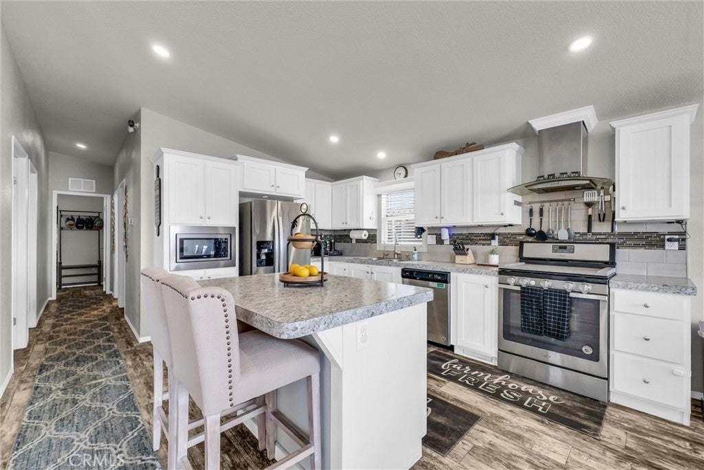 Charming and Modern Mobile Home in the highly sought after Kingsway Garden All-Age Community. Welcome home to this newer 2019 home that features a large, inviting living space. You’ll love the open-concept living area, where the living room, dining area, and kitchen all flow together seamlessly, creating a bright and welcoming atmosphere. The kitchen features tons of cabinet space and a breakfast bar. With three spacious bedrooms and two bathrooms, this home offers a primary suite complete with an en-suite bathroom featuring double sinks and a relaxing soaking tub. In addition, you’ll find the convenience of an indoor laundry room, a large carport for covered parking, and a handy storage shed for all your extra belongings. This home also has a charming front porch, plus a yard. Nestled near the heart of Downtown La Verne, centrally located near schools, the University of La Verne, parks, restaurants and shops. Do not miss out of this opportunity!