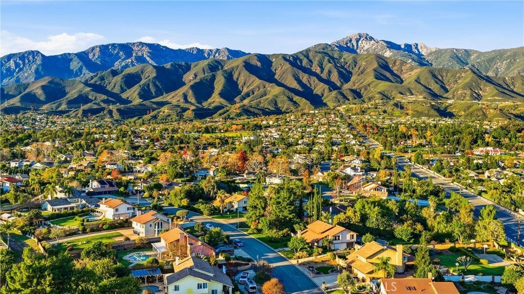 This beautiful 4-bedroom, 3-bath home situated on a spacious half acre lot with stunning views of the San Gabriel Mountains. The double-door entry opens to a bright and inviting living room with a fireplace and a dining area filled with natural light. The large kitchen features stainless steel appliances, dual ovens, tile counters, and plenty of workspace, and opens to a comfortable family room with a cozy brick fireplace. There is also a large first-floor bedroom currently being used as an office. Upstairs offers a large bonus family room plus 3 additional bedrooms and 2 baths, including a primary suite with a private view deck and a spa-like bathroom with a soaking tub, separate shower, vanity, and dual closets. The backyard is perfect for entertaining, with a generous patio area, sparkling pool, and spa. Additional highlights include an oversized 3-car garage and ample driveway parking. Conveniently located near freeways, shopping, Victoria Gardens, dining, top-rated schools, parks, skiing, and hiking.