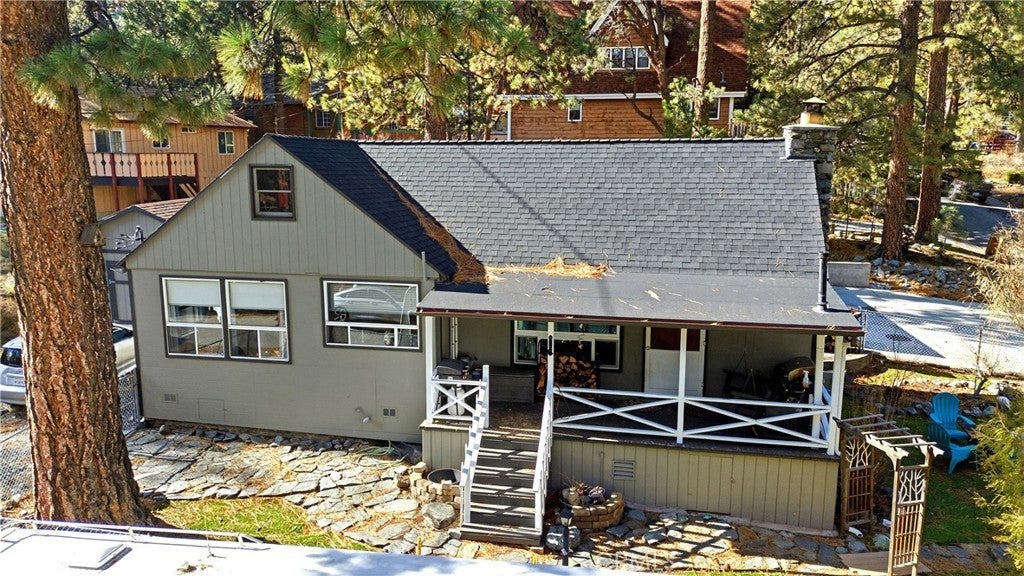 Welcome to this beautiful Wrightwood mountain home offering 2 bedrooms, 2 bathrooms, plus an additional bonus room, with 1,596 sq ft of well-designed living space. Set on a large lot, this property boasts a gorgeous, usable yard, an inviting front porch, a separate storage shed, and a two-car garage, offering both charm and functionality. Inside, the home boasts a striking rock fireplace that serves as the centerpiece of the living area, creating a warm and welcoming atmosphere. The flexible floor plan allows the bonus room to be used as an office, guest space, or hobby room. For year-round comfort, the home is equipped with two split units providing both air conditioning and heating, as well as central heating. Additional highlights include a two-car garage with ample space for parking and storage, as well as a generous outdoor area for entertaining, gardening, or simply taking in the peaceful mountain setting. Conveniently located near town, dining, and outdoor recreation, this home offers the perfect blend of comfort, character, and mountain living. Furniture and sauna are all negotiable.