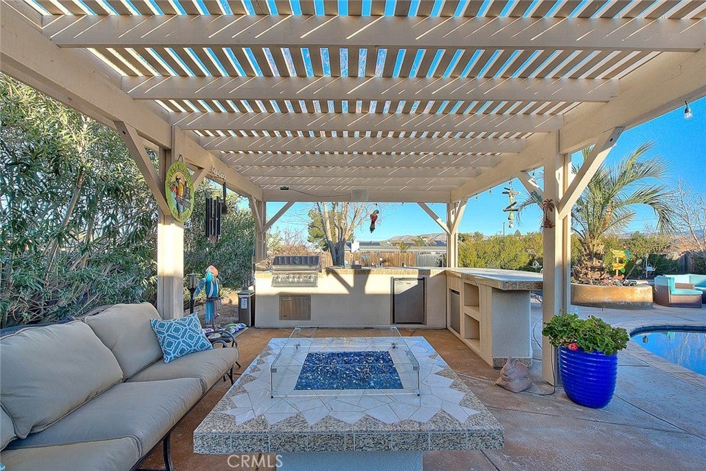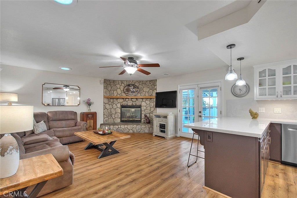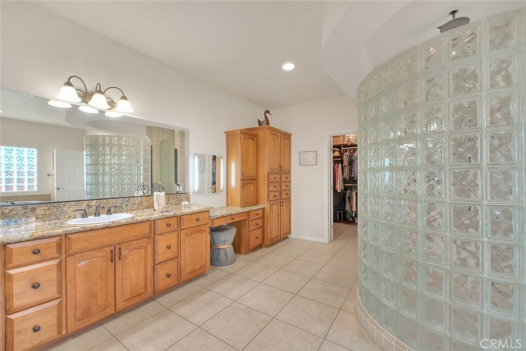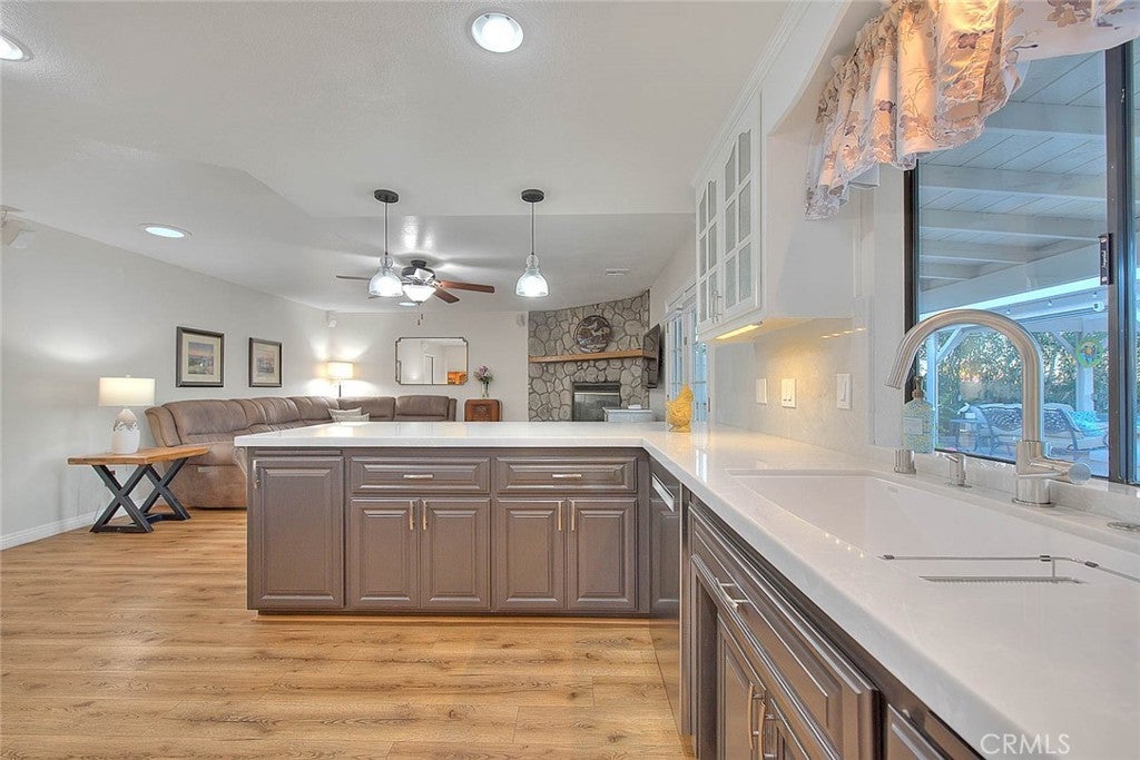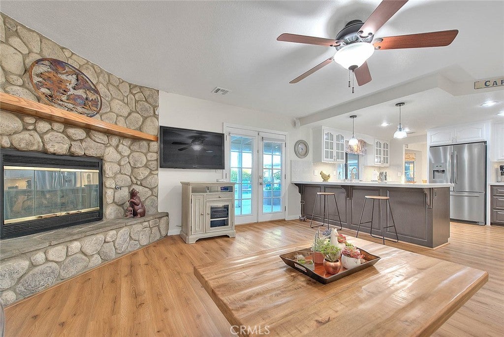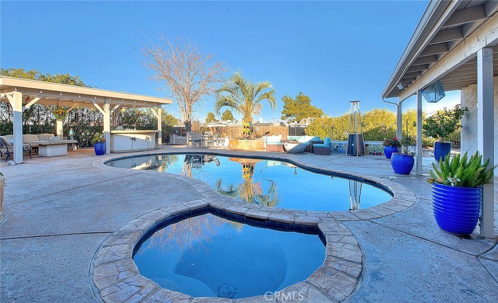 Single-story residence offering 2,673 sq. ft. of living space on an approximately 19,000 sq. ft. lot. Completely remodeled kitchen opens to the spacious family room with fireplace and features custom cabinetry, granite countertops, ceiling and under-cabinet lighting, and an open, functional layout. Adjacent dining area offers backyard views, along with a separate, spacious living room. Primary suite includes direct backyard access and a dual-sided fireplace, with one side facing the bedroom and the other facing the Jacuzzi tub. Primary bathroom features a custom glass block walk-in shower, Jacuzzi tub, dual sinks, separate vanity area, linen storage, and a custom walk-in closet with built-in cabinetry located within the bathroom. Home includes three full bathrooms (including the primary), with additional bathrooms remodeled, and generously sized secondary bedrooms. Rear yard improvements include a pool and spa, paid solar for the pool, multiple entertainment areas, wrap-around patio, and a custom outdoor kitchen with BBQ, sink, dual refrigerators, and a freestanding patio cover, plus a second BBQ station. Additional features include a fire pit, raised garden planters, two storage sheds, and RV parking with a 30-amp electrical hookup. Additional features include a newer 30-year roof, newer front HVAC system, and an upgraded electrical panel. Property has been extensively improved over time—additional upgrades and improvements available upon request.