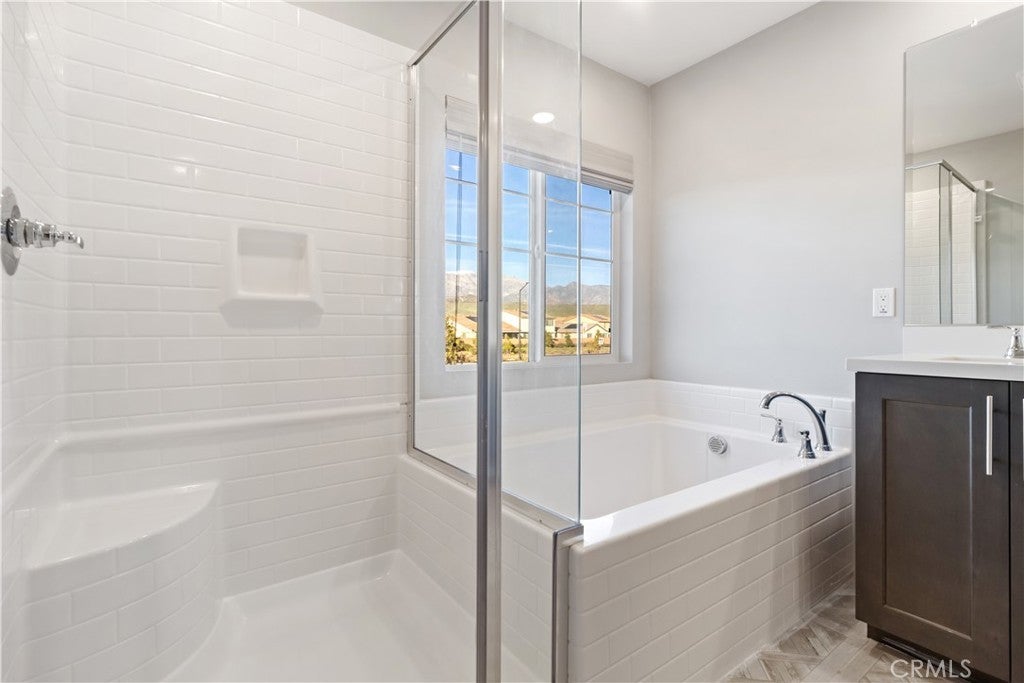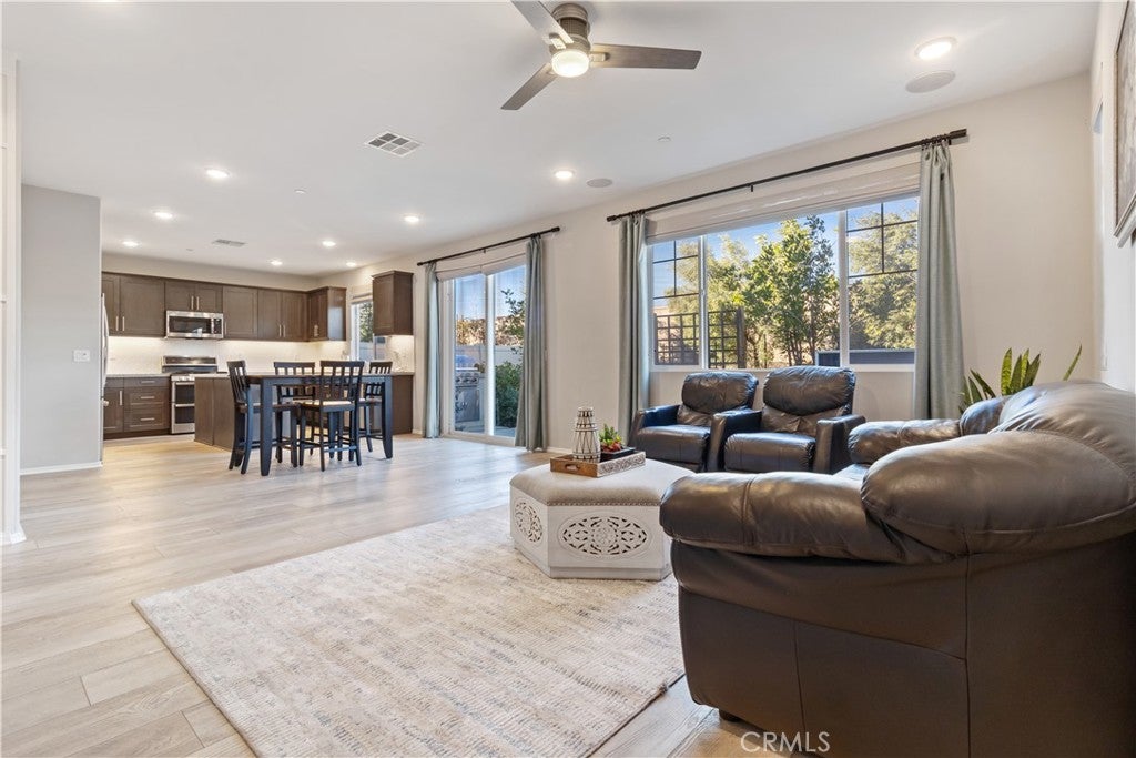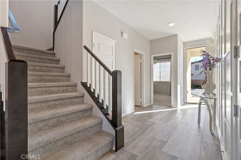Set within the Atwell Community, this well-appointed corner lot home blends modern design with everyday functionality. Originally designed as a model, the residence showcases curated finishes and a layout suited for both entertaining and comfortable living. The exterior offers a polished presentation with fully landscaped and irrigated grounds, while the backyard provides a private retreat featuring a built-in BBQ, and open sky views toward the surrounding foothills. Indoor and outdoor spaces connect easily, creating a relaxed flow ideal for gatherings or quiet evenings at home. Inside, the main level delivers an open living environment accented by custom design elements and durable flooring. A downstairs bedroom and full bathroom add versatility for guests or remote work. The kitchen anchors the space with contemporary finishes, generous storage, and a large island designed for daily use and casual dining. The upper level opens to a flexible loft area, along with additional bedrooms and a private primary suite. The primary retreat offers two (2) separate ample walk-in closets and a well-designed bathroom with dual sinks, a soaking tub, and a separate shower. Practical features such as an upstairs laundry room and added storage enhance everyday convenience. Additional highlights include window treatments throughout, integrated security cameras, direct access to the attached two-car garage, and fully paid solar, delivering long-term energy efficiency. Community amenities include walking trails, recreational spaces, a pool, and a playground. All with nearby freeway access to I-10 and close proximity to Cabazon Outlets, Morongo Casino & Resort, and nearby shopping and dining options.