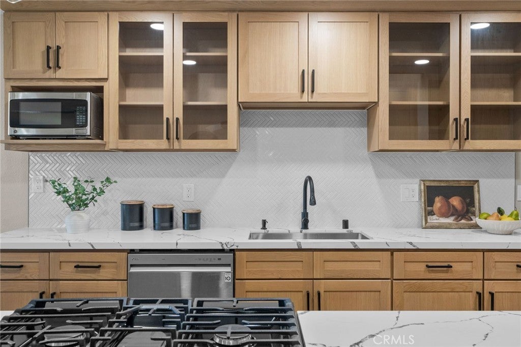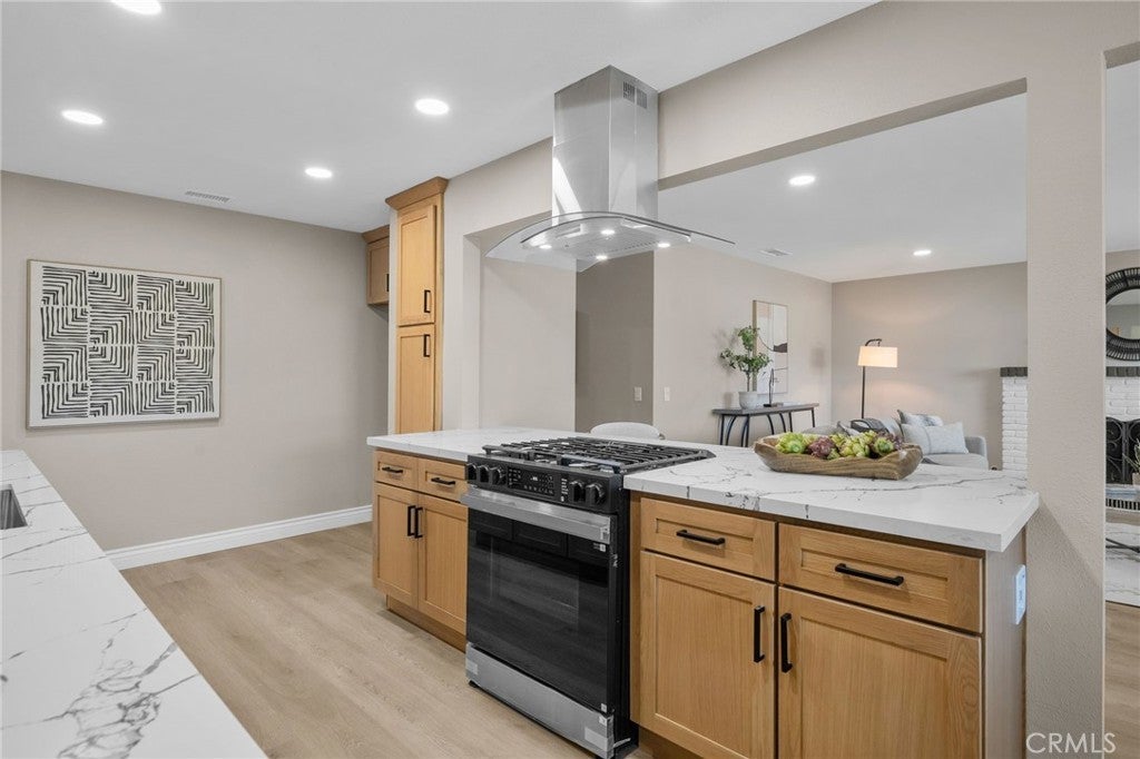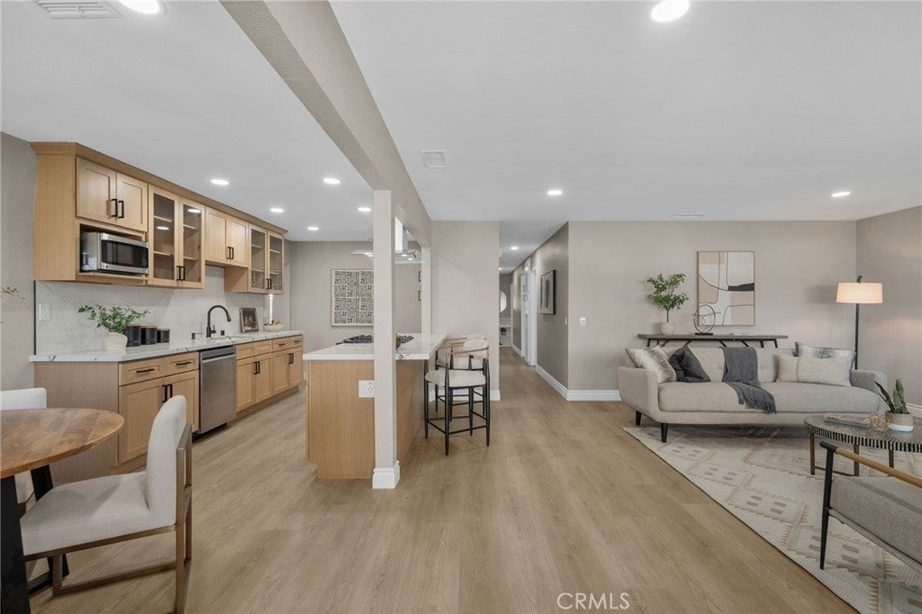 Welcome to this absolutely stunning single-story home located in a great neighborhood. This fully renovated, turn-key property features 4 bedrooms, 2 bathrooms, and an open floor plan that maximizes space and natural light. The beautifully updated kitchen with solid oak Cabinets offers brand-new high-end appliances and an impressive 8-foot island, perfect for entertaining. Luxury waterproof vinyl flooring runs throughout the home, complemented by recessed LED lighting, a newer roof, HVAC system and newer dual-pane windows. The second living room is part of the original square footage (NOT an addition). There is 60 ft RV/Boat potential option. The spacious backyard is ideal for family gatherings and BBQs, offering plenty of room to relax and enjoy. The pool has been recently redone, including all equipment and a new pool light. Low-maintenance gravel and decomposed granite landscaping are paired with a large concrete patio, enhanced by newly added plants along the entire wall for added privacy and visual appeal.