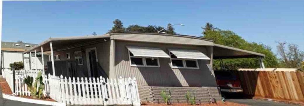 Welcome to this charming mobile home located in the desirable Sun Garden Mobile Home Park in Turlock. From the moment you arrive, you’ll appreciate the inviting curb appeal highlighted by a white picket fence and a cozy covered porch, perfect for enjoying quiet mornings or relaxing afternoons. The home offers convenient side entry access, carport parking, and a thoughtfully designed outdoor space with covered patio areas and privacy fencing—ideal for gardening, hobbies, or simply unwinding. Recent improvements include added foundation supports and professional re-leveling, providing added peace of mind. A storage shed with electrical adds extra functionality. Situated in a well-maintained 55+ senior community, this home offers comfort, privacy, and a welcoming place to call home. Buyer to verify park approval, space rent, and all information. Home sold as-is.