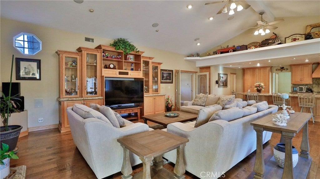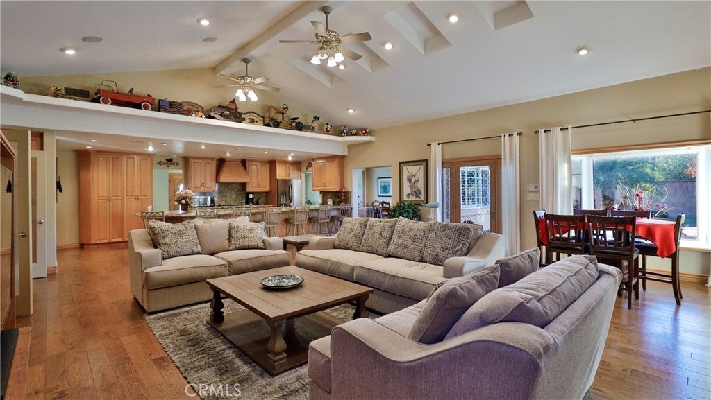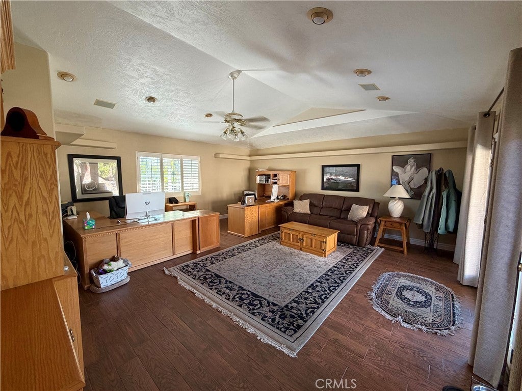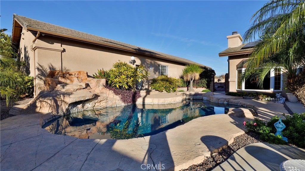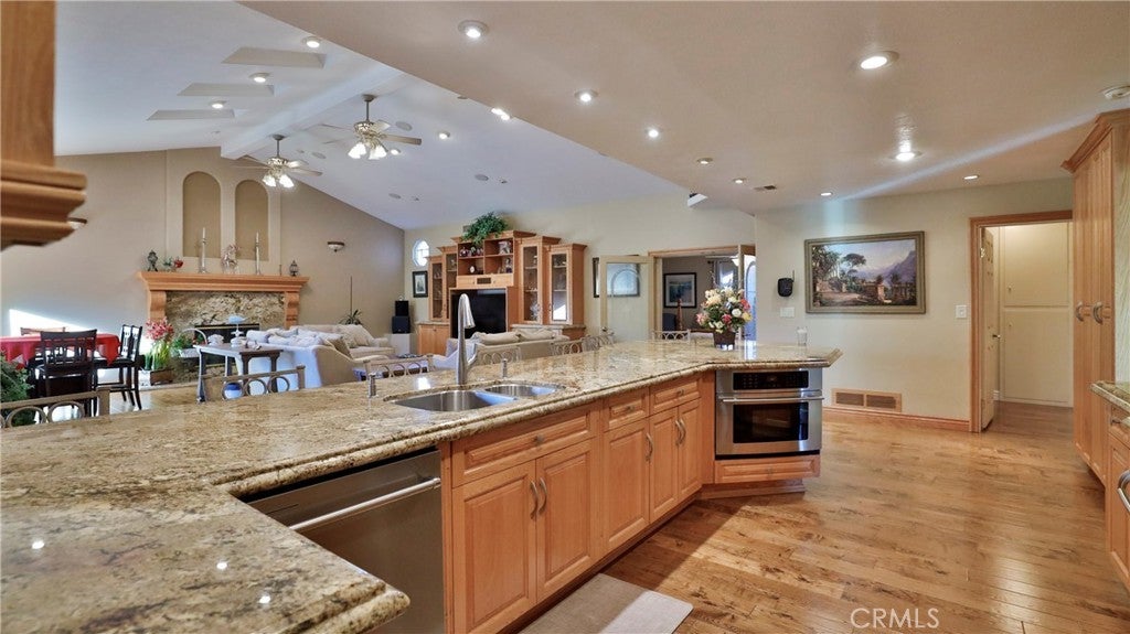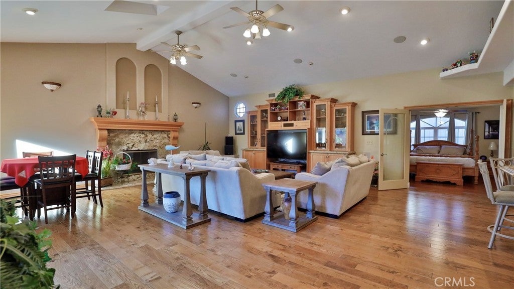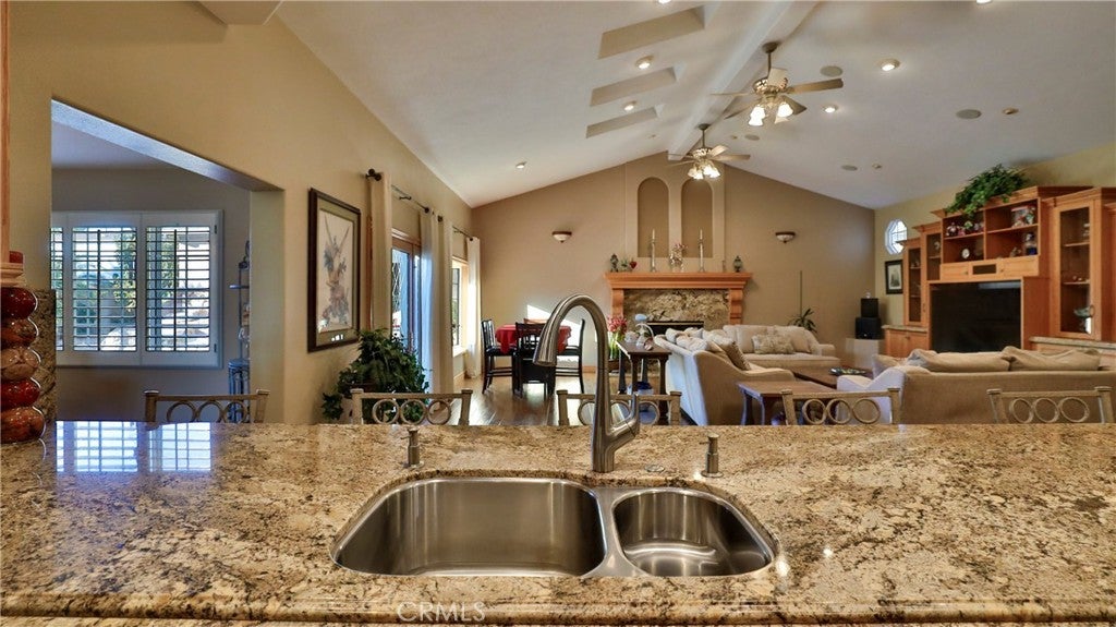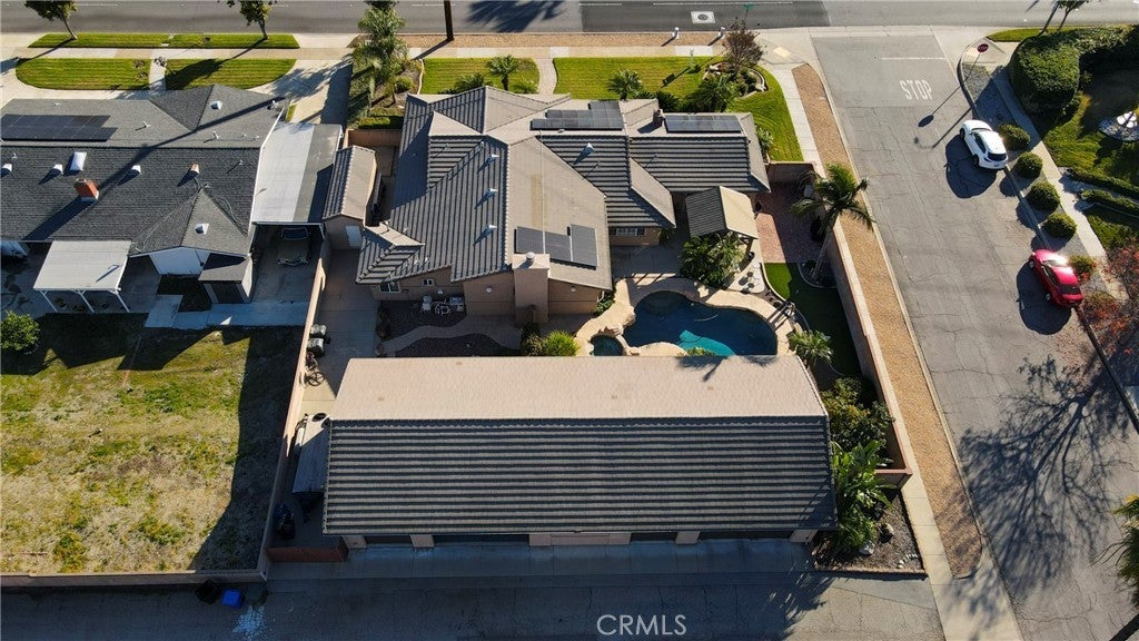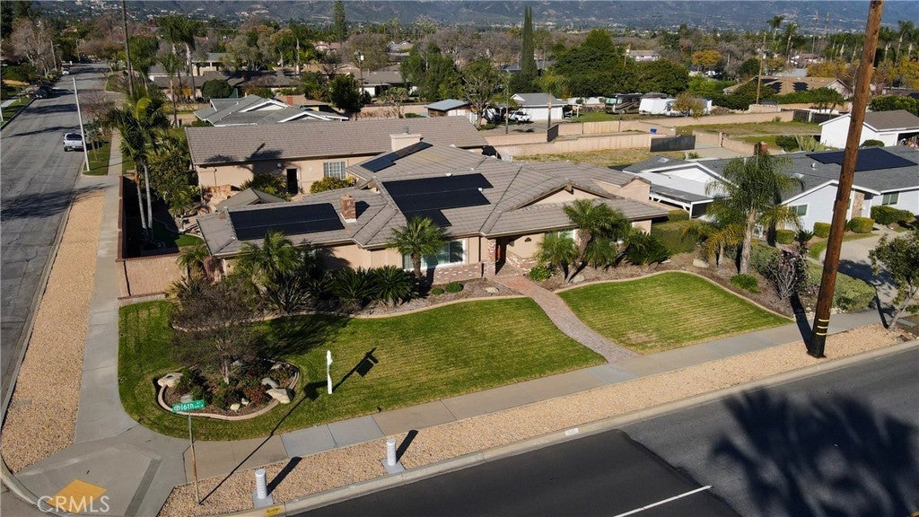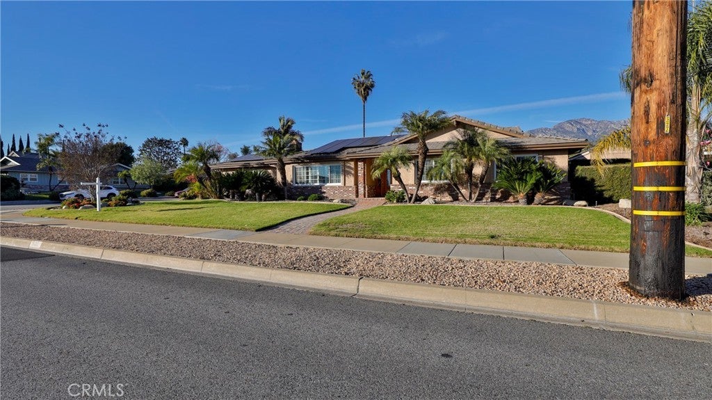Welcome Home Move in and relax! This beautiful Upland home is ready for you to enjoy from day one. Featuring a thoughtfully designed layout, this residence combines comfort, style, and functionality for a truly exceptional living experience. Interior Highlights :Three spacious bedrooms and two full bathrooms provide ample room for family and guests. Th office can be converted to another bedroom. The upgraded kitchen offers modern finishes and conveniences, seamlessly connected to the open-concept great room with a cozy fireplace and stunning views of the backyard pool. Additional living spaces include a comfortable living room, a dedicated dining room, and a large office, perfect for working from home or pursuing hobbies. Interior features include recessed lighting, plantation wood shutters, and ceiling fans throughout for year-round comfort. The primary bedroom boasts a walk-in closet with a pull-down ladder for easy access to additional attic storage. Enjoy indoor-outdoor living with a sliding door that opens to an inviting patio and sparkling pool. A hardwired alarm system ensures your peace of mind. Engineered hardwood floors enhance the living room, dining room, kitchen, and main bedroom with both beauty and durability. Two custom fireplaces add warmth and charm to the home's living spaces. Garage and Exterior Features: A 28' x 76' detached garage at the rear of the property features four new garage doors, accommodating six or more cars, a hydraulic lift, and plenty of storage cabinets and shelving for organization. An additional RV pad includes an in-ground sewer line for convenient dumping. A custom-built detached shed (150 sq. ft.) with shelving provides even more space for tools or hobbies. The home and garage are topped with a durable tile roof and double paper for additional protection. 28 solar panels offer energy efficiency and cost savings. Copper plumbing was updated in 2002, and water lines from the meter to the house were replaced the same year. The block wall was rebuilt when the garage was constructed, ensuring privacy and security. Stay tuned for professional photos that will showcase all the exceptional features this home has to offer.