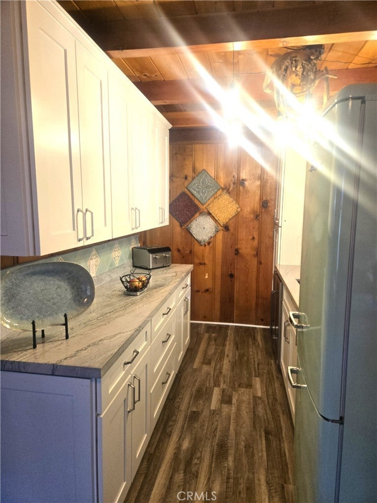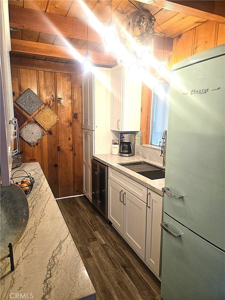 Super cute, upgraded and very well-maintained cabin in Wrightwood. Complete kitchen remodel, new appliances, new built in convection oven, new wine refrigerator, quartz counter tops, matching refrigerator included, new water-resistant plank flooring in living room and hallway. Wonderful large rock fireplace with gas starter to keep you warm on those winter evenings. New carport to help protect your car from the elements, excellent storage space throughout, nice sized bedroom and hall closets, real wood floors in bedrooms. Unique utility in this home as it comes with a sperate detached room that has electricity and a large window, it has been previously used as a bedroom, an office for those who work remotely and or a craft room (may or maynot be permitted). A half bath has been added with exterior access from the backyard for guests and or should the separate detached room be used as a bedroom. Outside storage / workshop room that is heated with access from the backyard providing even more storage and functional space. Home comes with water softener, modern furnace, separate laundry room large enough for side-by-side units and a freezer, there is a large front deck for barbequing and or just sitting out in nature enjoying the beautiful environment. Backyard has a covered patio with overhead lighting for more space to entertain and or be outside soaking up the beautiful surroundings. Recently replaced and upgreadd electrical panel to handle all your modern needs. This home truly has distinctive features and functional spaces, as well as lots of upgrades and modern conveniences. All this has been accomplished without losing touches of a rustic mountain charm. Close enough to walk to town and or the county club, must see, you will not be disappointed. Buyer and buyer’s agent to verify living space size / square footage, allowable uses, zoning, permitting including but not limited to dettached room / structure.