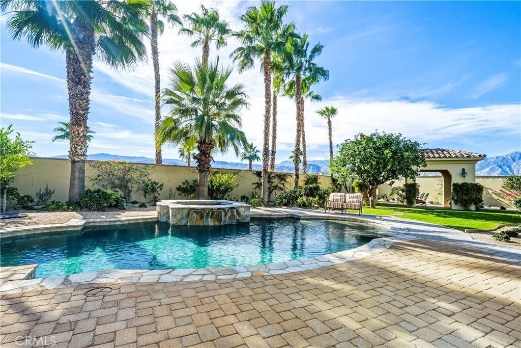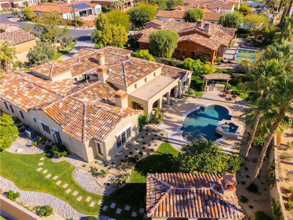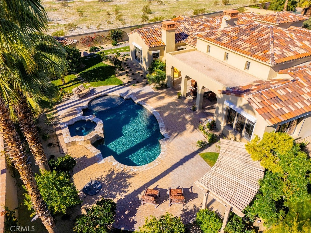 **Original GHA-built model home in Escala offering exceptional craftsmanship and recent updates.** Spanning over 3,300 square feet, this residence offers four bedrooms and four full bathrooms, along with an elegant powder room-thoughtfully arranged within an open great room floor plan with vaulted and beamed ceilings, rich wood accents, stone flooring and a cast stone fireplace create a warm yet sophisticated ambiance throughout the living spaces. The home is further distinguished by solid-wood window and door frames throughout. Designed by renowned architect Mark Scheurer and honored with the coveted Gold Nugget Award, the home embodies refined desert luxury on an estate-sized lot of approximately half an acre. A European-inspired interior courtyard further enhances the home’s intimate and tranquil feel. A formal dining area and inviting great room flows effortlessly to the outdoors. The gourmet kitchen is beautifully appointed with commercial-grade Viking appliances including dual dishwashers, slab granite countertops, a generous center island, and a well-designed butler’s pantry—ideal for both daily living and elegant entertaining. Outdoor living is the hallmark of this exceptional property. A covered outdoor seating area, resort-style pool and spa, outdoor shower, and a charming Al Fresco Loggia with built-in fireplace and dining space create a setting ideal for entertaining or quiet evenings under the desert sky It’s proximity—just two minutes to Disney’s new Cotino™ community-further enhances the home’s appeal, offering nearby lifestyle allure with restaurants, shops, entertainment, and future-forward value. **Great Room & Primary Bedroom photos are virtually staged**