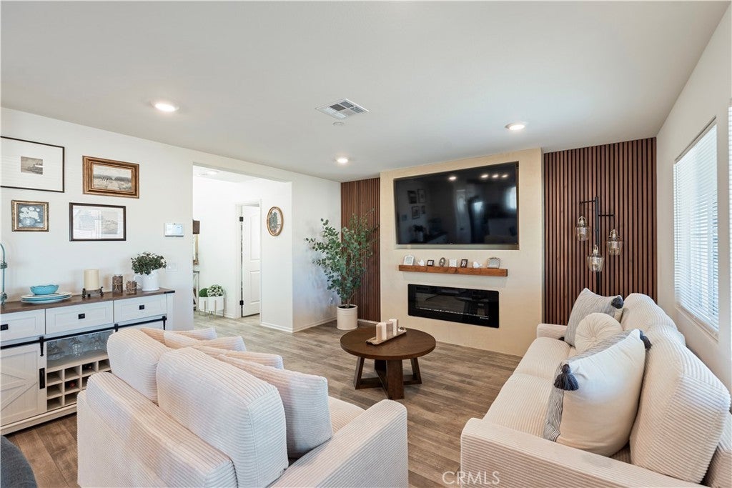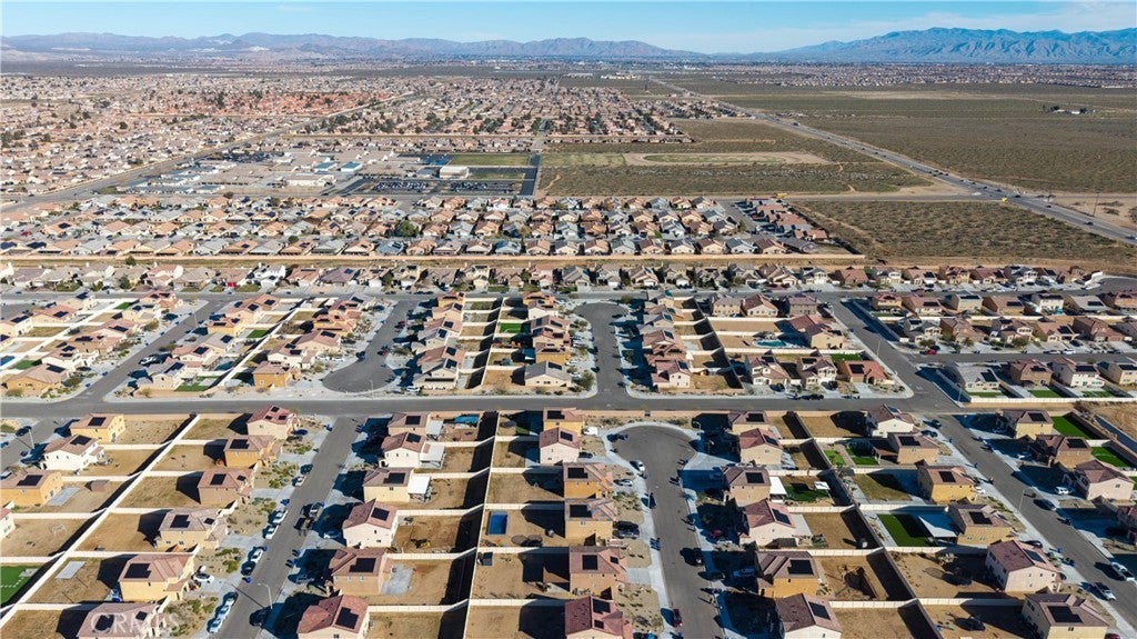 STOP! This is the home you've been looking for. A beautifully built 2023 single-family home in Adelanto offering a modern, functional layout and PAID-OFF SOLAR. This move-in-ready residence features 3 bedrooms, 2.5 bathrooms, and 1,583 sq ft of thoughtfully designed living space ideal for today’s lifestyle. The open-concept floor plan showcases a spacious living area highlighted by an upgraded fireplace insert and feature wall, adding warmth and charm to the home. The well-appointed kitchen flows seamlessly into the dining space, making it perfect for entertaining or everyday living. Upstairs, you’ll find generously sized bedrooms, including a relaxing primary suite with a private bath. Situated on a large lot, the landscaped backyard offers ample outdoor space to enjoy, complete with a newly installed patio and concrete pad, perfect for gatherings or future customization. Additional features include central cooling, an attached garage, and energy-efficient construction. Located in a growing community with convenient access to schools, parks, and commuter routes, this home blends modern comfort with everyday convenience. Don’t miss your opportunity to make this turnkey property yours!