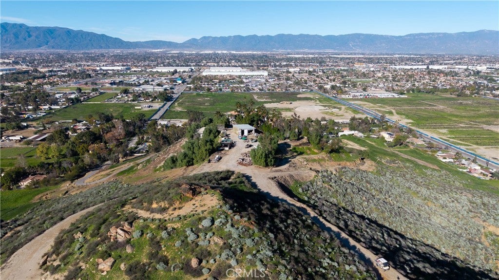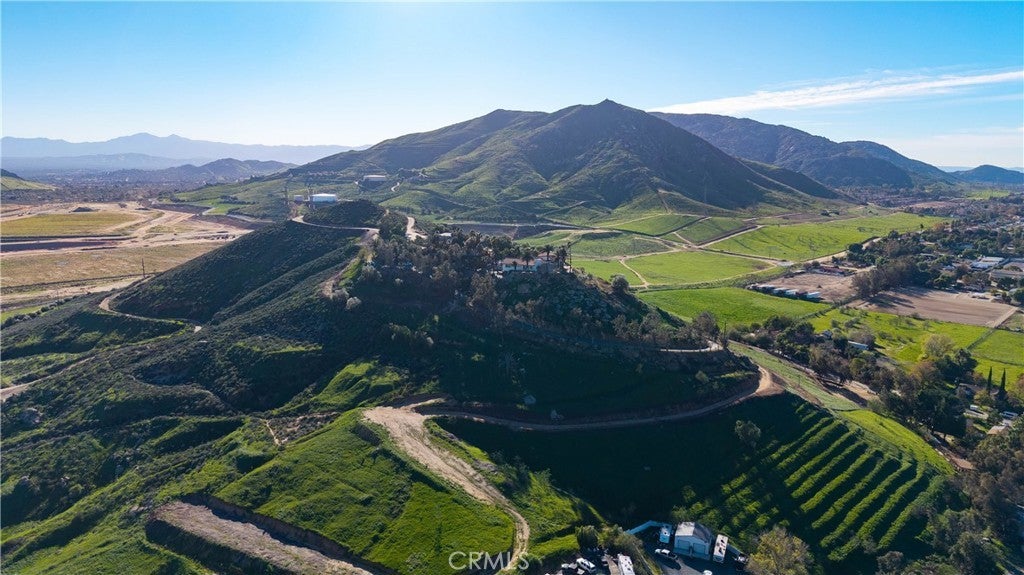 An extraordinary custom-built hilltop estate offering rare privacy, scale, and breathtaking panoramic views on approximately 9.45 acres in a rapidly growing area of the Inland Empire. Accessed by a private, gated quarter-mile drive, the property sits at the summit with commanding 360-degree views overlooking the city and surrounding valleys, with no neighboring residences within the acreage. The approximately 3,200 square foot custom home features a spacious primary suite with fireplace and full bath, along with a sunken living room highlighted by its own fireplace. The thoughtfully designed layout offers flexibility with opportunity for expansion or personalization. The expansive acreage allows for potential horse property use (buyer to verify), complemented by multiple outbuildings, open land, and five enclosed garage spaces with elevator access, ideal for recreational vehicles, storage, or equestrian-related needs. Elevated roughly 250 feet above the surrounding terrain, the property delivers unmatched privacy, serenity, and unobstructed city, valley, and mountain views stretching for miles. A truly rare offering for buyers seeking exclusivity, land, and a custom-built residence with dramatic hilltop presence in a growing Inland Empire location.