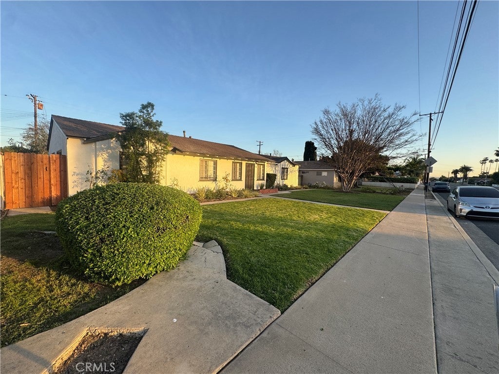 Welcome to 547 S Yorba Street, a beautifully renovated single-story home located in the heart of Orange. This charming residence offers 3 bedrooms and 1 bathroom with a functional layout and thoughtful updates throughout. Recently refreshed with new interior and exterior paint, the home features new laminate flooring that flows seamlessly through all living spaces. The inviting living room includes an attached sitting or den area, perfect for relaxing or reading. A separate family room offers an attached study area complete with a built-in desk and shelving—ideal for working from home or creative use. The kitchen provides ample storage space and includes lovely tile countertops, appliances, and a cozy breakfast nook for casual dining. Each bedroom is comfortably sized, making the home well-suited for a variety of lifestyles. Step outside to the fully fenced rear yard featuring a large patio area, perfect for outdoor entertaining or enjoying Southern California weather. Additional highlights include an attached two-car garage, driveway parking, and convenient alley access. This move-in-ready home combines comfort, character, and practicality in a desirable Orange neighborhood.