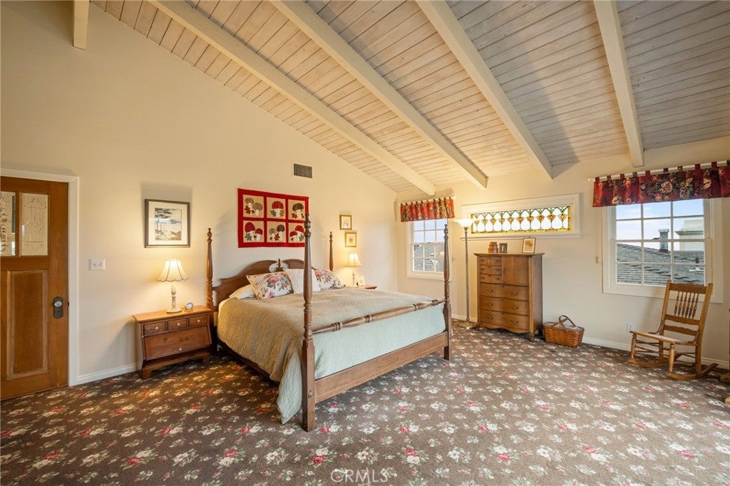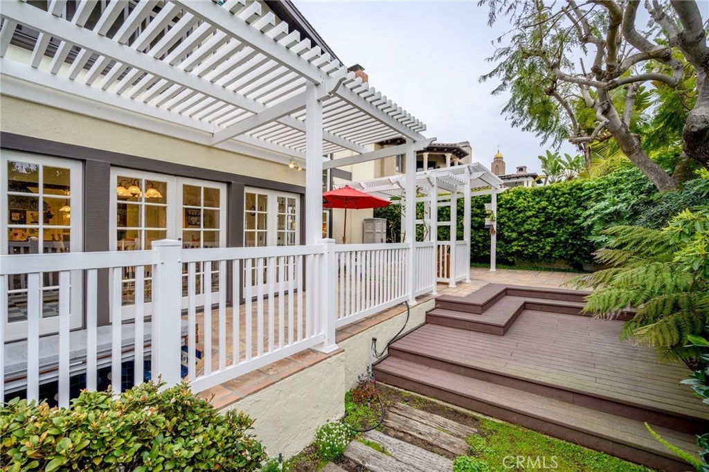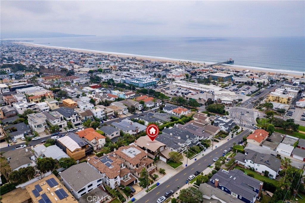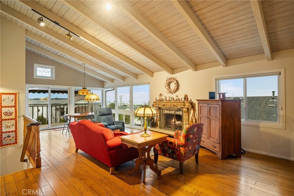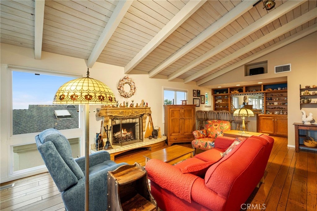This one’s a stunner! Timeless, New England inspired, seaside cottage on the outside. Hand-crafted details, old-word charm, and sense of artisan craftsmanship on the inside. This Manhattan Beach home is a rare and refreshing blend of warmth and character, with both function and practicality. The Manhattan Beach Greenbelt sits just a few houses down, and Manhattan Beach Blvd., The Pier, The Strand, and the sand are all just a short walk away. 3,031 sqft on the inside sitting on a 6,249 sqft lot, with 7 bedrooms and 3.5 baths. Classic red front door entry opens to dramatic, light-filled living room, with high vaulted ceiling with exposed beams. Living room, gas fireplace, features ceramic tile, and artisan carved-wood detailing. Living room transitions to dinning and kitchen area, framed by French doors that create a sunlit connection to the backyard. Comfortably spacious dining area features Breakfast Counter to kitchen perfect for serving or extra space. Kitchen features custom, rich-wood, cabinetry with two pantries and storage nook. Beautiful and bright half-bath sits just off kitchen and at front of guest bedroom hallway. First guest bedroom is a suite, larger than others, with full bath featuring walk-in shower. Hallway leads to three additional guest bedrooms plus full guest bath with tub, and laundry area. Fifth bedroom sits at the end of the hall and is used as a utility room which leads to garage. Artisan crafted staircase leads up to second floor and opens to spacious family room with ocean views. Family room features wood-burning, fireplace with ceramic tile and artisan detailing. Family room also includes wet bar with large counter, and dinning area that leads to balcony. From the family room, your ocean view takes you from Palos Verdes and Catalina, all the way to the Manhattan Beach Pier. Den sits just off family room and features built in cabinets and desk. Spacious and sunlit, the primary bedroom sits just beyond the den and features a large walk-in closet and private outdoor balcony. The primary bath is generous in size with a separate tub and walk-in shower, beautifully detailed with ocean-blue tile-work. The backyard is like a private retreat, appointed with Spanish tile, pergola, plants, flowers, and in-ground spa. The attention to detail in this home is singular. Every corner of this home shows thoughtful craftsmanship and timeless detail that is both wonderfully charming and unique.