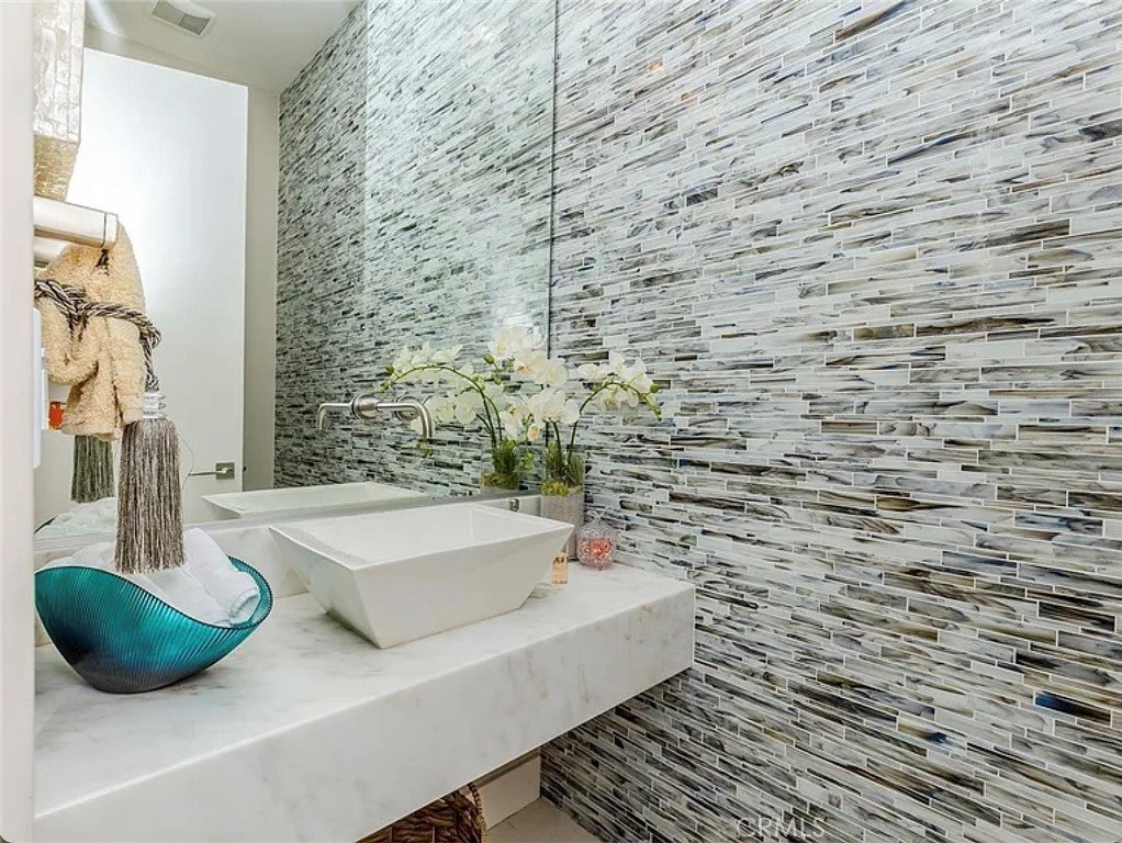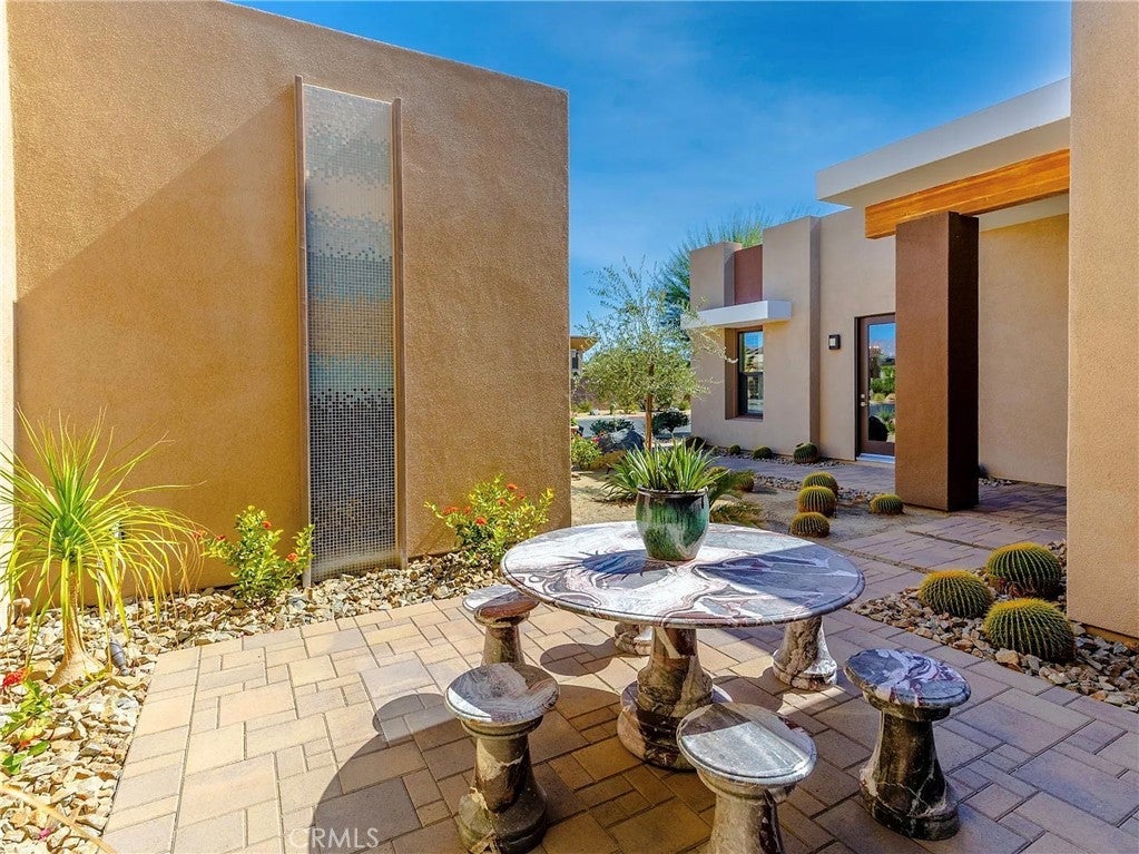 TOLL BROTHERS MODEL HOME | MODERN LUXURY IN ESTILO One of three original model homes by award-winning Toll Brothers, this exceptional residence behind the exclusive gates of Estilo showcases refined modern living with striking architectural detail throughout. Upon entry, soaring 16-foot ceilings, dramatic chandeliers, and walls of natural light create an immediate sense of grandeur. The open-concept great room is ideal for relaxation and entertaining, anchored by a statement stone fireplace and complemented by a full entertainer’s wet bar with ice maker, wine refrigerator, and high-end Control4 surround sound throughout the home. The gourmet kitchen is a chef’s dream, featuring an oversized marble-clad island, custom cabinetry, premium stainless steel Dacor appliances, and a spacious walk-in pantry—perfect for everyday living or hosting. Oversized pocket doors provide seamless indoor-outdoor flow, opening from the kitchen to a private courtyard and from the great room to the resort-style backyard. Here, an infinity-edge Pebble Tec pool and spa are flanked by dual fire features, with smartphone-controlled pool functions and misters creating a private oasis for year-round enjoyment. A dedicated media room offers a cinematic experience with a 70” television and wine refrigerator—ideal for movie nights or game days. Throughout the home, custom drapery, plantation shutters, and electric remote shades enhance both style and function. New carpet has recently been installed in the office, primary suite, and an additional bedroom. Guests will appreciate the attached one-bedroom, one-bath casita featuring its own living area, wine refrigerator, private patio, and separate outdoor speakers—an ideal retreat for visitors or extended stays. The primary suite is a serene sanctuary, highlighted by a designer textured accent wall, custom drapery, and a spa-inspired bath with dual marble vanities, custom cabinetry, an oversized jetted soaking tub, and a glass-enclosed shower with multiple individually controlled shower heads. The reimagined walk-in closet offers extensive custom shelving and thoughtful accessory storage. Additional highlights include two separate garages, an expansive paver-lined driveway, built-in garage cabinetry, overhead storage, and a tankless water heater. Professionally landscaped grounds feature individual drip irrigation for effortless beauty and efficiency. A rare opportunity to own a showcase Toll Brothers model home.