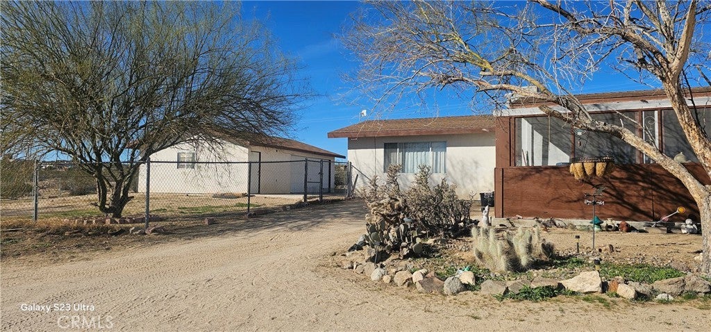 Welcome to 63737 Gemini Rd in picturesque Joshua Tree. This tranquil 5-acre parcel offers a serene desert escape with a charming generous size 1-bedroom and large size 1-bath home featuring 1,080 sq ft of living space, nestled just below Sunfair Heights. Enjoy stunning sunset views from gently contoured, usable land that provides privacy and natural beauty. The home is clean and well maintained ready for you to move in, featuring a generously sized bedroom that can easily be converted into two bedrooms with a fair amount of close space. Enter through a fully enclosed Arizona patio, perfect for relaxing in the afternoon breeze or enjoying peaceful summer evenings. This property is ideal for stargazing, with wide open skies and minimal light pollution. The family room offers numerous windows to capture panoramic desert views and includes a wood-burning stove for cozy nights. The roomy kitchen features a beautiful backsplash, walk-in pantry, and all-electric appliances, including an electric water heater. The primary bedroom offers spacious closets and flexible layout options. Additional highlights include: *Low tax rate *Great Wi-Fi *Potential Airbnb with minimal upgrades *Smaller gated area for pets *Detached 2-car garage *Unlimited outdoor parking for RVs, toys, or guests *Less than 1 mile from paved roads *Conveniently located near Joshua Tree National Park hiking trails, downtown Joshua Tree, and local attractions. Seller is relocating, has owned the home just over a year, and is priced to sell.