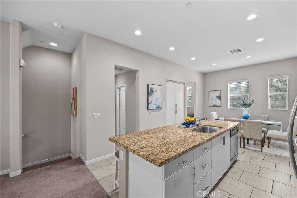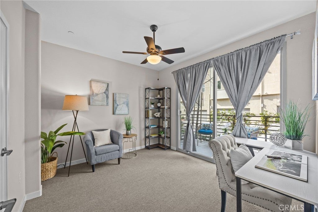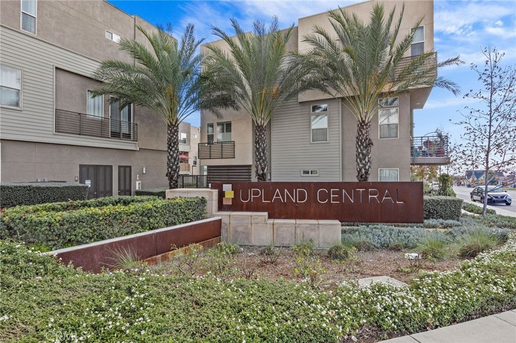 This stunning, upgraded condo is located in Upland Central, an exclusive Live/Work community of just 78 units. The ground level features a spacious tiled entry and a dedicated office space permitted for business use, complete with its own private patio and a large ADA compliant bathroom—ideal as a workspace, guest room, or study. The second level offers an impressive open floor plan with high ceilings, recessed lighting, a ceiling fan, and a bright living area that opens to a covered balcony. A generous dining space flows into the expansive kitchen, which includes a large island with abundant workspace and breakfast seating, plus a versatile prep area perfect for a tech center or additional pantry storage. The kitchen is outfitted with GE stainless steel appliances, a stainless steel smudge free refrigerator, Delta chrome pull out faucet, farmhouse sink, granite countertops, and ceramic tile flooring. A wall pantry, linen closet, and powder room complete this level. On the third floor, you’ll find both the primary and junior bedroom suites, along with a convenient laundry room equipped with LG stackable front loading washer and dryer. The primary suite features a walk-in shower, dual sinks, and a spacious walk-in closet. The junior suite includes its own private bath and walk-in closet as well. Large windows throughout the home bring in abundant natural light, creating a bright and airy atmosphere. Fresh painted interiors. Parking is plentiful at both the front and rear of the building, with direct access to a private 2-car garage. Freshly painted interiors. Community amenities include a pool, BBQ areas, fire pits, and multiple lounge spaces. Located in a prime area with easy access to Montclair Plaza, Upland Old Town, Claremont Colleges, Claremont Village, Whole Foods, Tesla Superchargers, hiking and biking trails, and the 10 and 210 freeways. This home offers convenience, comfort, and modern living all in one and LOW PROPERTY TAX RATE.