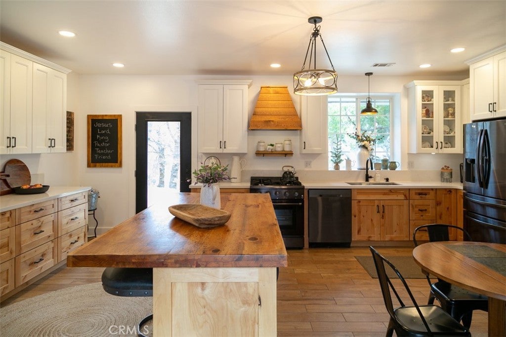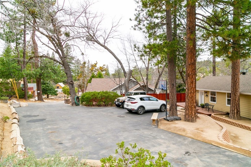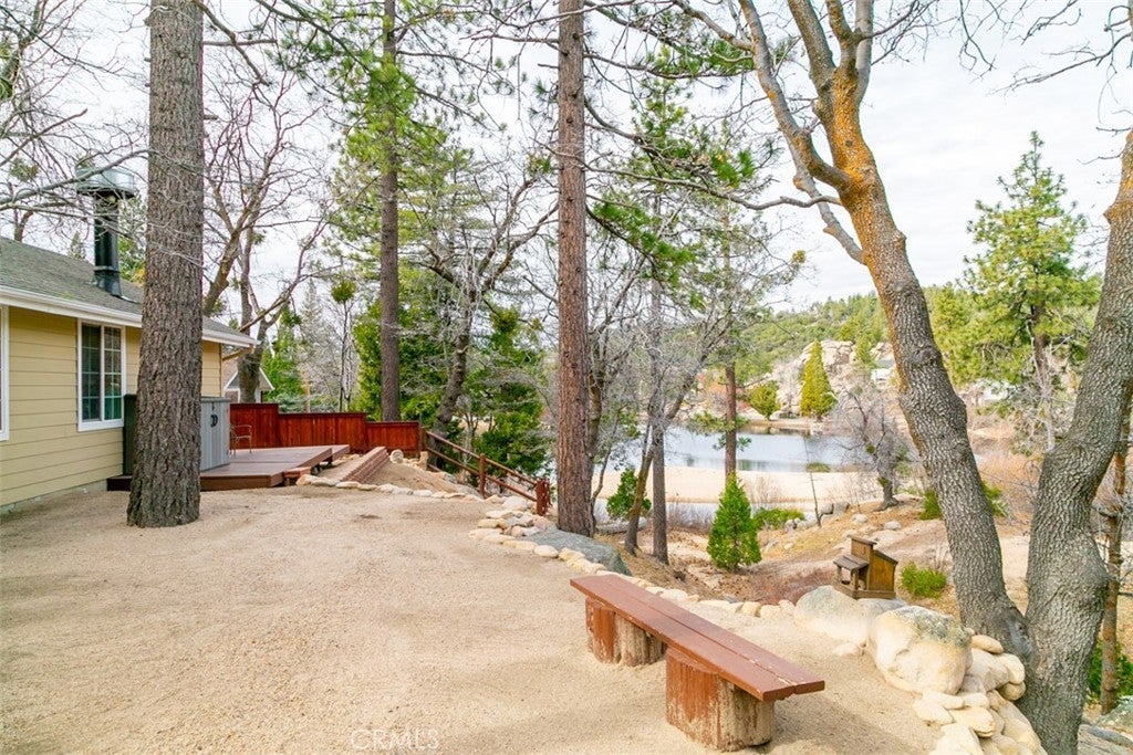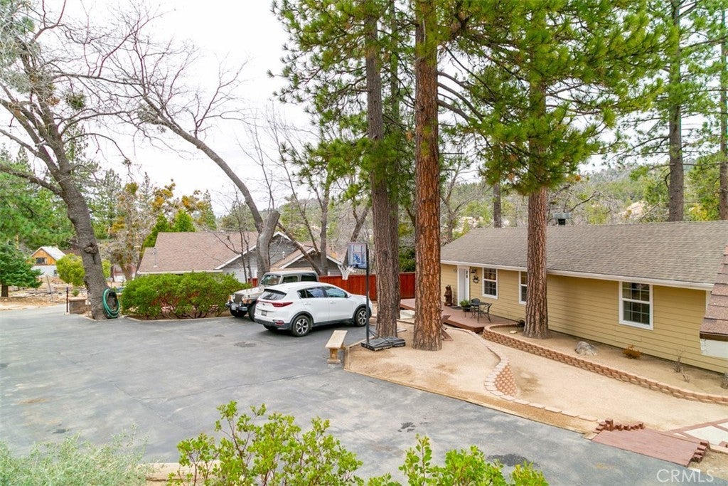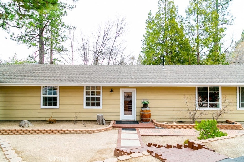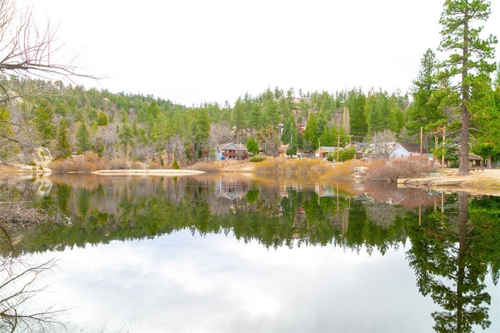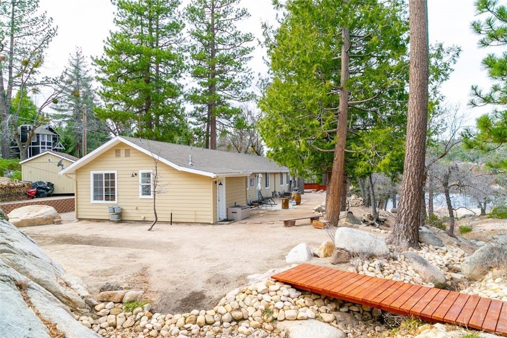 Tucked away in the quiet mountain community of Arrowbear Lake, halfway between Lake Arrowhead and Big Bear, this rare single story retreat offers privacy, flat usable land, and a direct connection to nature that few mountain homes can match. From the backyard, enjoy peaceful views of nearby Arrowbear Lake, while a seasonal stream runs gently along the side and rear of the property, flowing toward the lake just beyond. Deer sightings are common right from the front door. Completely remodeled with permits and completed in 2023, this custom home blends modern comfort with thoughtful mountain design. The open kitchen features quartz countertops, a custom wood island with power outlets, and a full suite of included appliances. The living room is anchored by a striking rock fireplace with wood burning capability and gas ignition, creating a warm and inviting gathering space. Built with durability and efficiency in mind, the home features extra thick insulated exterior walls, forced air heating, indoor laundry, and two 50 gallon gas water heaters for abundant hot water. Set on approximately 0.38 acres, the property offers rare flat terrain with privacy on three sides and undeveloped land surrounding most of the parcel. Over 1,000 square feet of decks and patios extend the living space outdoors, while level paved parking accommodates 8 or more vehicles, RVs, or group gatherings. Whether used as a full time residence, mountain retreat, or private getaway, this is a truly special Arrowbear offering where land, water, and tranquility come together.