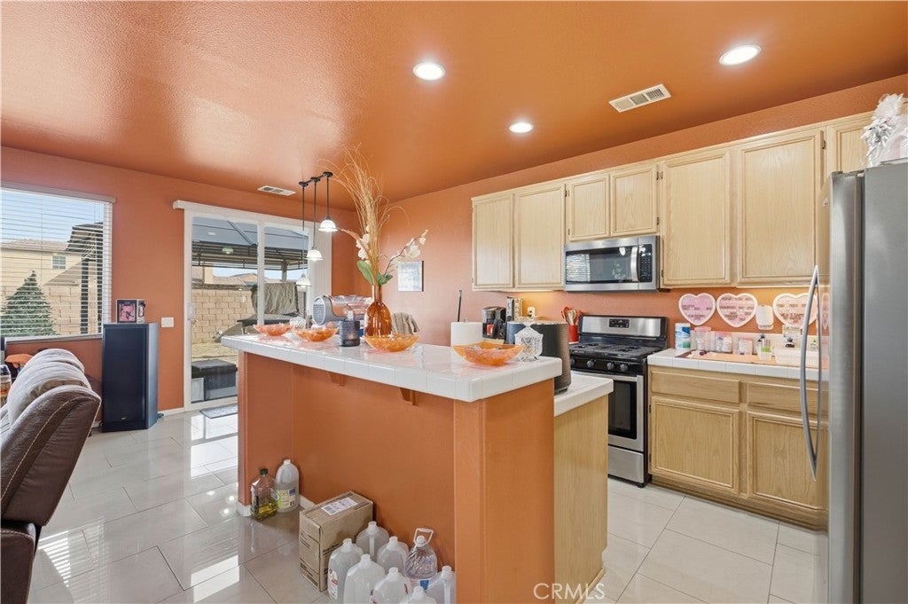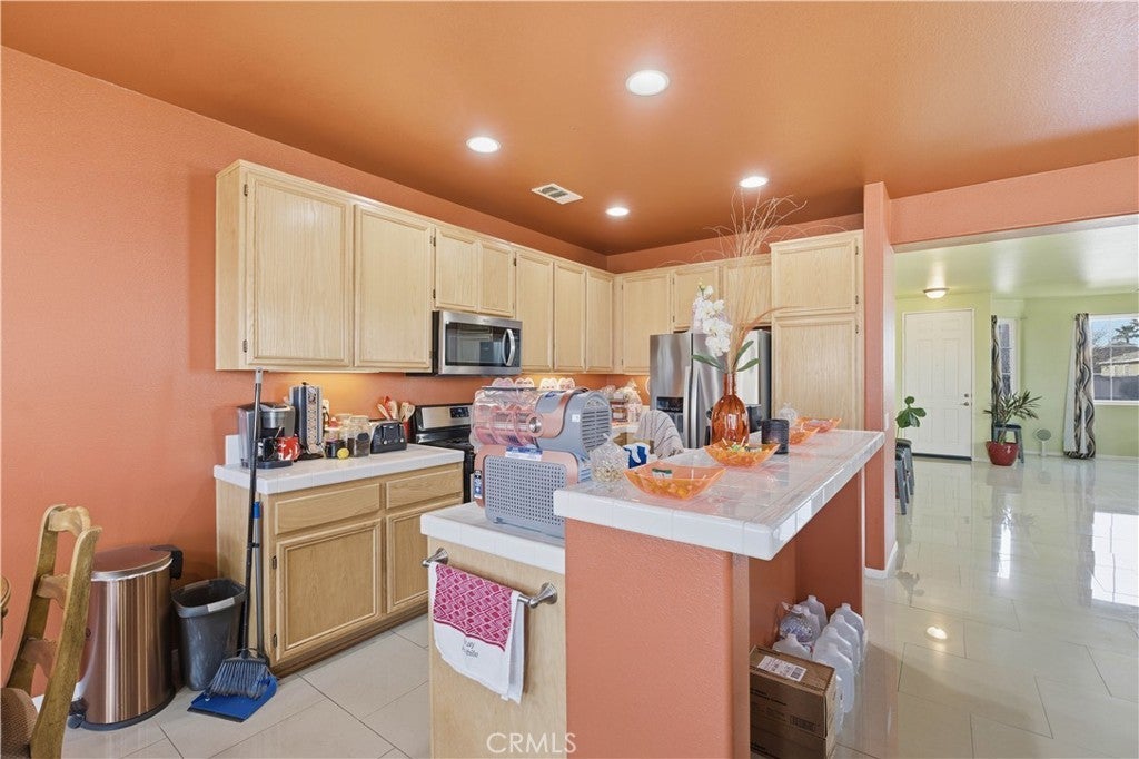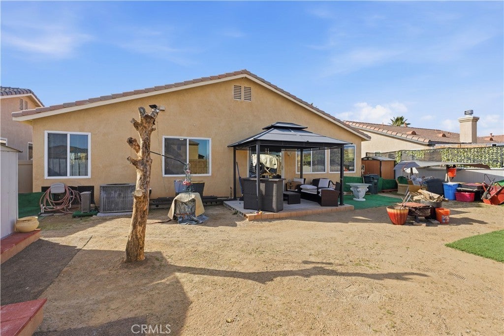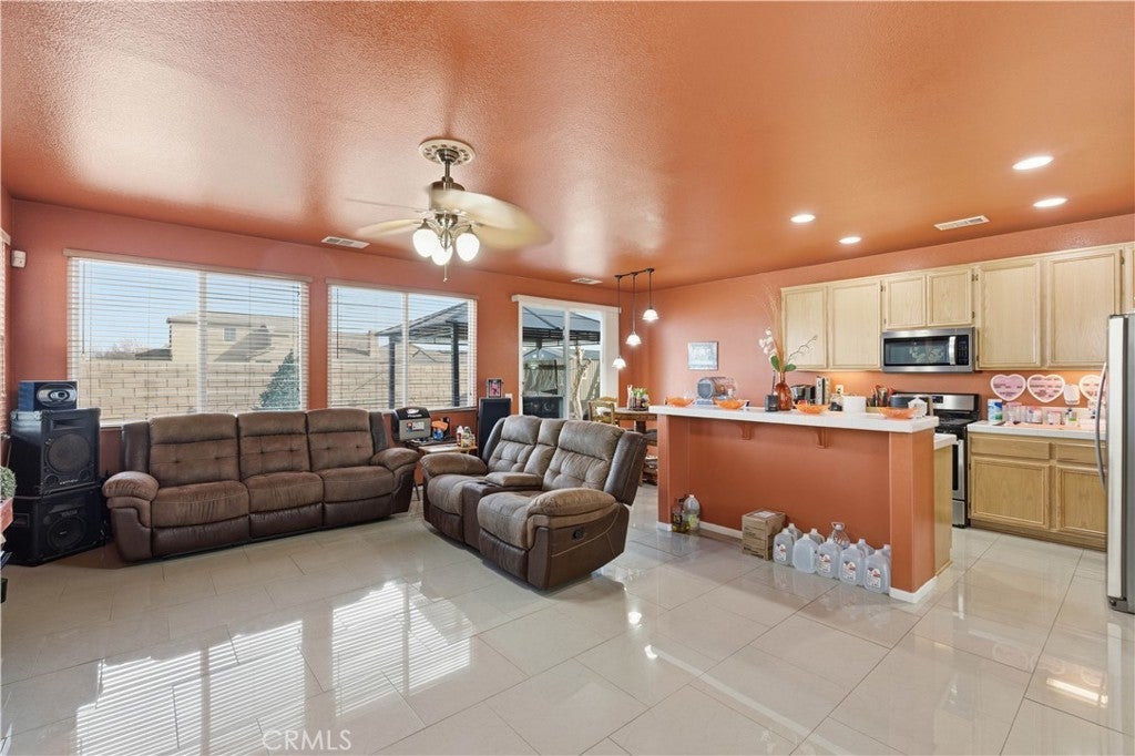 This move-in ready 4-bedroom, 2-bathroom home offers 2,038 sq. ft. of single-story living, beautifully maintained by the original owners since it was built new in 2005. The open and durable interior features porcelain tile flooring throughout the main living areas—living room, dining room, family room, kitchen, and hallway—for both elegance and easy care. The cozy family room includes a fireplace, perfect for cool desert evenings, along with a convenient media niche featuring a sliding shelf for easy TV access. Thoughtful updates include fresh interior paint, a new stove, new dishwasher, and a new microwave. Two of the four bedrooms have been upgraded with new carpeting. Outside, the low-maintenance front yard features artificial turf and decorative rocks, ideal for water conservation. The backyard is fully private with a block wall and durable vinyl fencing, plus two gazebos for outdoor enjoyment. Located in a convenient Adelanto neighborhood close to shopping, schools, Super Walmart, Stater Brothers, CVS, and Walgreens. Don’t miss this lovingly cared-for home—schedule your tour today!