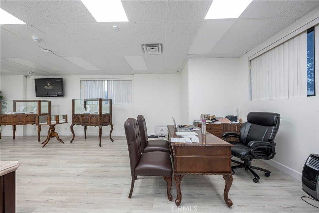 Approximately 10,820 square feet of well-appointed executive office space is available for lease in a prominent San Dimas location. The building features an efficient layout with multiple private offices, generous open areas suitable for conference, showroom, or collaborative use, and a kitchen supporting a wide range of professional and corporate operations. Positioned just south of the Glendora Country Club, the property benefits from excellent corner visibility at a signalized intersection. Direct access to the 210 and 57 Freeways allows for seamless regional connectivity, and the San Dimas Metrolink Station, located just under ten minutes away, provides convenient commuter access making this an ideal setting for executive users seeking both presence and accessibility.
