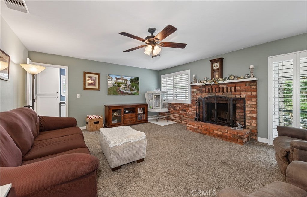 Turn-key home with pride of ownership throughout! This beautifully maintained 4-bedroom, 2.5-bath residence offers approximately 2,136 sq ft of living space on a generous 10,600 sq ft lot. Thoughtful upgrades and meticulous care make this home truly move-in ready. The upgraded kitchen features newer stainless steel appliances, ample cabinetry, a pantry with pull-out shelves, tile flooring, and a breakfast dining area. The bright living room offers abundant natural light and a large sliding glass door that opens to an open deck, perfect for indoor-outdoor living. The inviting family room is anchored by a brick fireplace with wood-burning gas option, creating a warm and comfortable gathering space. The spacious primary bedroom includes a walk-in closet, multiple windows with plantation shutters, and a private bath with dual sinks and a walk-in shower. The second and third bedrooms are generously sized with ceiling fans and ample closet space. The fourth bedroom is currently used as an office but can easily be converted back to a bedroom. The hall bath offers dual sinks, a tub/shower combo, and tile flooring. A convenient half bath is located just inside the garage entry. Additional highlights include an indoor laundry room, an oversized two-car garage with 10-foot ceilings, and excellent storage throughout. The backyard is ideal for entertaining, centered around a large oak tree and pond, with a spacious covered patio perfect for family gatherings. RV parking is approximately 30 feet deep with a 12-foot wide gate, plus room to expand if desired. A 10’ x 20’ storage shed adds even more versatility. Other upgrades include Solar, dual-pane windows, plantation shutters on most windows, whole house fan, new roof, new insulation, newer water heater, rain gutters, and a dog run. This home combines space, comfort, and functionality—an exceptional opportunity you won’t want to miss!