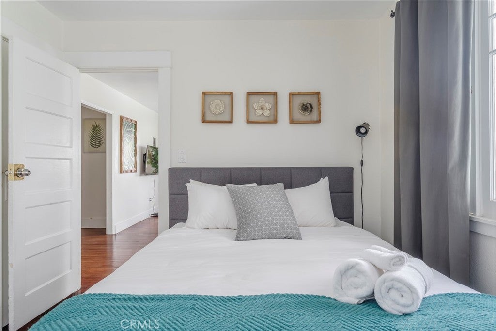 A beautifully maintained 2-bedroom, 1-bath standalone house offering comfort, privacy, and charming character in a prime Hollywood location. This home is located in the historically sited Bukowski Court, a private gated community. At the entrance, you are greeted with a large living room with plenty of natural light coming in through the windows. With natural wood floors going throughout the house. From the living room, you are led to a quaint dining room, adjacent to a separate kitchen. There is an on-site laundry facility available along with 2 assigned parking spaces. This home is in a Convenient location just north of Santa Monica Boulevard, with easy access to the 101 Freeway, making this home close to restaurants, shopping, entertainment, and everyday conveniences throughout Hollywood. A rare opportunity to lease a standalone residence with charm, functionality, and excellent urban accessibility.