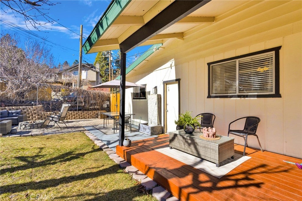 Welcome to your cozy luxury retreat, perfectly positioned on a desirable corner lot with beautiful, peaceful views. Whether you're dreaming of a forever home or an idyllic family getaway, this beautifully updated 3-bedroom, 2-bath residence offers the perfect blend of comfort, charm, and mountain elegance. Arrive home to a spacious front deck, the ideal place to unwind, greet guests, or enjoy the fresh mountain air before stepping inside. As you step inside, you’re welcomed by a charming entryway—ideal for a bench, boots, and mountain gear—setting the tone for warm, inviting living. The living room is a true showpiece, featuring a great rock-wall fireplace with insert that anchors the space and creates a cozy atmosphere year-round. A separate large dining room with barn-style sliding doors adds both character and functionality. The beautifully updated kitchen is designed for both everyday living and entertaining, with upgraded appliances, abundant counter space, and a fabulous breakfast bar. Beamed high ceilings enhance the open, airy feel while still maintaining that classic mountain-home warmth. One bedroom and a full bathroom are conveniently located on the main level. Upstairs, the expansive primary suite feels like a private retreat, complete with French doors opening to a balcony—perfect for sipping your morning coffee, enjoying a quiet cup of tea, or taking in the breathtaking views. An additional upstairs bedroom and full bath complete the home’s thoughtful layout. Outdoors, the fenced yard offers privacy and space to relax, while the back patio is ideal for entertaining under the stars. Additional highlights include a shed for storage, a two-car tandem garage, dedicated RV parking with a power source, and plenty of additional parking. Located on the east side of Wrightwood, this home offers peaceful mountain living while remaining close to the charming village and its beloved year-round summer and winter activities. Veterans welcome