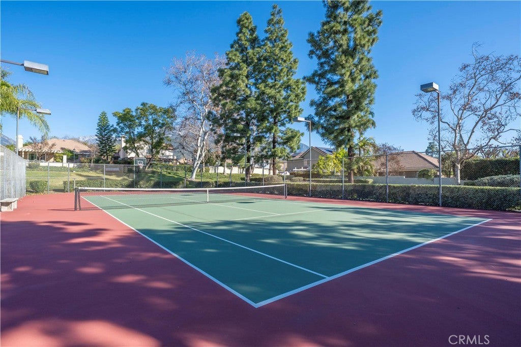 Located on an interior street in the Chelsea Park Community of Upland, this single-story residence offers 3 bedrooms, 2 bathrooms, and approximately 1,493 square feet of living space on a 6,955 square foot lot. Originally built in 1984 and used as a model home during community development, the property includes enhanced construction features and mature landscaping. The open floor plan includes a living room with fireplace and adjacent dining area, creating a functional layout with natural light throughout. The kitchen features quartz countertops, refinished white cabinetry, LED recessed lighting, a bay window, and a dedicated eating area with a large picture window overlooking the front yard. The primary bedroom includes sliding door access to the covered patio and an en-suite bathroom with dual sinks, soaking tub, and separate shower. Two additional bedrooms are served by a full hall bathroom. Additional interior features include crown molding, recessed lighting, central air conditioning, dual-pane windows, and an individual laundry room with direct access to the attached two-car garage. The backyard offers multiple outdoor zones including an Alumawood-covered patio, artificial turf area, natural grass section, decorative fountain, brick hardscape, and a concrete side yard. The property also includes additional brickwork, mature trees, and landscaping enhancements consistent with its original model home status. Residents enjoy access to Meadow Vista HOA amenities including a community pool and spa, tennis & pickleball court, picnic area, playground, and landscaped greenbelts. Conveniently located near neighborhood parks, community recreation areas, and major transportation corridors.