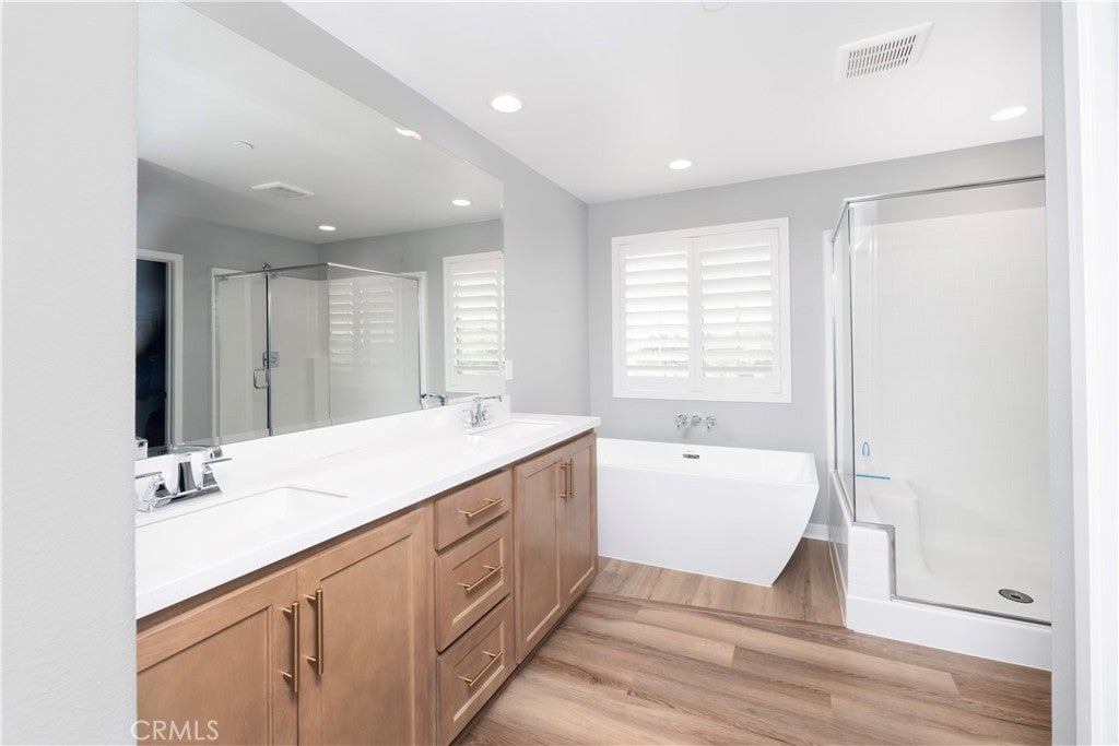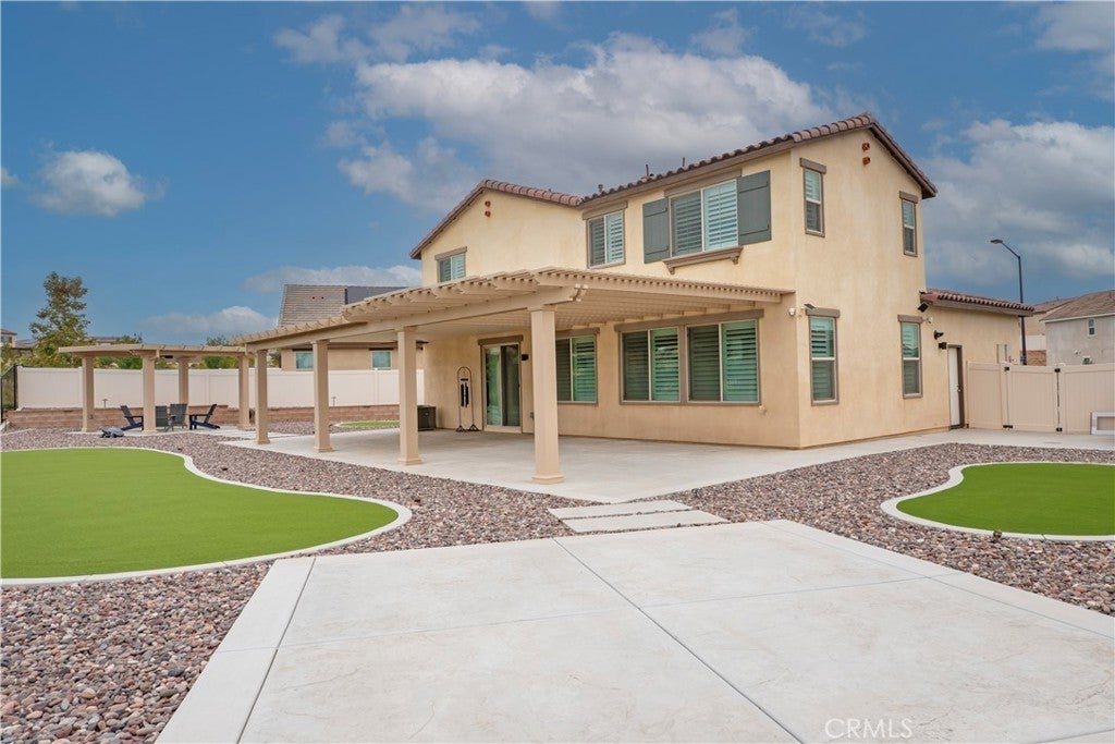 Step into modern comfort and style at this beautifully upgraded two-story home in Banning. With 2,286 sq ft, 4 bedrooms, and 3 full baths, this home was designed for both everyday living and effortless entertaining. From the moment you walk in, the open floor plan with sleek LVP flooring and plantation shutters sets the tone for a bright and welcoming space. The chef’s kitchen comes complete with stainless appliances, while the great room and dining area flow seamlessly together, creating the perfect backdrop for family gatherings and celebrations. Retreat upstairs to the spacious primary suite featuring a soaking tub, separate shower, and plenty of room to unwind. Smart home features, energy-saving upgrades, and a 2-car garage with EV charger bring modern convenience at every turn. Outside, your private backyard oasis awaits with professional landscaping, extended patio cover, and freestanding lattice with ceiling fans—ideal for summer barbecues, quiet evenings under the stars, or hosting friends year-round. Bonus Paid off Solar! This is more than just a home—it’s a place where memories are made.