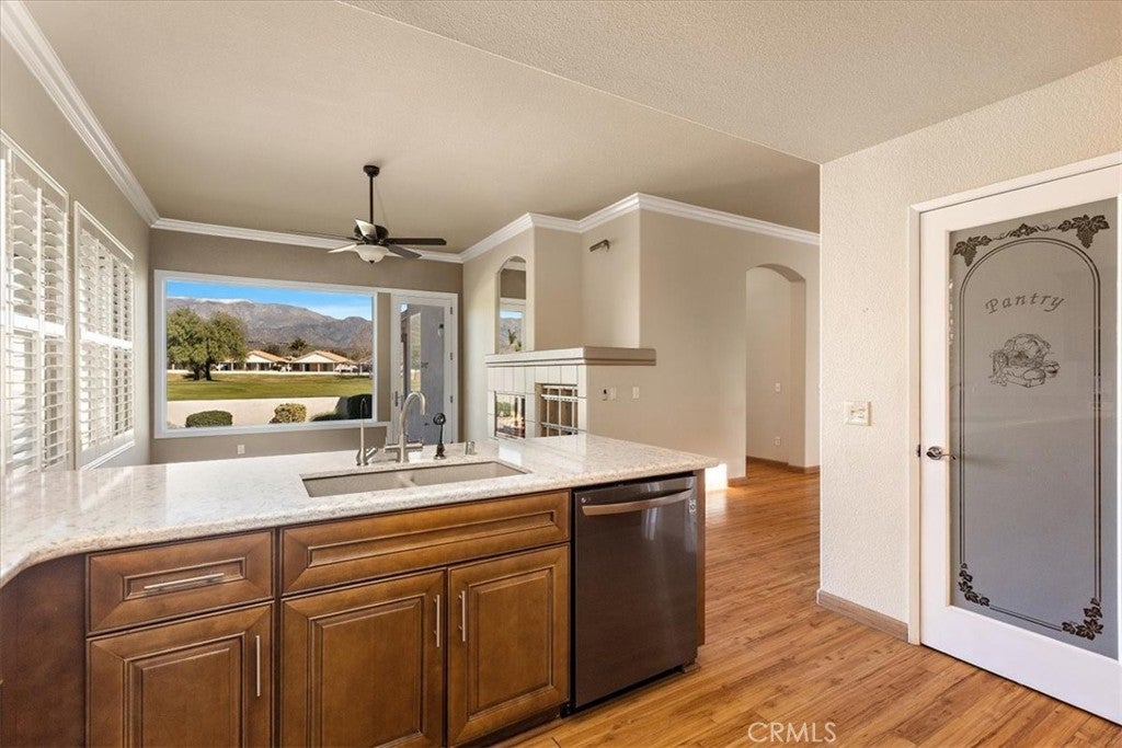 Welcome to 4944 Oakhurst Ave., Banning, CA, a beautifully upgraded 2-bedroom, 2.5-bath home located in the highly desirable Sun Lakes Country Club, a premier 55+ gated community offering resort-style living. This two-story home features a thoughtfully designed floor plan with the primary bedroom conveniently located on the main level, providing comfort and accessibility. Upstairs, you’ll find a spacious loft, an additional bedroom, and a full bathroom, perfect for guests, hobbies, or a home office. The home showcases laminate flooring throughout the kitchen, dining area, and den, while plush carpet adds warmth to the family room, staircase, and bedrooms. The remodeled kitchen features updated finishes, ample cabinetry, and a breakfast bar, ideal for casual dining and entertaining. Both the primary bathroom and downstairs bathroom have been tastefully remodeled, adding modern comfort and style. Step into the backyard and enjoy stunning views of the golf course and lake, with peaceful mountain scenery creating a serene outdoor retreat, perfect for morning coffee or relaxing evenings. As a resident of Sun Lakes Country Club, you’ll enjoy exceptional amenities including three swimming pools (two outdoor and one indoor), a championship golf course, a clubhouse, fitness center, tennis, and pickleball courts, walking trails, and a full calendar of social activities. This home offers the perfect blend of comfort, upgrades, and an active lifestyle in a vibrant community.