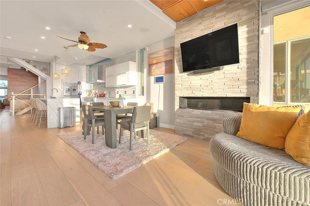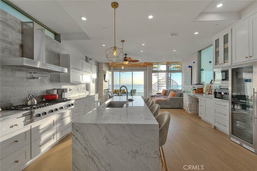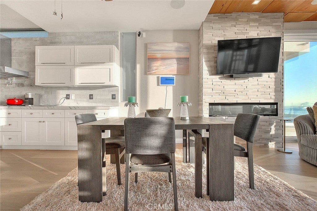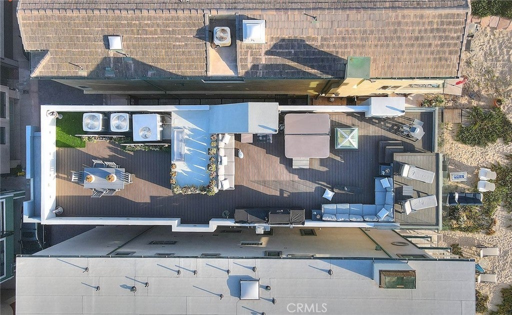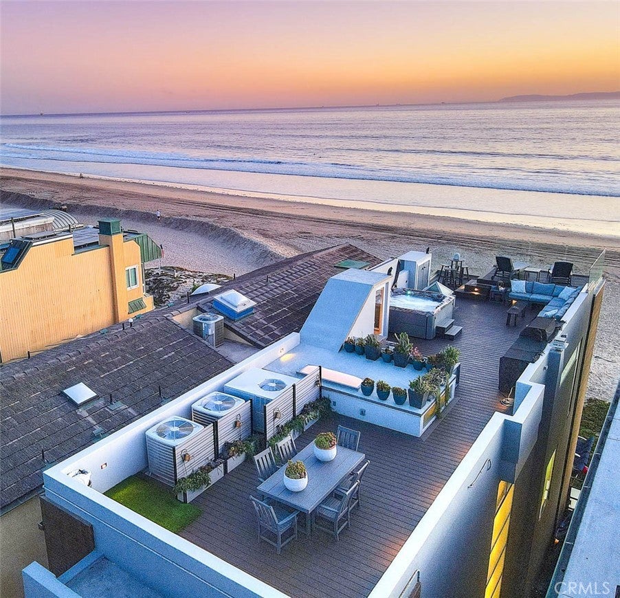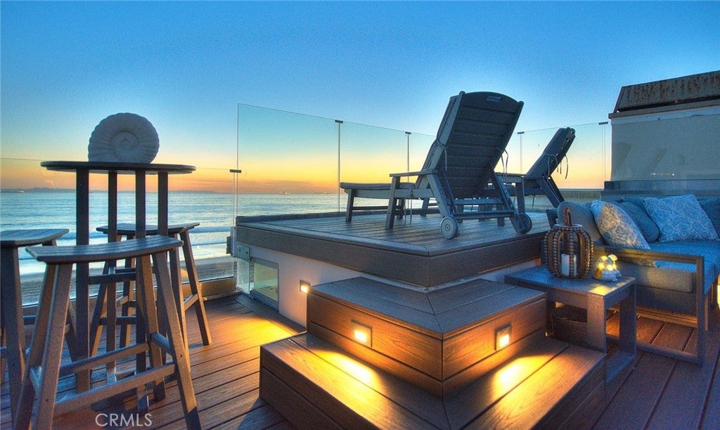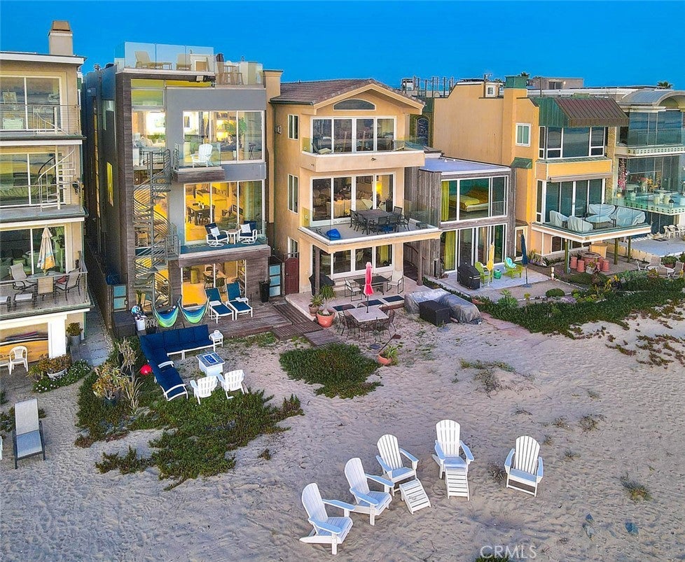 Imagine stepping directly from your home onto a pristine, sun-kissed beach—this is beachfront living at its finest. Located in the coveted Surfside community, this multi-level oceanfront estate offers 3,306 square feet of thoughtfully upgraded living space, blending refined design with the comfort of a private coastal retreat. The home is offered fully furnished, with all furniture included in the sale for a seamless turnkey experience. The second-level main living area showcases an open floor plan with sweeping panoramic ocean views, a beautifully crafted fireplace, and direct access to a balcony ideal for morning coffee or sunset relaxation. An adjoining great room/media space features full surround sound, creating the perfect setting for entertaining or intimate gatherings. The chef’s kitchen is both elegant and functional, equipped with Viking appliances, a large stone-topped island, custom cabinetry, and a wine refrigerator—ideal for hosting beachfront dinners. The third-floor primary suite is a true sanctuary, featuring a private ocean-view balcony, a spa-inspired bath with a jetted tub overlooking the water, a walk-in shower, an imported Murano chandelier, upgraded plumbing, custom mirrors, and enhanced electrical. The first level functions as a private guest retreat with its own kitchen, bedroom, and direct beach access—well-suited for guests or extended stays. Additional bathrooms throughout the home have been upgraded with premium finishes. Outdoor living is exceptional, featuring a private beach deck, outdoor shower, and an expansive rooftop deck designed for relaxation and entertaining. Enjoy a hot tub, upgraded barbecue (2025), newly furnished seating, ambient lighting, curated sunset views, and glass balustrades for unobstructed ocean panoramas. Recent improvements include new air conditioning units, which are also treated with rust inhibitor paint (2024), furnace replaced (2025), a whole-house water filtration system with a warranty, upgraded primary bath electrical, a new breaker box, a re-sealed and waterproofed roof with improved drainage, a treated spiral staircase, a hidden bookshelf feature in foyer, and a two-car garage with an upgraded EV charger. Additional highlights include designer rooftop furnishings, spa installed in 2024, and new beach lighting (2025). This exceptional Surfside estate offers timeless luxury, direct oceanfront access, and an unparalleled coastal lifestyle.