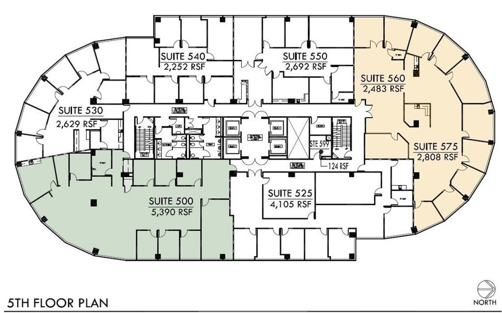 • 9-Story, Class A Office Building • Premiere Ontario Airport Submarket Location • Prominent I-10 Freeway Visibility • Built in 1991; Zoning: SP, City of Ontario • Immediate Access to I-10, at Haven Avenue • Close Proximity to I-15 and 60 Freeways • Reserved Parking Available • Full Service Gross Leases • Professionally Managed and Maintained Suite 500: 5,390 RSF | Includes: Reception area, 7 offices, conference room, breakroom with sink, storage/IT room, and open bullpen; furnished and move-in ready.