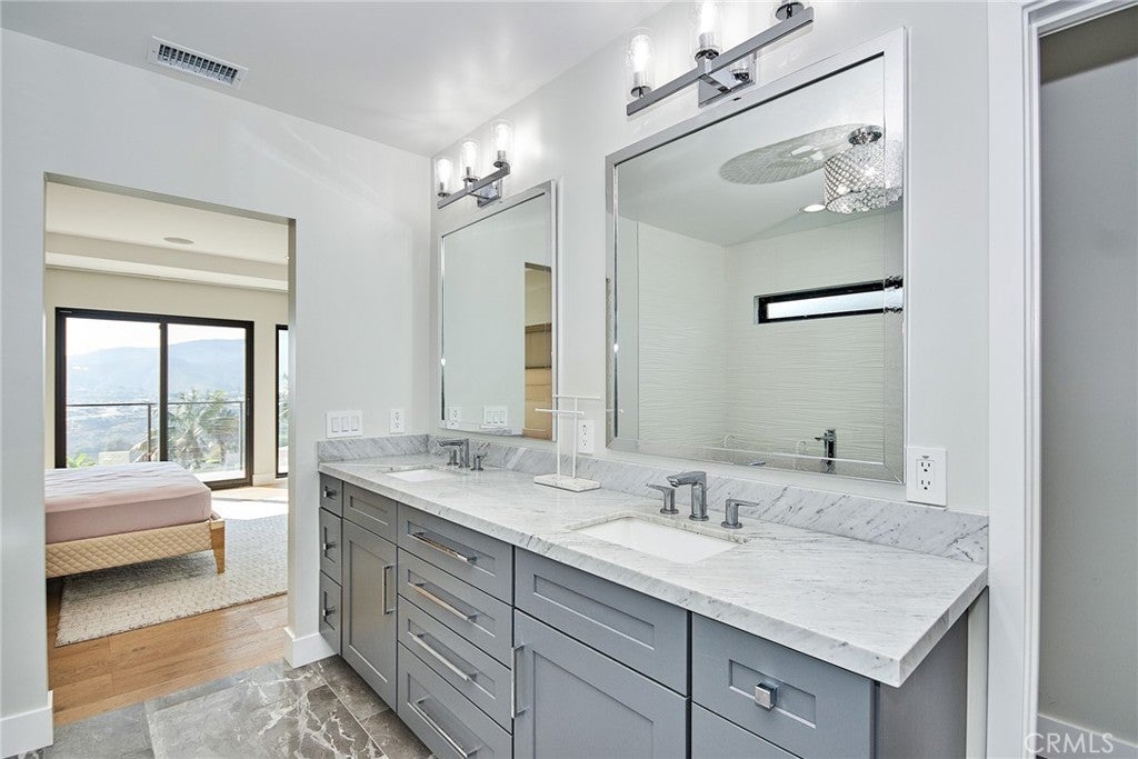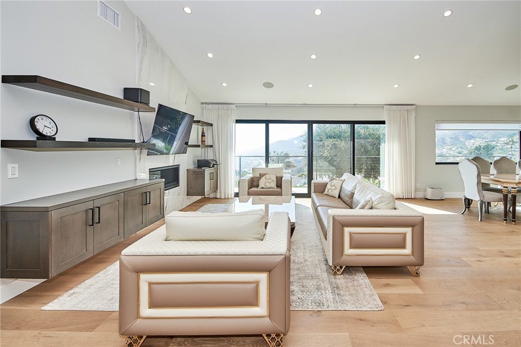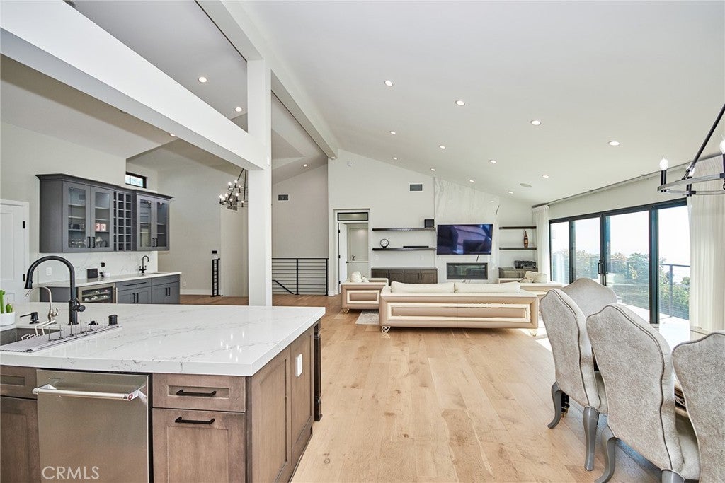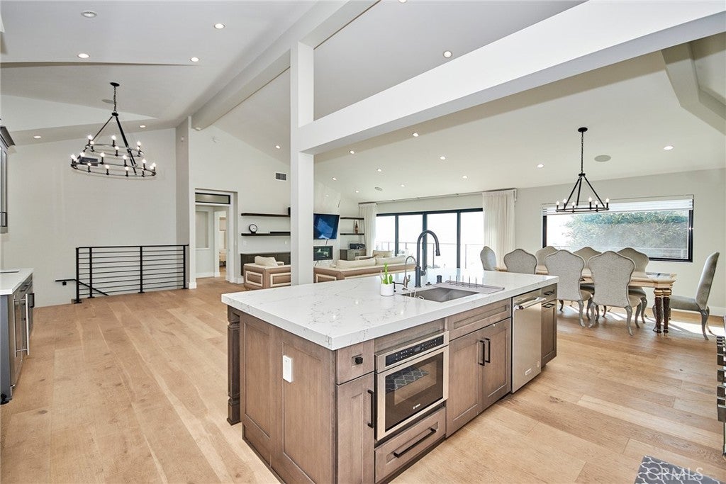 Fully furnished w. high end furniture and appliance! Completely rebuild in 2021. Magnificent renovation in the most desirable Pacific Palisades Castellammare Mesa location. Stunning finishes to highlight a spectacular view of the ocean, coastline, hillside, Sunset Mesa and the Santa Monica Mountains. Impressive front curb appeal with exterior brick, plaster and board and batten finishes, mature privacy hedges, and designer double door entry that opens to a breath taking enormous living space with soaring high architectural ceilings over entire kitchen, dining, and living area, all looking out to a full length balcony, custom railing, VIEW and back yard. Chef's kitchen with complete upscale appliance package, massive cook's island, and Butler's Pantry all with extensive use of beautiful Quartz, and Marble! Dream master suite with view, spacious custom-built walk-in closet, 2nd closet and built-in cabinetry, gorgeous bath with, standing tub, oversized shower, and exquisite marble counters and tiles!! Three additional bedroom suites with luxurious baths as well, with matching lighting, custom mirrors and top of the line faucets. Custom designer railing on staircase leading down to an open entertainment room looking out to the uniquely landscaped backyard with huge patio and massive deck! From the front to the back and from the top to the bottom, this is a picture perfect package that stands out from all the rest!