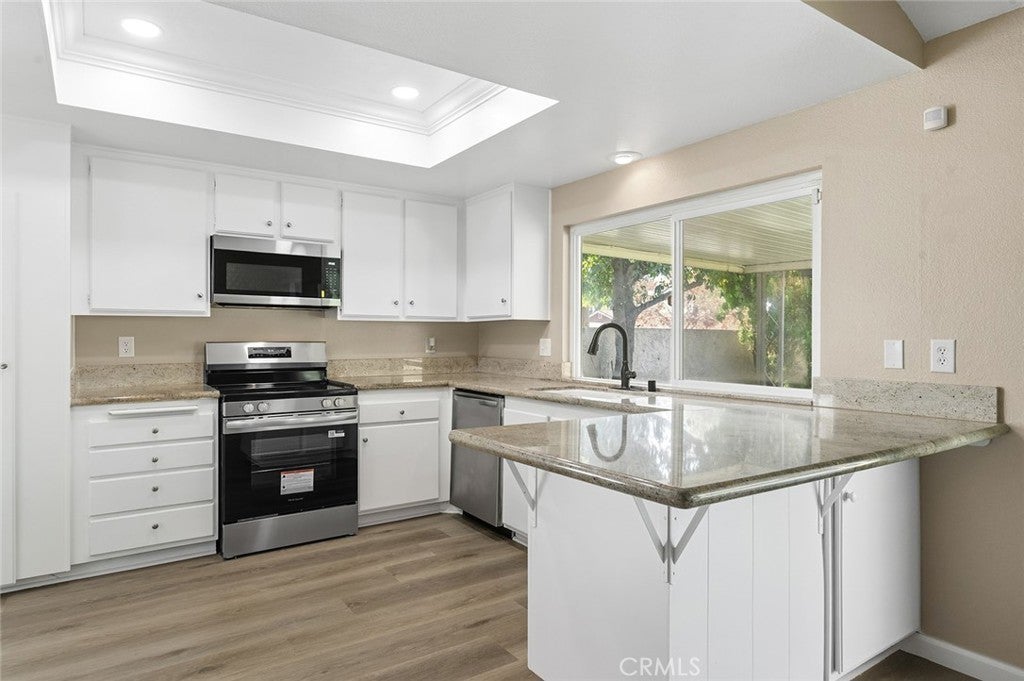 Great North Upland Neighborhood with great schools * New Interior Paint * New Luxury Vinyl Plank Flooring * New Stainless Steel Range, Microwave Oven and Dishwasher * Some New Fixtures * Gated courtyard leads to formal entry to step down living room/dining room combination - with plantation shutters and cozy fireplace * Step down family room with slider out to covered patio * Kitchen with painted white cabinets, new stainless steel range, microwave and dishwasher, quartz counter tops, breakfast bar and large picture window overlooking rear yard * Primary bedroom at back end of house with double closets, newer sink, mirrored wardrobe doors, privacy toilet and step in shower * Each secondary bedroom is ample in size and share the hall bathroom * Laundry hookups in THREE CAR garage * Nice large 10,283 square foot corner lot * Yard has orange, lemon and tangelo trees and lots of room for a pool, ADU etc.