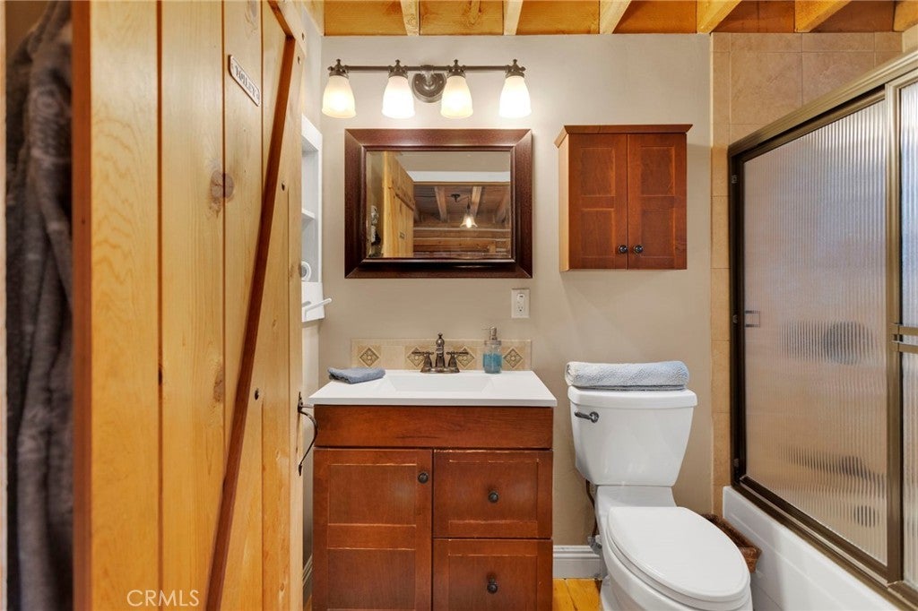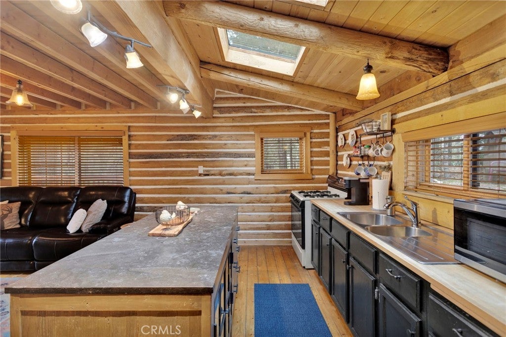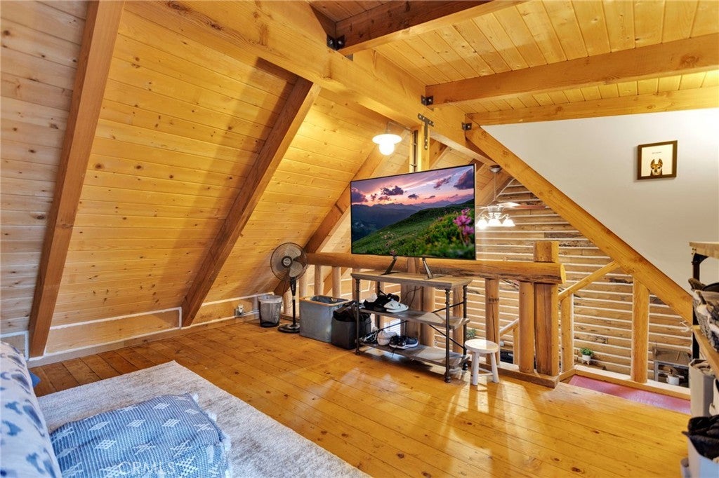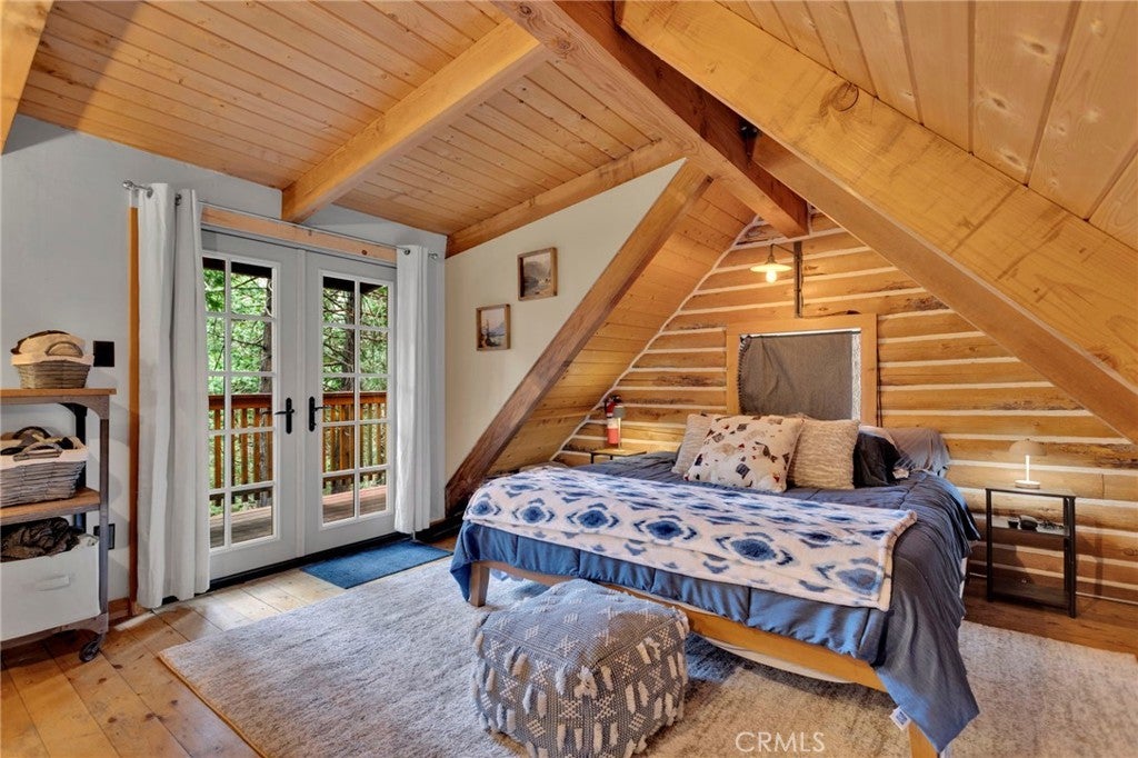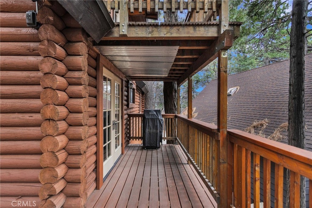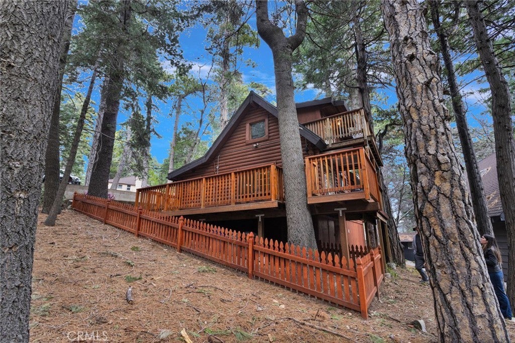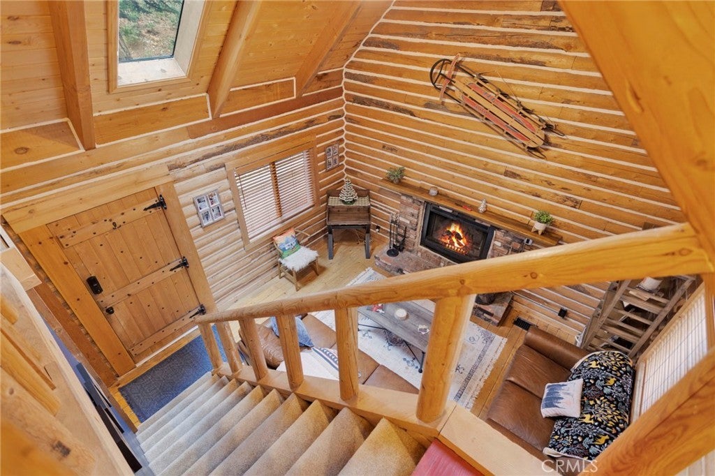 If you have been dreaming of a charming mountain escape filled with warmth and possibility, 788 Buckingham Square delivers a truly special opportunity. This charming log cabin tucked among the pines of Arrowhead Villas, offering more flexibility than a typical one-bedroom home. Just inside the entry is a practical mud room for removing shoes and outerwear before entering the main living space. The living room features vaulted ceilings, exposed wood beams, skylights, and a beautiful stone fireplace, creating a bright and comfortable gathering area. The kitchen sits next to a versatile bonus space that can function as a dining area, office, or additional sleeping area, and includes a newer refrigerator, new composite French doors, and washer and dryer in the closet. Upstairs, the loft-style primary suite offers privacy, its own balcony also with new composite French doors, and a treehouse feel. The home has been meticulously maintained with numerous upgrades including a roof installed in 2019, Nest thermostat, newer water shutoff, newer heater and HVAC ducting, fully insulated and foil-sealed buildup, Leaf Filter rain gutters with downspouts, and a 30-amp power connection with generator hookup. A wraparound deck provides outdoor space to relax. Also, there is a quarterly fee of $280 that covers water, trash, and snow removal. It is located just minutes from Lake Arrowhead Village, SkyPark, trails, dining, and Highway 18, this property offers both convenience and mountain charm. Come check out this amazing mountain cabin today!