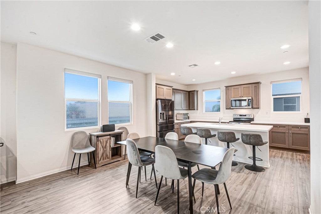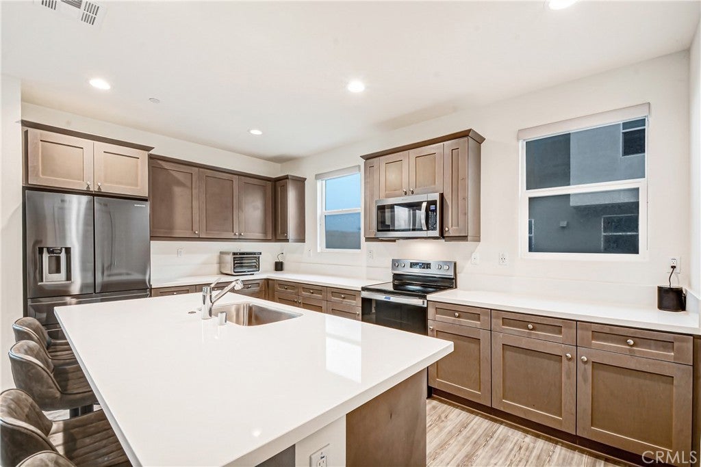 Experience elevated contemporary living in this beautifully designed tri-level residence built in 2022. Featuring 4 bedrooms and 3.5 bathrooms, this turnkey home offers thoughtful functionality and comfort throughout. The main living level showcases an open-concept layout that seamlessly blends the kitchen and expansive living area—perfect for entertaining or everyday living. The kitchen is anchored by a large center island, offering ample prep space and casual seating, and is complemented by sleek cabinetry and finishes. Clean lines and an airy layout create a refined yet inviting ambiance. Just off the kitchen, a generously sized walk-in pantry provides exceptional storage and houses the indoor stackable laundry for added convenience. Retreat to the expansive primary suite, a private sanctuary featuring a large walk-in closet and en-suite bathroom designed for comfort and relaxation. Secondary bedrooms are well-appointed and offer flexibility for guests, family, or a dedicated home office. This newer construction home features a direct-access attached garage with a built-in EV charger. Thoughtfully landscaped grounds, along with community BBQ and green spaces, create an inviting outdoor environment. Move-in ready and refined in design, this residence offers a rare opportunity to own a contemporary home that pairs style with functionality. Ideally located in central Santa Ana, it provides easy access to premier dining, shopping, major commuter routes, and the best of Orange County living.