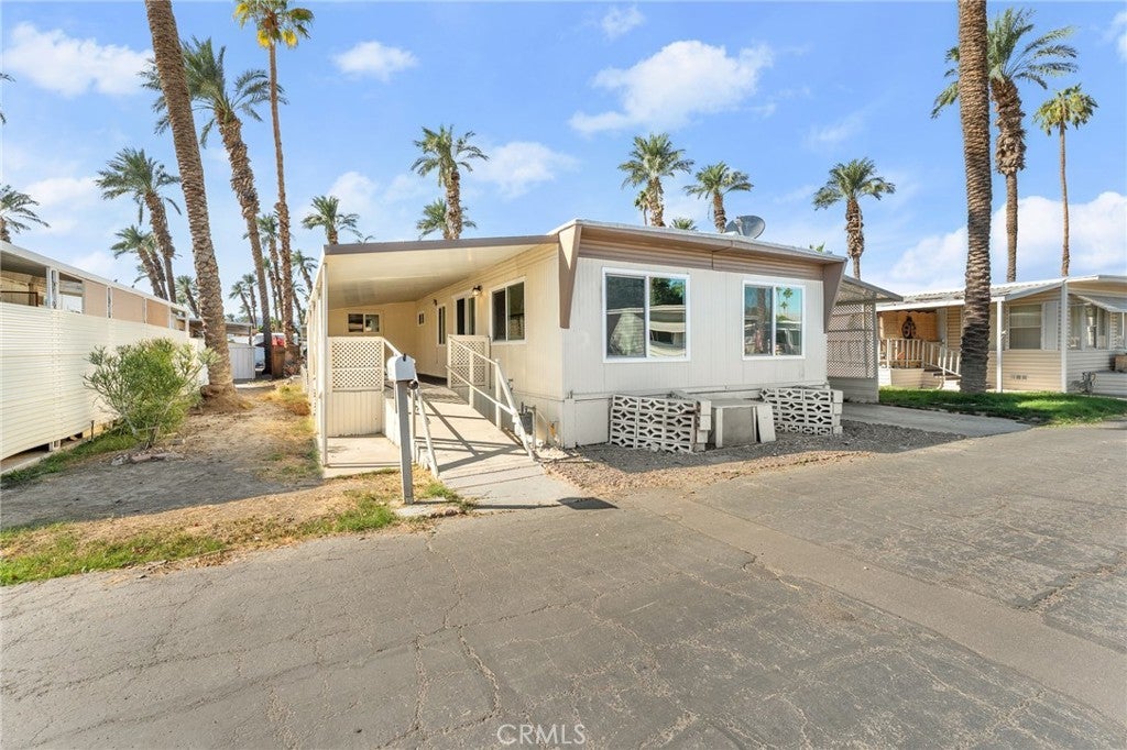 Move-In Ready!!! “Seller Willing to Sell on Payments” Welcome to Riverdale Estates, a friendly 55+ community in the heart of Indio, CA, known for its comfort, convenience, and desert charm. This beautifully refreshed 2-bedroom, 2-bath manufactured home is move-in ready and filled with thoughtful upgrades. Inside, you’ll find an open, light-filled floor plan featuring spacious living and dining areas that flow seamlessly into the newly updated kitchen, complete with stylish countertops and modern hardware. The home also features new flooring throughout, fresh interior paint, new energy-efficient windows, and updated bathrooms with sleek, contemporary finishes. The primary bedroom includes an en suite bath and generous closet space for added comfort. Enjoy outdoor living with a covered patio and carport, ideal for relaxing or hosting friends. Riverdale Estates offers a welcoming, well-maintained atmosphere with community activities and amenities designed to make every day enjoyable. Conveniently located near shopping, dining, golf, and medical services—plus just minutes from the best of the Coachella Valley. Don’t miss your opportunity to own in one of Indio’s most desirable 55+ communities—with seller financing options available! (Some photos may be virtually staged.)