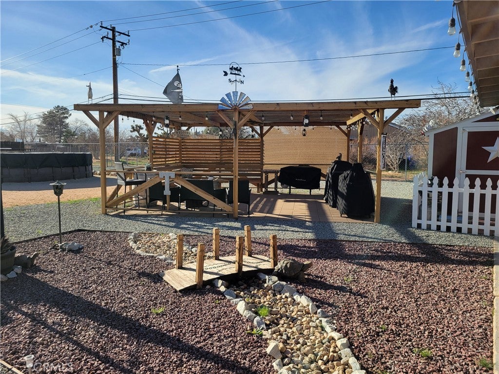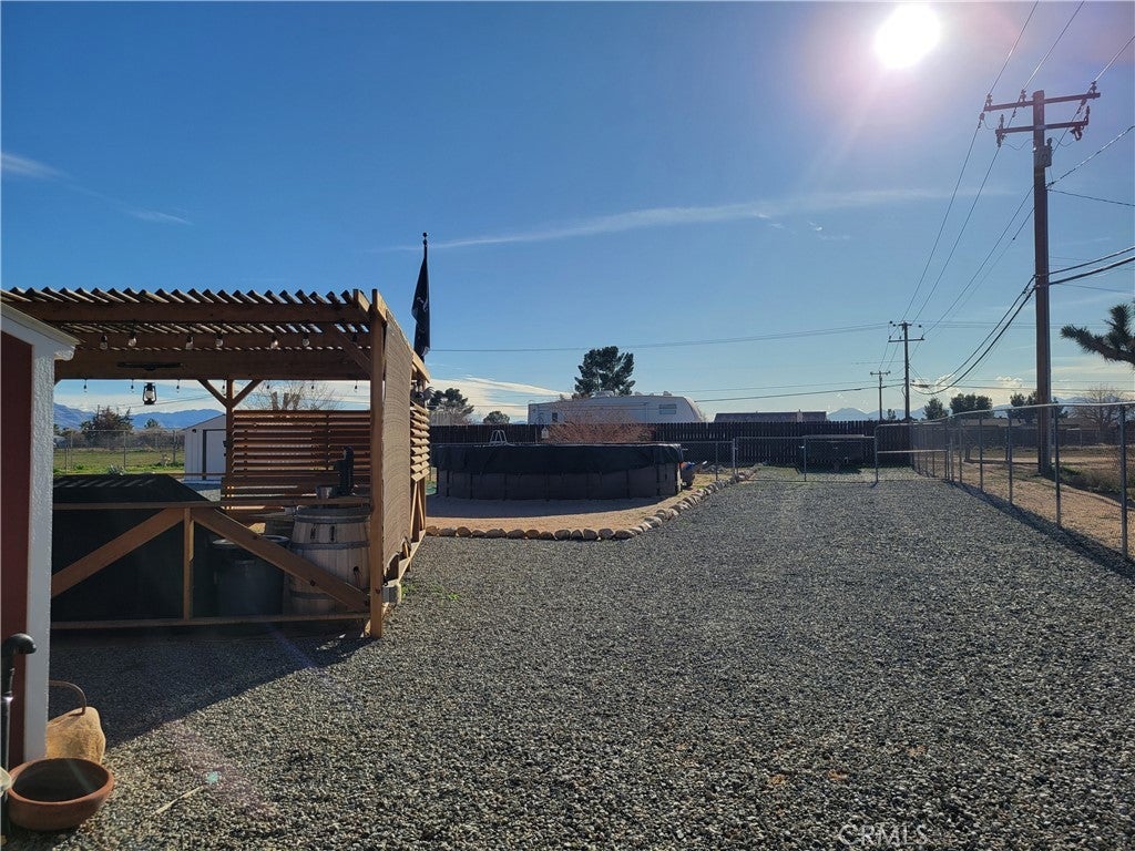Discover this beautifully updated home with modern finishes and soothing gray tones throughout. The bright kitchen features granite countertops, and every room has a ceiling fan for added comfort. Practical upgrades include two water heaters and a paid-off solar system at close of escrow. Outdoors offers an entertainer’s dream: an above-ground pool and Jacuzzi, an extra-large pergola, an 8'×10' storage shed plus a fully finished 8'×12' shed with a mini-split (perfect for an office or studio). The front yard is low-maintenance desert landscaping, and the landscaped backyard is divided into three fenced areas — each with double-door openings to allow drive-through access. Comfortable, functional, and move-in ready.