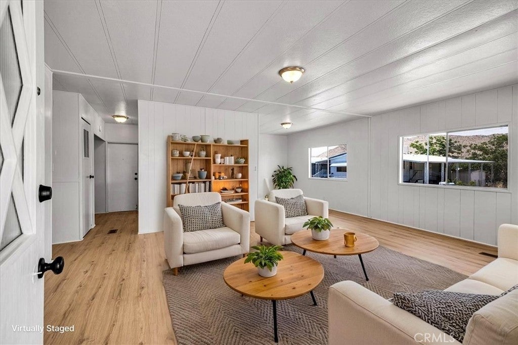 MOVE-IN READY – "Seller Willing To Sell On Payments" Plus 3 Months Free Space Rent for Buyer. This beautifully updated manufactured home in Aztec Estates, a gated 55+ community in Yucca Valley, features brand new flooring, fresh interior paint, a fully updated kitchen with new cabinets and hardware, and updated bathrooms with modern finishes. The exterior has also been refreshed with updated siding and fixtures, enhancing the home’s curb appeal. Aztec Estates offers a peaceful, secure setting with monthly local events and social gatherings, creating a vibrant and connected lifestyle. Conveniently located just minutes from shopping, dining, medical services, and Joshua Tree National Park. Financing is available—don’t miss this turnkey opportunity in one of Yucca Valley’s most desirable 55+ communities. Some photos have been virtually staged.