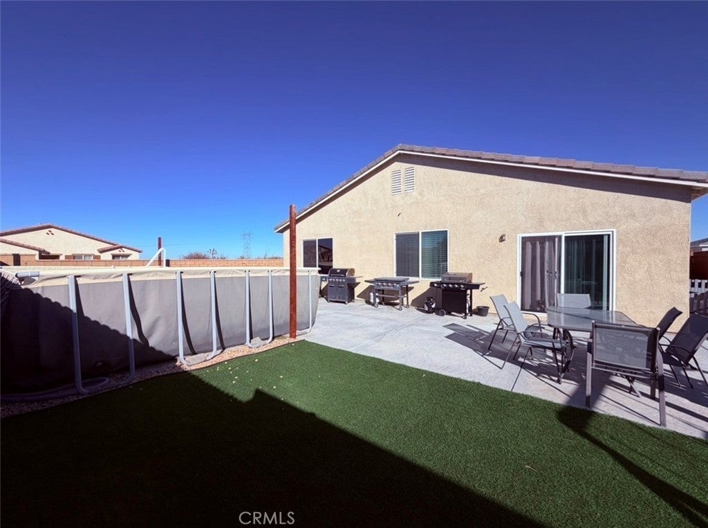 Welcome to this beautifully upgraded home located in the desirable North Adelanto area of Adelanto! This spacious 3-bedroom, 2-bathroom residence offers comfort, style, and versatility for today’s modern lifestyle. Step inside to discover generously sized rooms throughout, including a private primary suite featuring its own bathroom and a large walk-in closet. The home also boasts a versatile bonus room—perfect for a family room, home office, or even a potential 4th bedroom. The upgraded kitchen is a true highlight, featuring elegant granite countertops, stainless steel appliances, and not one, but two pantries with custom glass doors for added style and storage. Enjoy the seamless flow of large tile flooring throughout the home, complemented by ceiling fans in every room for year-round comfort. Relax and entertain in the inviting living area, complete with a custom-built TV/entertainment wall and an electronic ambiance fireplace—perfect for cozy evenings. Situated on a desirable corner lot, this property offers a spacious backyard with extensive concrete work on both the rear and sides—ideal for low maintenance and outdoor gatherings. Cool off during warm days in the above-ground pool, making this home perfect for entertaining family and friends. This move-in ready home truly has it all—space, upgrades, and flexibility. Don’t miss your opportunity to own this exceptional property!