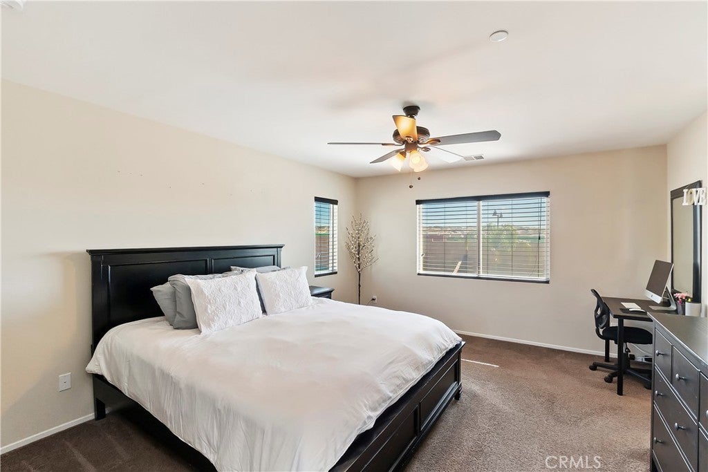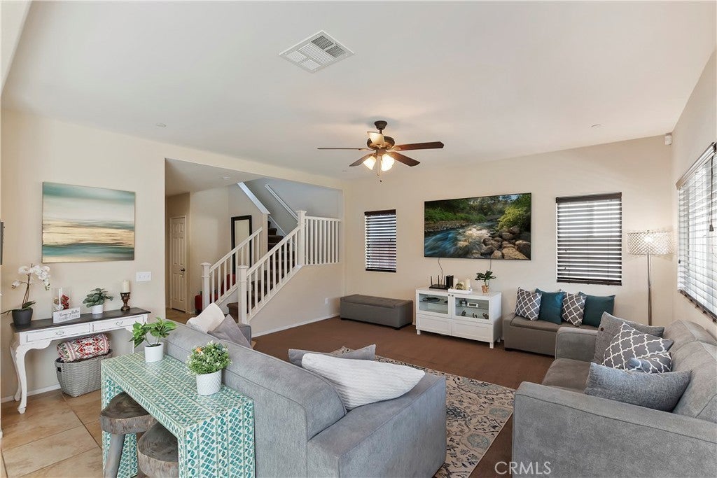 Welcome to this beautifully maintained 4-bedroom, 3-bath residence located on a quiet cul-de-sac in the highly sought-after Tournament Hills community. Built in 2014 and offering a FULLY PAID SOLAR SYSTEM — delivering immediate energy savings with no lease, no loan, and no added monthly payment — this 1,969 sq ft two-story home blends modern comfort with smart, cost-efficient living. Enjoy the advantage of significantly reduced utility bills and long-term protection against rising energy costs — a valuable upgrade that enhances both monthly affordability and future resale appeal. Inside, the open-concept layout is filled with natural light and ideal for everyday living and entertaining. The kitchen features granite countertops, rich dark cabinetry, stainless steel appliances, and generous prep space overlooking the main living area. Step outside to a private backyard retreat complete with a covered patio, built-in fire pit, manicured lawn, and scenic hillside backdrop — perfect for relaxing evenings or hosting gatherings. Additional highlights include an attached two-car garage and access to Tournament Hills’ lake, parks, and walking trails. Conveniently located near golf courses, shopping, dining, and easy access to the 10 and 60 freeways.