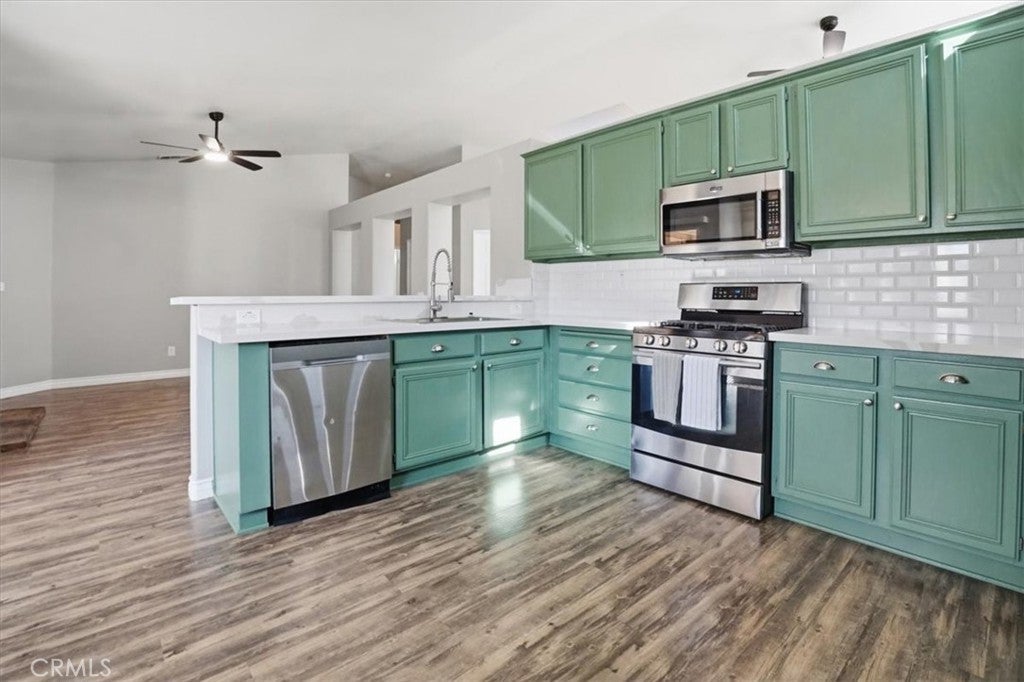 Back on Market, Buyer Failed to Perform. Welcome to 8910 Glenwood Ave in Hesperia — a beautifully maintained single-story home nestled on a spacious 8,805 sq ft cul-de-sac lot. This inviting 4-bedroom, 2-bath residence offers 1,859 sq ft of thoughtfully designed living space with an open and bright floor plan filled with natural light. From the moment you step inside, you’ll appreciate the airy feel and seamless flow that make this home perfect for both everyday living and entertaining. The expansive living room provides plenty of space to gather, while the separate family room features a cozy fireplace—ideal for relaxing evenings at home. The oversized kitchen is truly the heart of the home, complete with: New quartz countertops, Abundant cabinet storage, Breakfast counter for casual dining & a Sunny breakfast nook. Whether you're hosting guests or enjoying a quiet morning coffee, this kitchen delivers both functionality and style. Step outside to the generously sized backyard, designed for enjoyment and practicality. The huge covered patio creates the perfect setting for outdoor dining, weekend barbecues, or simply unwinding in the shade. Two large storage sheds provide ample space for tools, hobbies, and seasonal items—keeping everything organized and accessible. Located on a desirable cul-de-sac, this property offers added privacy while still being conveniently close to local amenities, schools, and commuter routes. This home combines space, comfort, and value—an exceptional opportunity you won’t want to miss.