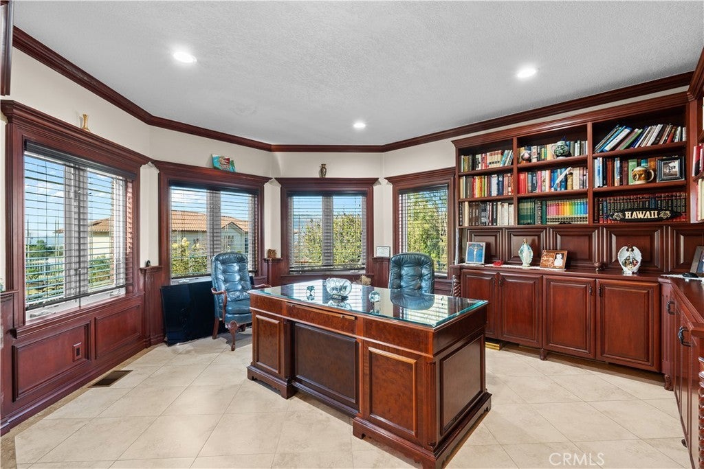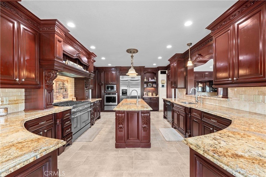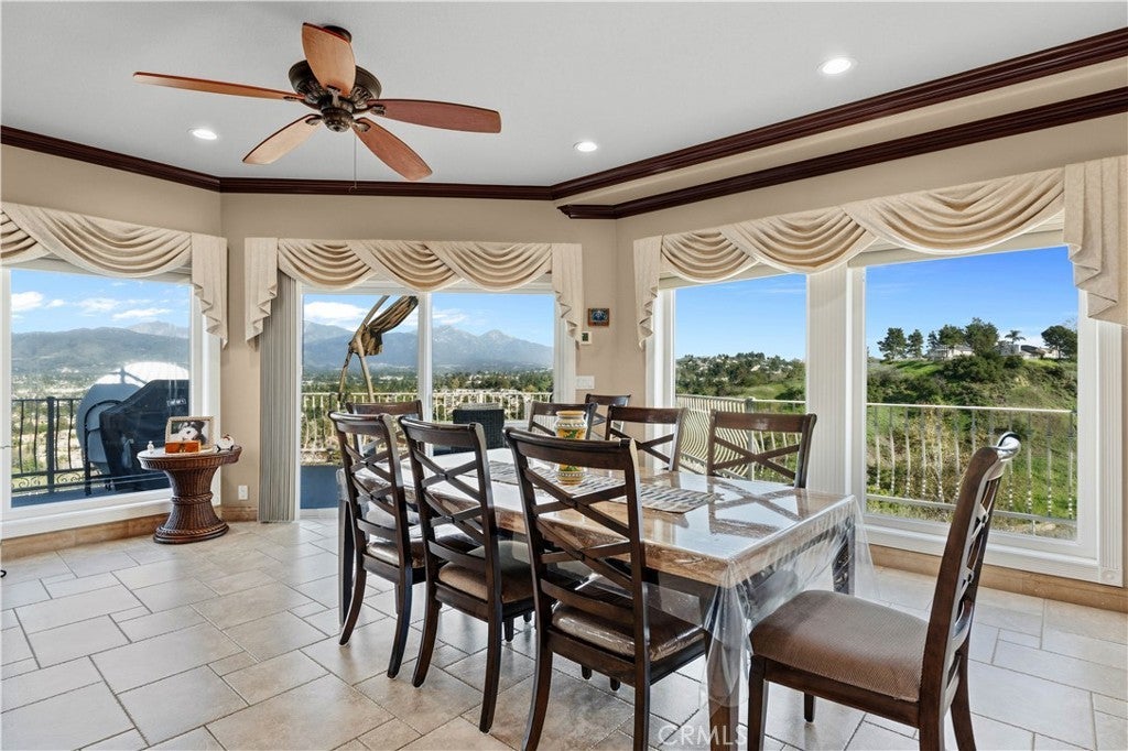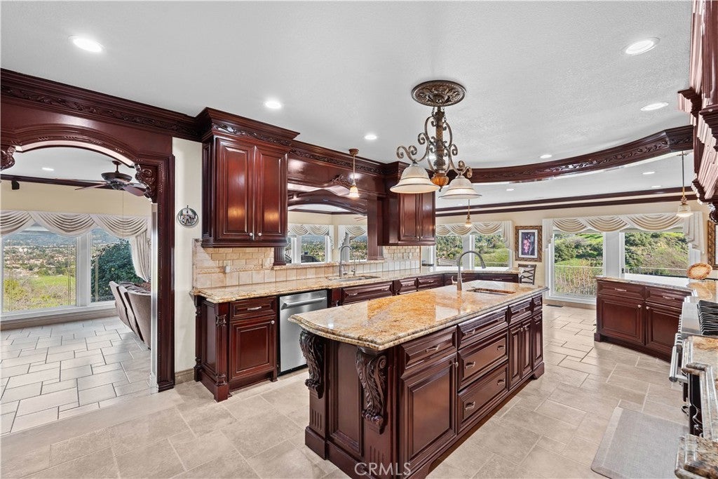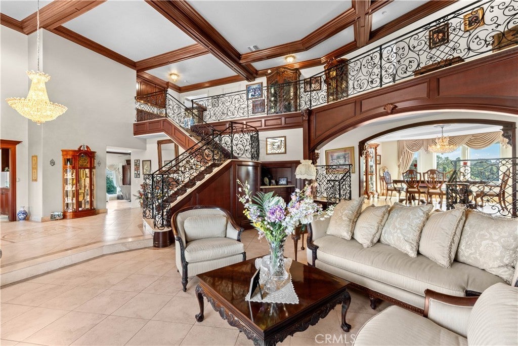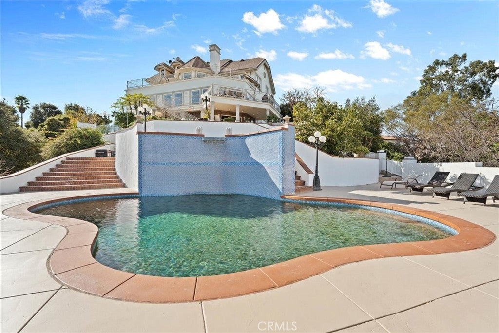 Offered at $3,300,000, this custom Mediterranean-style hillside estate is located in the Via Verde area of San Dimas. Rebuilt with significant structural improvements, including a deep-caisson foundation system, the residence offers exceptional scale and craftsmanship. Interior features include custom on-site cherry wood millwork, imported Italian granite and travertine stone finishes, and a grand entry with dual staircase and soaring ceilings. The chef’s kitchen includes dual islands and professional-grade appliances, and the primary suite provides spa-style amenities and scenic views. Set on approximately 2.9 acres, the property captures panoramic valley and mountain views, a resort-style pool and spa, and multiple terraces designed for indoor-outdoor entertaining. The grounds include a private orchard with persimmon, papaya, tangerine, fig, olive, boysenberry, macadamia nut, and passion fruit vines, plus ample space for future recreational, vineyard, or event use. Convenient access to golf, shopping, and freeways while maintaining a quiet hillside setting.