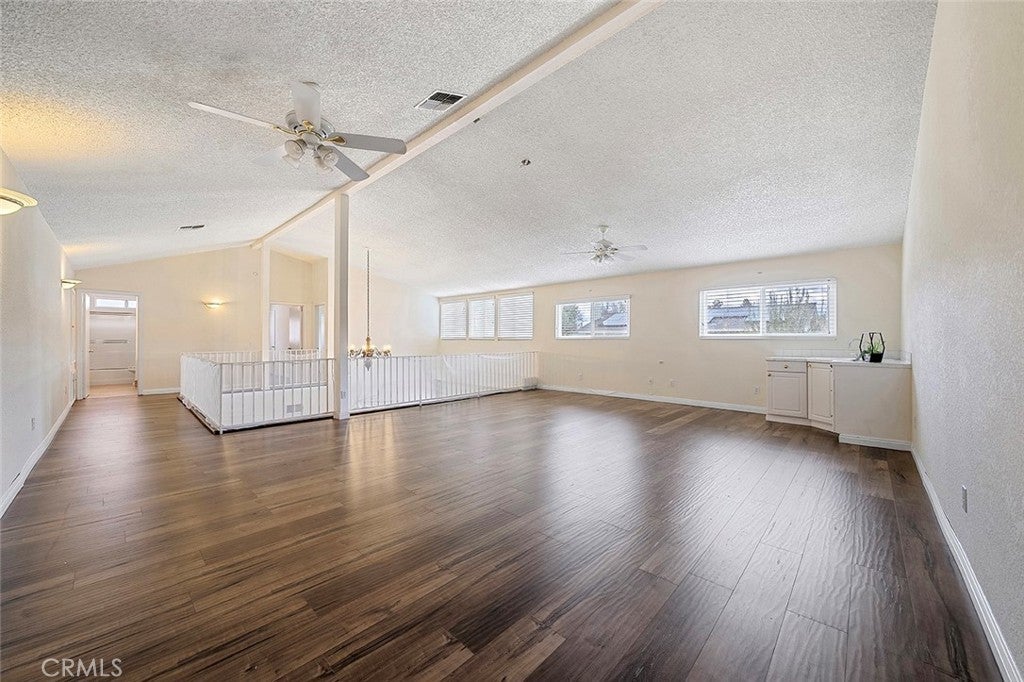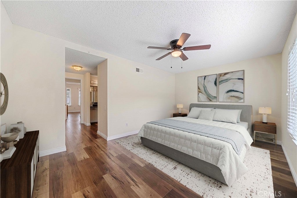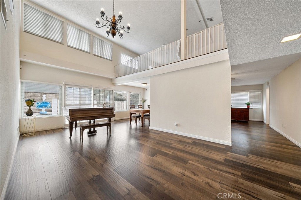 Fantastic opportunity in the highly desirable Valencia community! This well-designed home features an exceptional floor plan with soaring ceiling and abundant natural light throughout. The main level offers a spacious primary suite, along with two additional bedrooms downstairs — ideal for flexible living arrangements. Upstairs, you’ll find a generously sized loft perfect for a media room, home office, or play space, plus two additional bedrooms providing ample room for family or guests. A dedicated laundry room with its own enclosed space and built-in storage cabinets adds everyday convenience. Step outside to a private backyard featuring a swimming pool and yard space ready to be refreshed into your personal outdoor retreat. The home offers tremendous potential and is priced to reflect the opportunity for cosmetic updates. With a little TLC, this property can truly shine. Located in a highly rated school district and close to shopping, dining, parks, and easy freeway access, this is an incredible value for buyers looking to customize and build equity in a prime Valencia location. Don’t miss this rare opportunity! (There are three photos has been visual staged.)