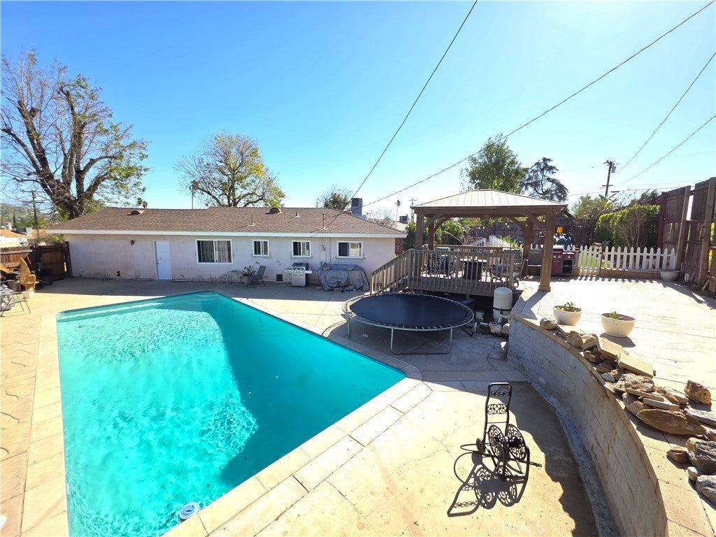 Welcome to your dream oasis at 6424 Tournament Dr., nestled in the heart of Jurupa Valley. This stunning four-bedroom, two-bathroom residence offers 1,833 square feet of updated living space designed for comfort and entertaining. The moment you step inside, you're greeted by a bright and airy open-concept layout complete with brand new windows, beautiful new tile flooring that flows seamlessly from the kitchen through the hallway and into both bathrooms with a newer AC system that will keep your home fresh and cool during the hot California summers. Your outdoor paradise awaits- immerse yourself in the recently resurfaced pool area complete with a stunning deck and gazebo, perfect for summer barbecues, relaxing with your early morning coffee, or tranquil evenings under the stars. Meticulously designed landscaping features maintenance-free artificial grass complemented by a smart sprinkler and drip irrigation system, ensuring minimal effort. A two-car garage provides ample parking and storage. Conveniently located, you’ll have access to local amenities such as parks, shopping centers, and excellent schools. This home combines comfort with space making it the perfect forever home.