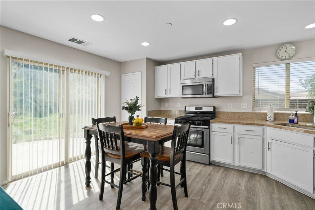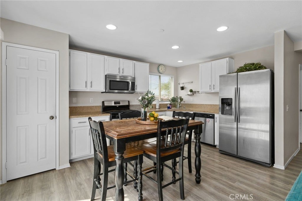 Charming single-story 3-bedroom, 2-bath home offering a thoughtfully designed living space on an expansive 12,196 sq. ft. lot with an attached two car garage. The open-concept floor plan features a bright living room filled with natural light, recessed lighting, and stylish wood laminate flooring. The living and dining areas flow seamlessly into the kitchen, creating a welcoming setting for gatherings of any size. The private primary suite with two closets, including a spacious walk-in and an en-suite bath with dual sinks and tub/shower. Secondary bedrooms are generously sized and well-suited for family, guests, or a home office. An indoor laundry room and additional storage add to the home’s everyday functionality. Outdoors, the expansive backyard provides a peaceful setting with low-maintenance landscaping and a scenic hillside backdrop, a blank canvas for entertaining, gardening, relaxing under the open sky, or designing your ideal outdoor retreat. Ideally situated at the end of a cul-de-sac within the quiet, well-maintained gated community of Tournament Hills II, residents enjoy walking trails, a scenic community lake surrounded by beautiful nature, and nearby parks. Conveniently located just minutes from shopping, schools, and freeway access, and close to popular destinations including Morongo Golf Club at Tukwet Canyon, Oak Valley Golf Club, Morongo Casino Resort & Spa, and Cabazon Outlets. With low HOA dues and taxes, this home presents exceptional value and an opportunity to own in one of Beaumont’s most sought-after neighborhoods.