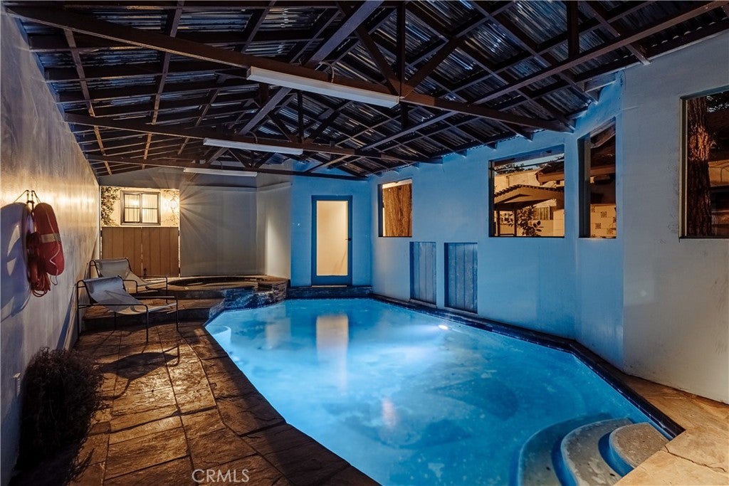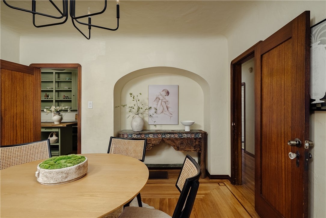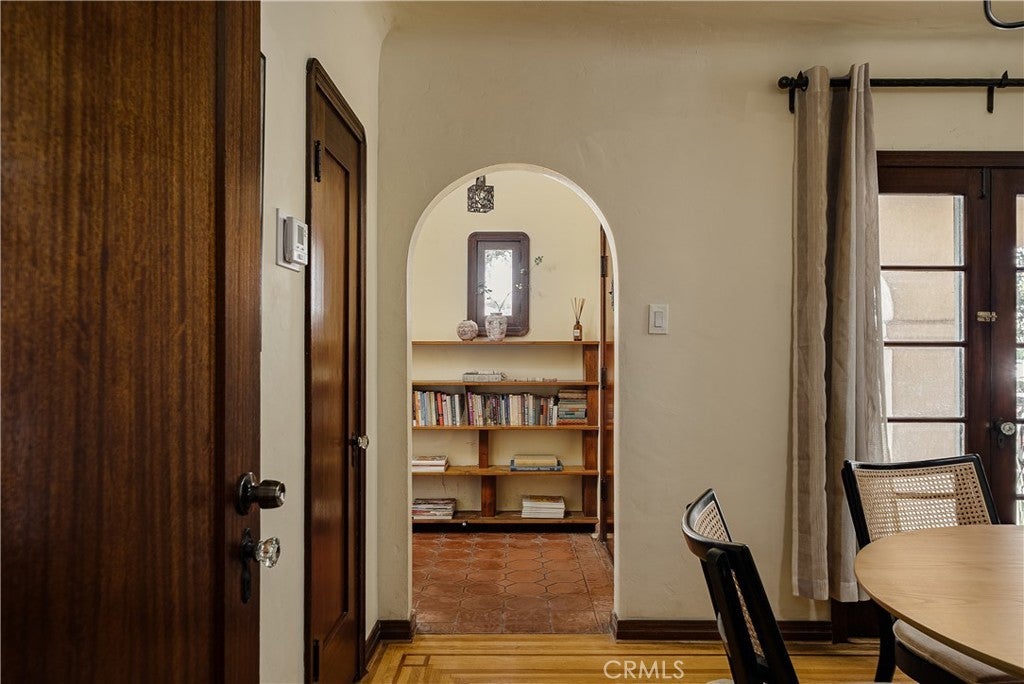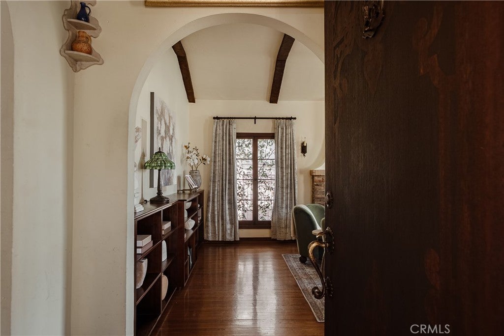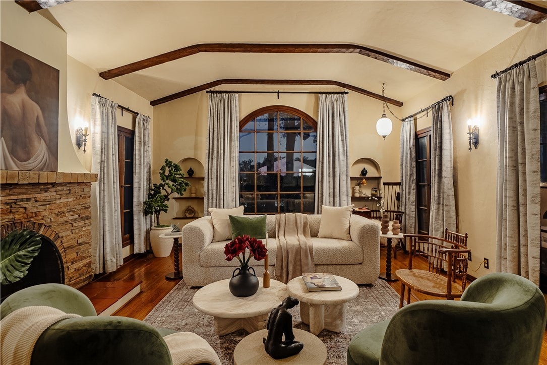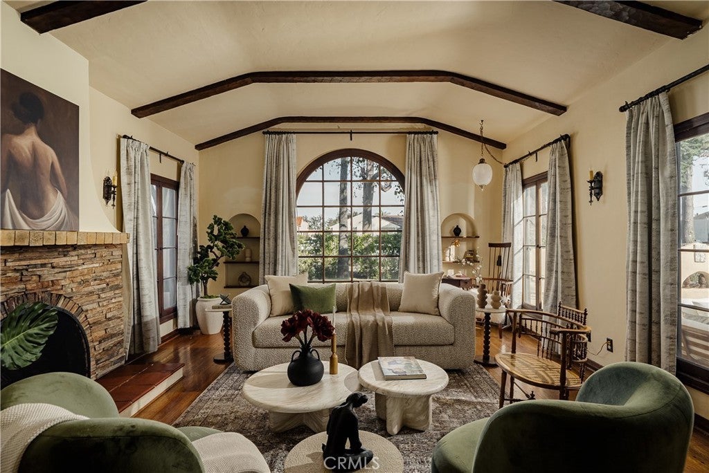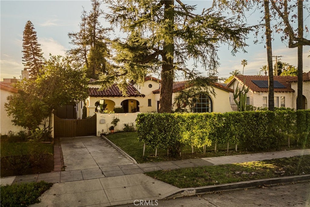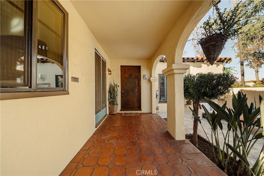 Presenting a rare 1930 Spanish Colonial estate with pool, paid off solar, and detached studio. An architectural showpiece that seamlessly blends historic elegance with refined modern upgrades. Homes of this caliber are seldom available, offering authentic period craftsmanship, timeless character, and exceptional lifestyle amenities in one extraordinary residence. From the moment you arrive, the home’s classic Spanish façade, arched veranda, and original casement windows set a tone of understated sophistication. Inside, a dramatic grand living room showcases soaring barrel ceilings with original wood planking, arched architectural niches, vintage sconces, a statement stacked-stone fireplace, and expansive windows that flood the space with natural light—hallmarks of true Spanish Colonial design. The formal dining room is a statement in historic luxury, featuring custom inlaid hardwood floors, an arched built-in hutch alcove, original oak doors, and French doors opening to the outdoor entertaining area. The kitchen is both functional and artistic, highlighted by a signature arched Spanish cooking alcove with artisan tilework, upgraded cabinetry, and sleek quartz countertops that blend modern convenience with vintage charm. A sunlit breakfast nook with built-in curio cabinetry adds warmth and character. A refined hallway lined with original millwork, sconces, and archways leads to three spacious bedroom suites, each with its own private bathroom, ideal for comfort, privacy, and multigenerational living. Additional interior features include central HVAC, indoor laundry room, and a service basement. Designed for elevated outdoor living, the backyard features a full-length wood deck, covered heated pool and spa, custom brick fireplace, and outdoor shower, creating a private retreat perfect for entertaining or relaxing year-round. At the rear of the property sits a detached 220 sqft structure (not included in main square footage) with fireplace, offering exceptional versatility as a studio, office, gym, guest space, creative suite, or potential ADU conversion. The gated property also provides an extended private driveway leading to a detached two-car garage with ample additional parking. Located near Alhambra’s vibrant Main Street district and just minutes from Pasadena’s premier dining, shopping, cultural attractions, parks, Old Town Pasadena and the iconic Rose Bowl, this home combines historic prestige w/ modern lifestyle convenience.