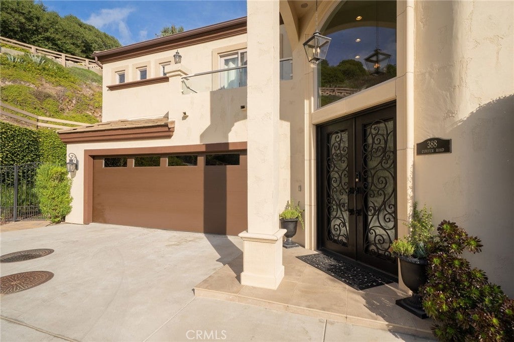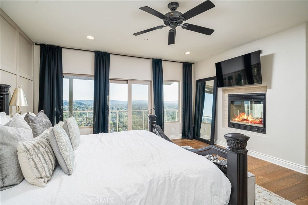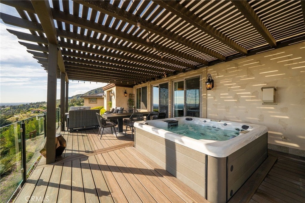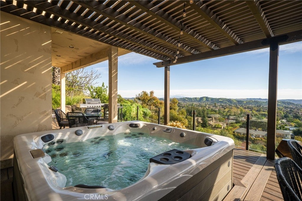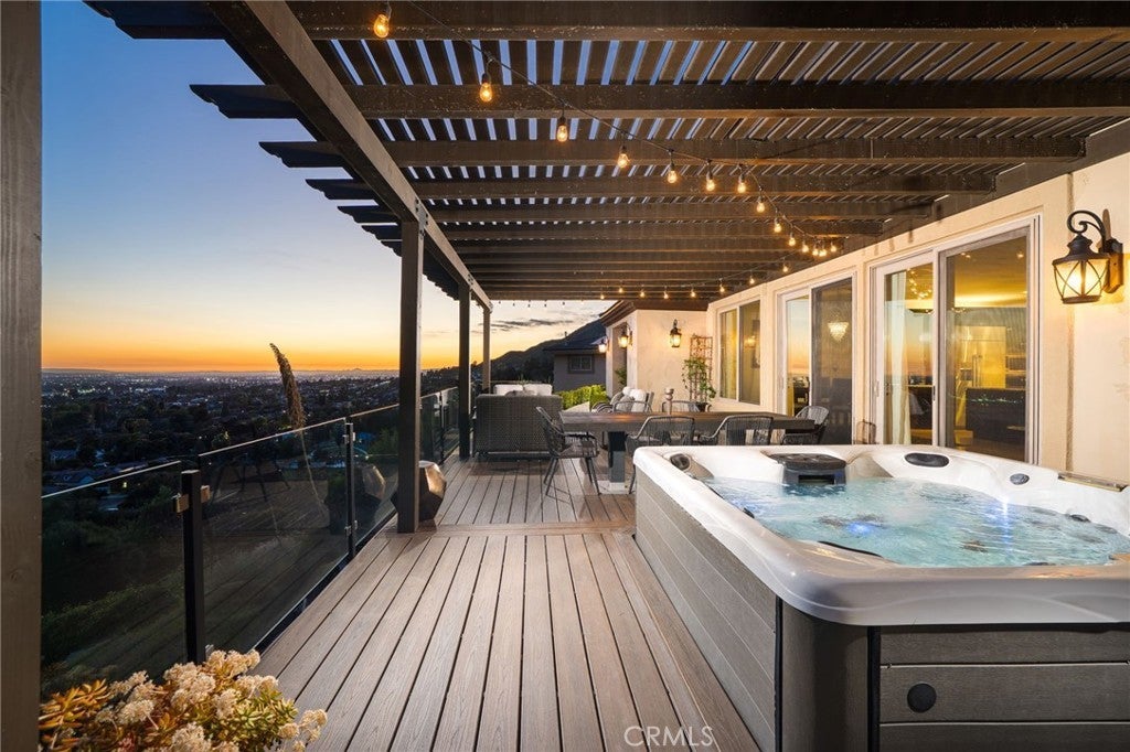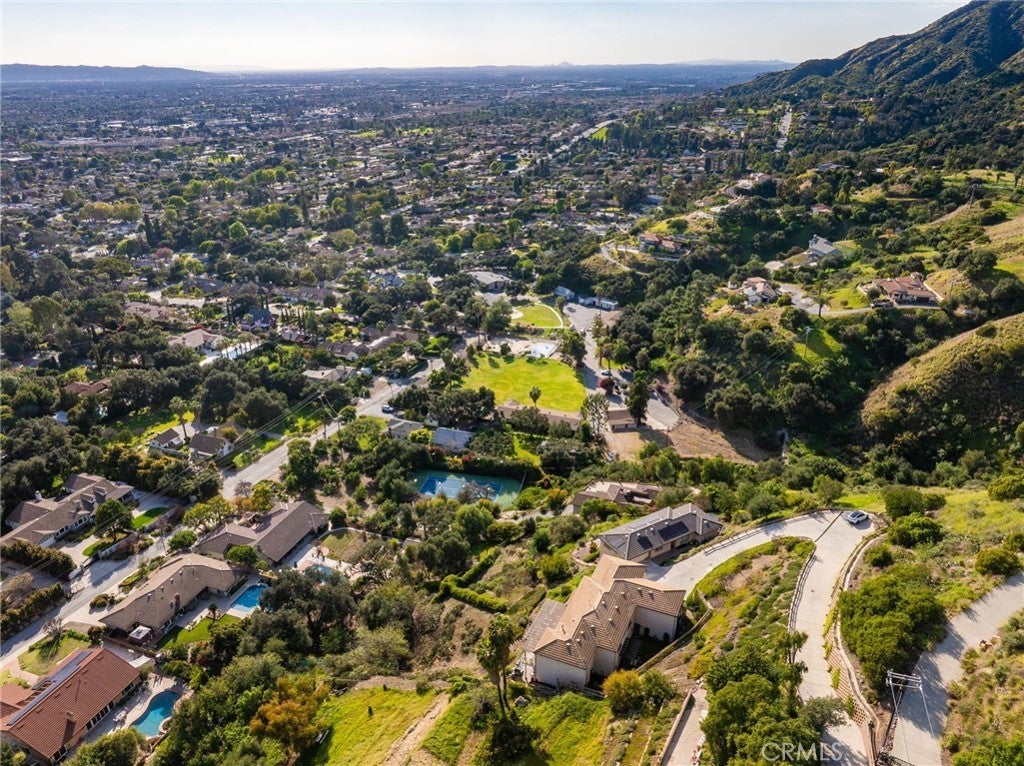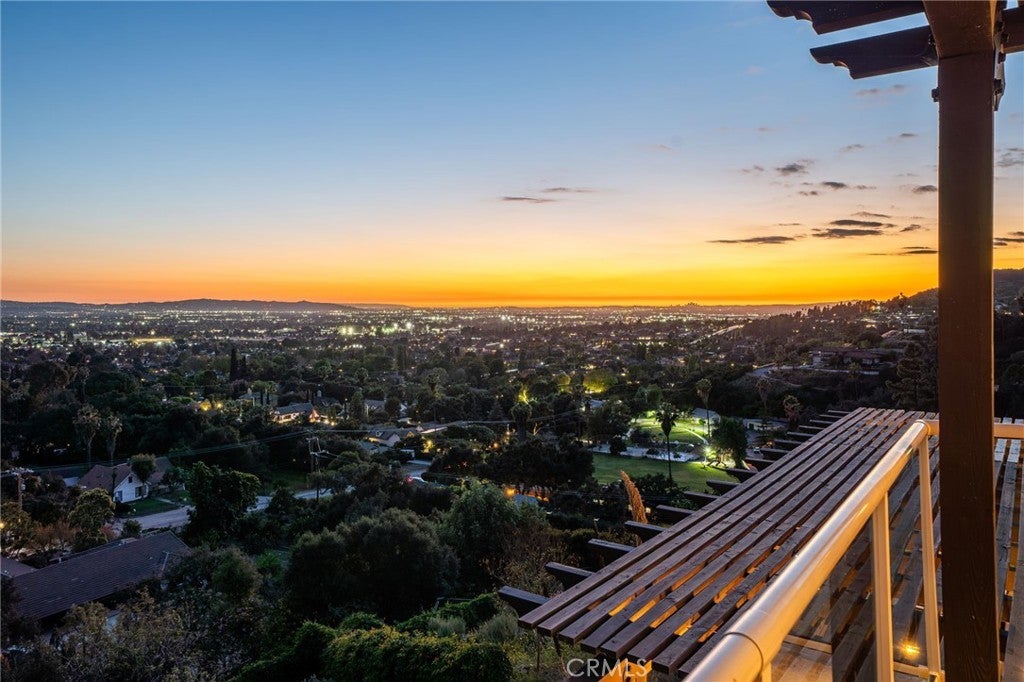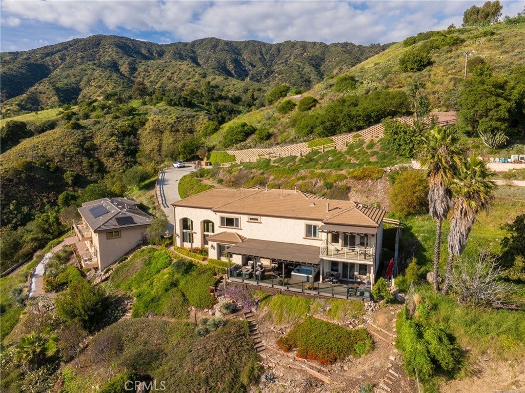 Luxury Hillside Estate w/Panoramic City Lights Views! Enjoy California indoor-outdoor living at its finest in this stunning hillside estate offering breathtaking city lights views, spectacular sunsets, and the ultimate in luxury, comfort, and privacy. Built in 2007 and nestled in the desirable Glendora foothills, this exceptional property features 5 beds, 5 baths, and 4,475 SF of living space on a spacious 23,753 SF lot. A long, sweeping driveway welcomes you to this impressive home. The formal living room features soaring 19-ft ceilings, expansive windows framing the incredible city lights views, and a striking & wood staircase. The formal dining room also enjoys beautiful views, creating an elegant setting for entertaining. The heart of the home is the beautiful great room, which flows seamlessly to a covered view deck designed for indoor-outdoor living. The deck features a large jacuzzi and spacious lounging and dining areas perfect for entertaining while enjoying the incredible views stretching to downtown LA. The adjacent family room offers a cozy fireplace and opens to the gourmet kitchen,complete w/2 islands and newer Dacor appliances including a gas range, double ovens, dishwasher, built-in refrigerator, walk-in pantry, and a kitchen dining area. The main level also features a private ensuite bedroom w/access to the view deck and a full bathroom, a convenient powder room for guests, and a spacious laundry room w/sink and cabinetry. Upstairs, a secondary family room w/wet bar and private balcony creates the perfect space for relaxing or entertaining. The luxurious primary suite features a fireplace, private balcony w/ sweeping city lights views, and 2 walk-in closets. The spa-inspired primary bathroom includes a soaking tub positioned to capture the views, an oversized shower w/multiple shower heads, and a dual sink vanity. An addt'l upstairs bedroom suite includes a walk-in closet and full bathroom, while two more bedrooms w/mirrored closet doors share a Jack/Jill bathroom. The beautifully landscaped backyard offers multiple outdoor spaces, including a covered patio w/fire pit, lighting, spacious turf lawn, and putting green. Elegant paver walkways, soothing fountain, and lush landscaping complete the setting for this gorgeous home. 2 car att. garage w/storage and direct access into the house. Located within the award-winning Glendora School Dist. and just minutes from downtown Glendora Village w/its quaint shops, dining, and community atmosphere.