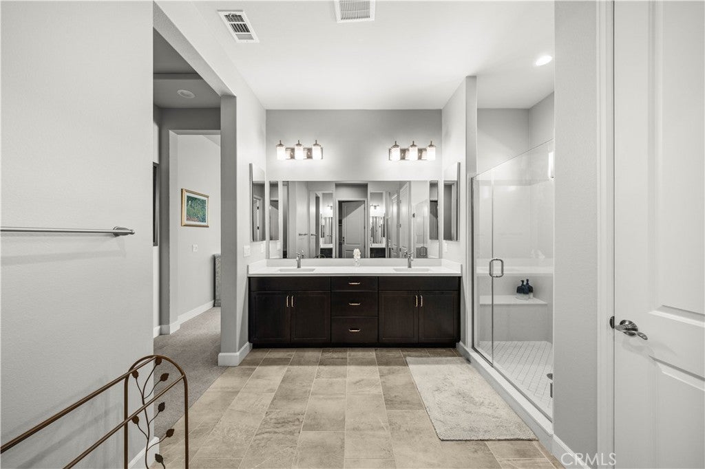 WELCOME TO LUXURY 55+ GATED STUNNING SINGLE-FAMILY HOUSE IN BUENA VIDA AT LA FLORESTA! This residence is thoughtfully designed for senior living, offering expansive spaces and exceptional comfort. The main level features two ensuite bedrooms, providing convenient single-level living, while the upper level includes a spacious loft and an additional large suite—ideal for multi-generational living or guest accommodations. The home showcases extensive upgrades, including premium floor tiles, a luxury chef’s kitchen, a whole-house water softener system, and an EV charging station. Located in Brea’s prestigious Buena Vida gated community, residents enjoy superior HOA management, a resort-style swimming pool, clubhouse, and scenic walking trails—perfect for relaxation, daily exercise, and an elevated lifestyle. Access to medical care is excellent, with the Family Medical Center just 5 minutes away and Kaiser Permanente only 7 minutes away, ensuring peace of mind for healthcare needs. Backing to the lush golf course and Carbon Canyon Park, the home is surrounded by greenery, fresh air, and a serene environment away from city noise. Everyday convenience is unmatched, with Whole Foods Market right at the community entrance and a wide range of premium shopping and dining options nearby. Walmart and Stater Bros. are also just minutes away, offering everything needed for effortless daily living.