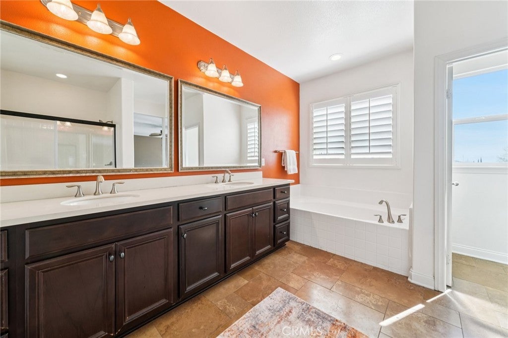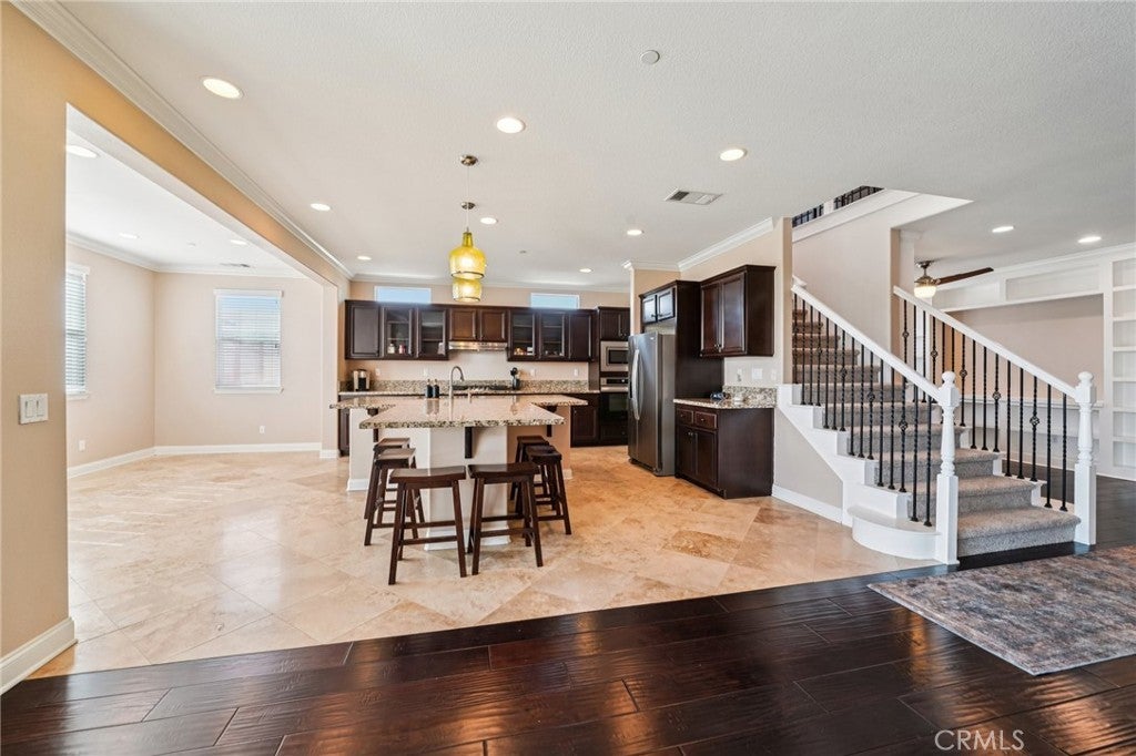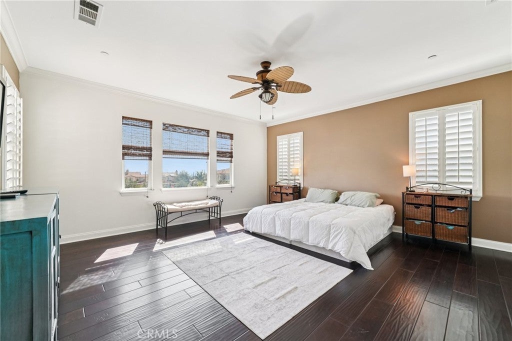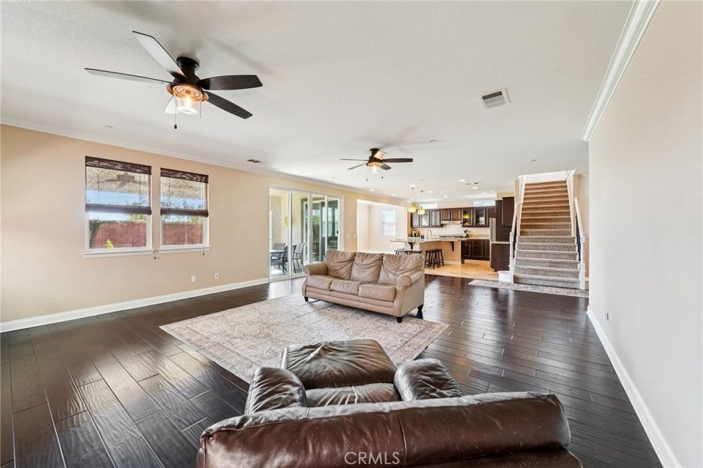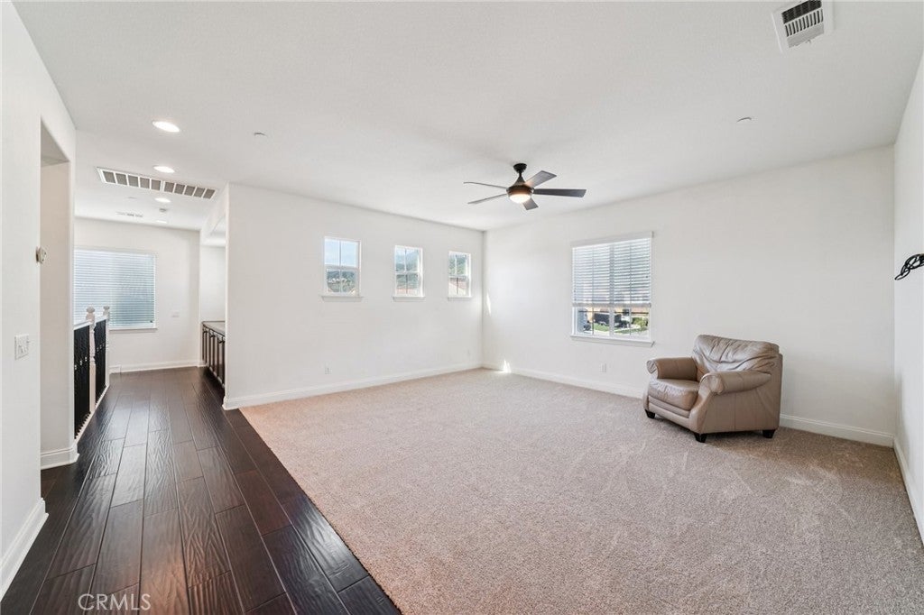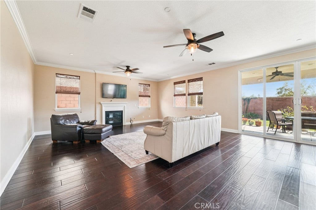Gorgeous 4-bedroom, 3.5-bath home with a spacious bonus loft - ready to be yours! Built in 2012, this beautifully maintained property offers fantastic curb appeal with well-manicured landscaping, sits on a desirable corner lot, and best of all - no HOA. Step inside to an open and airy floor plan filled with natural light, elegant crown molding, and recessed lighting throughout. The formal entry leads to a versatile office with built-in shelving, which can easily serve as a formal dining room. The kitchen is a chef’s dream, featuring a large center island with granite countertops, bar seating, abundant wood cabinetry, stainless steel appliances, including the refrigerator, and a generous walk-in pantry. It opens to the breakfast nook and a large family room complete with a cozy fireplace and sliding glass door to the backyard. The main level also includes a bedroom, a full bathroom, and a convenient half bath for guests. Upstairs, you’ll find a spacious bonus loft ideal for a game room, media room, or relaxing movie nights. The impressive primary suite offers a large walk-in closet and a private, spa-like ensuite with dual sink vanity, a soaking tub, and a separate shower. The secondary bedrooms share a Jack-and-Jill bathroom with dual sink vanity, and a the laundry room, which includes the washer and dryer, completes the second floor of the home. Enjoy the private backyard featuring a covered patio, with included patio furniture, and lush green grass - perfect for outdoor gatherings or quiet evenings at home! This home is conveniently located near Coyote Canyon Park, as well as schools, shopping, dining, hiking and biking trails, and offers easy access to the 15 Freeway, this home truly has it all! Schedule your private tour today!