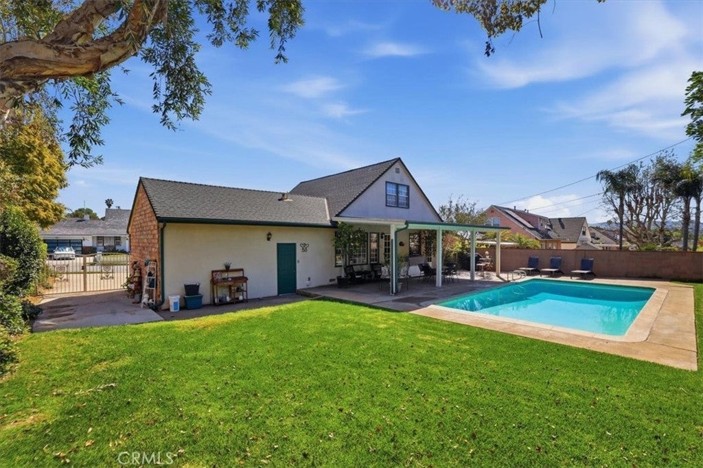 Exceptional "Pride of Ownership" home nestled in the Hidden Village tract of Charter Oak.. Charming curb appeal with distinctive siding, window shutters, rose planters, large concrete driveway, nice looking wrought iron gates to RV access, and a quaint front porch.. A large covered patio, good sized pool, terraced planter, vine covered wall, well manicured lawn and mature trees highlight a generous sized back yard.. Enjoy a flexible floor plan with 2 bedrooms upstairs with storybook sloped ceiings and 2 bedrooms downstairs.. The interior is delightully decorated throughout and shows really really well.. The living room has lots of natural light with large dual pane windows that overlook pleasing rear grounds.. A cheerful country kitchen has refaced cabinets, shutter trimmed pony wall, and appliances.. Amenties and upgrades include instant hot water, copper plumbing, hardwood flooring, ceiling fans, newer carpeting, attic fan, panel doors, lots of attic space, wooden window blinds, forced air heating, central air conditioning, and recently cleaned ducting.. This mid century gem is located in the Charter Oak School District with California Disinguished Schools.. Parks, boating, hiking trails, colleges, and shopping centers are also conveniently nearby.. A "Gold Medal" opportunity for some lucky family..